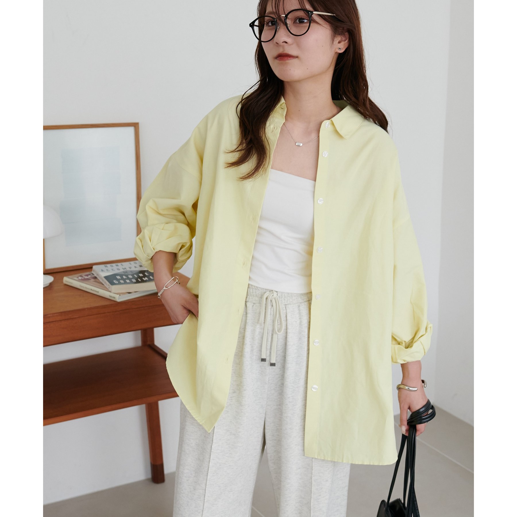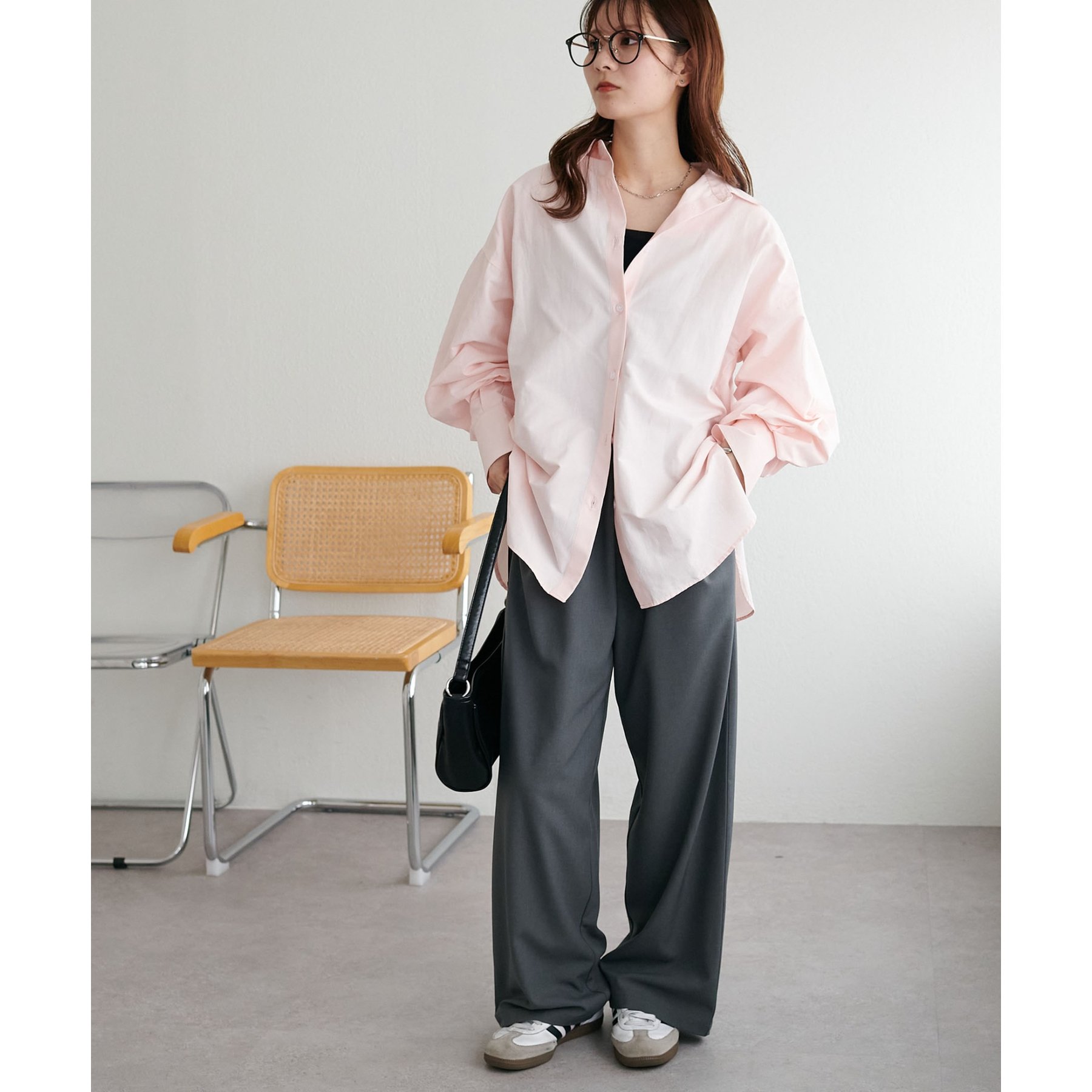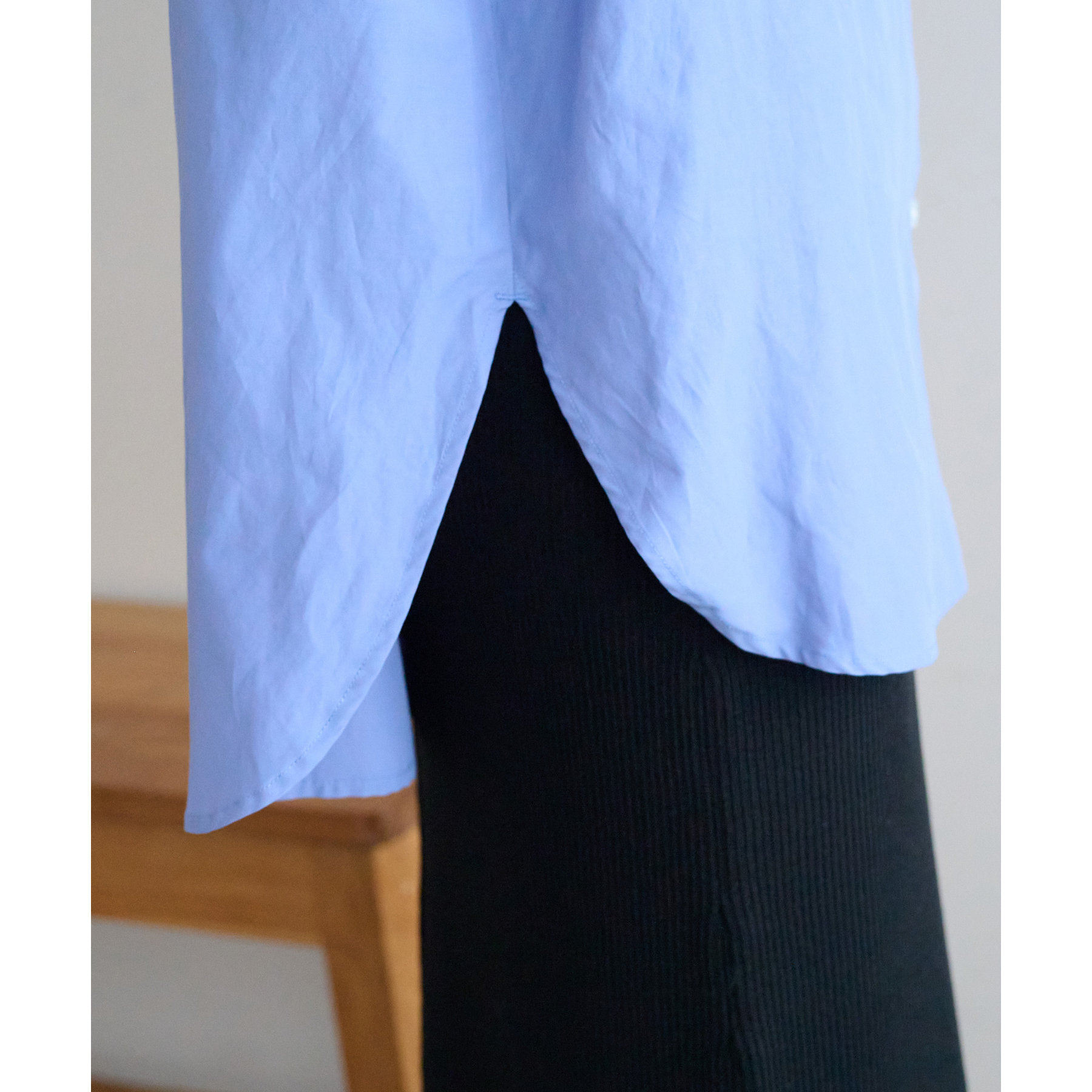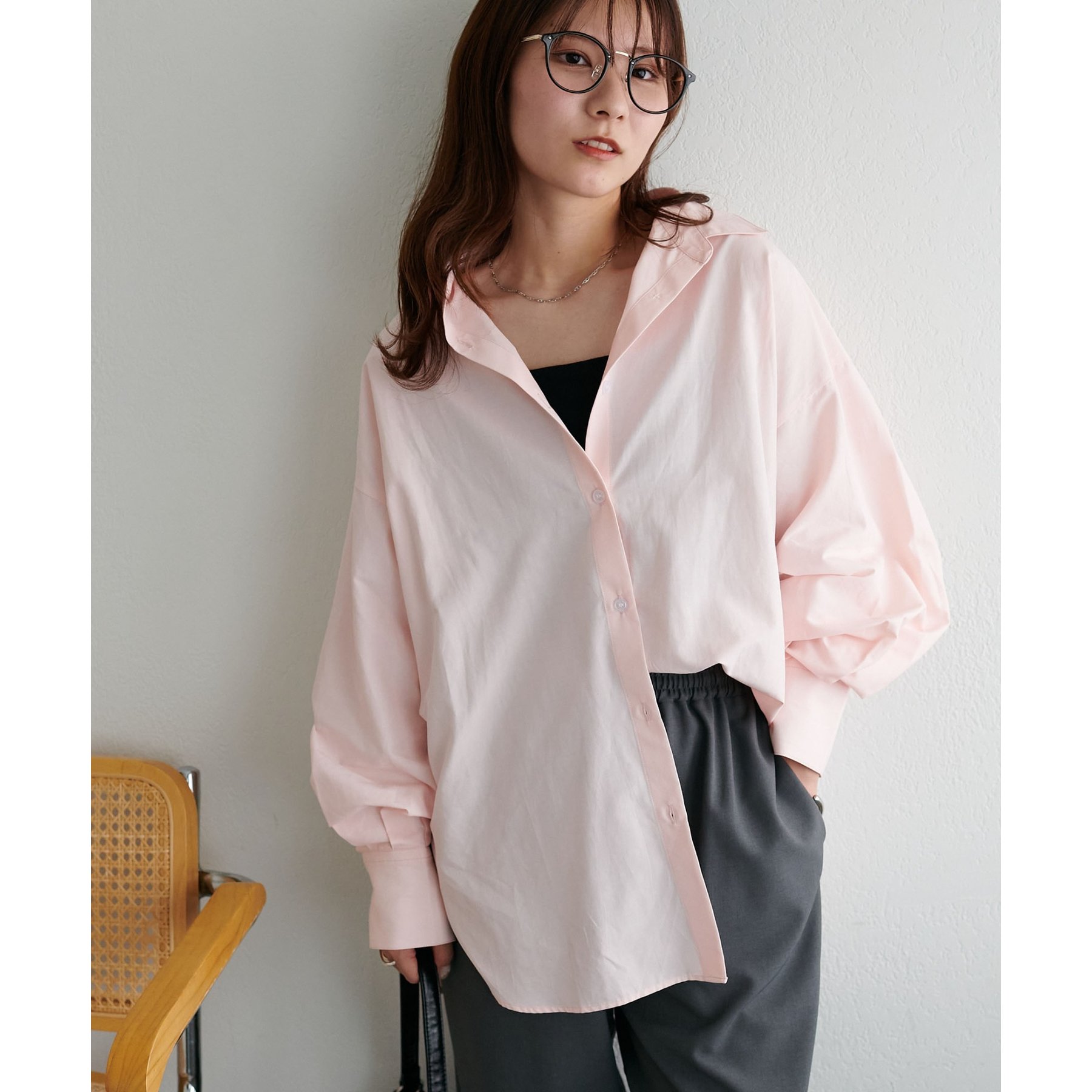 153cmスタッフ:腰回りが隠れる着丈です。低身長の方は袖口をロールアップしたり、首元のボタンを開けたりすると抜け感が出てこなれ感を楽しめます♪