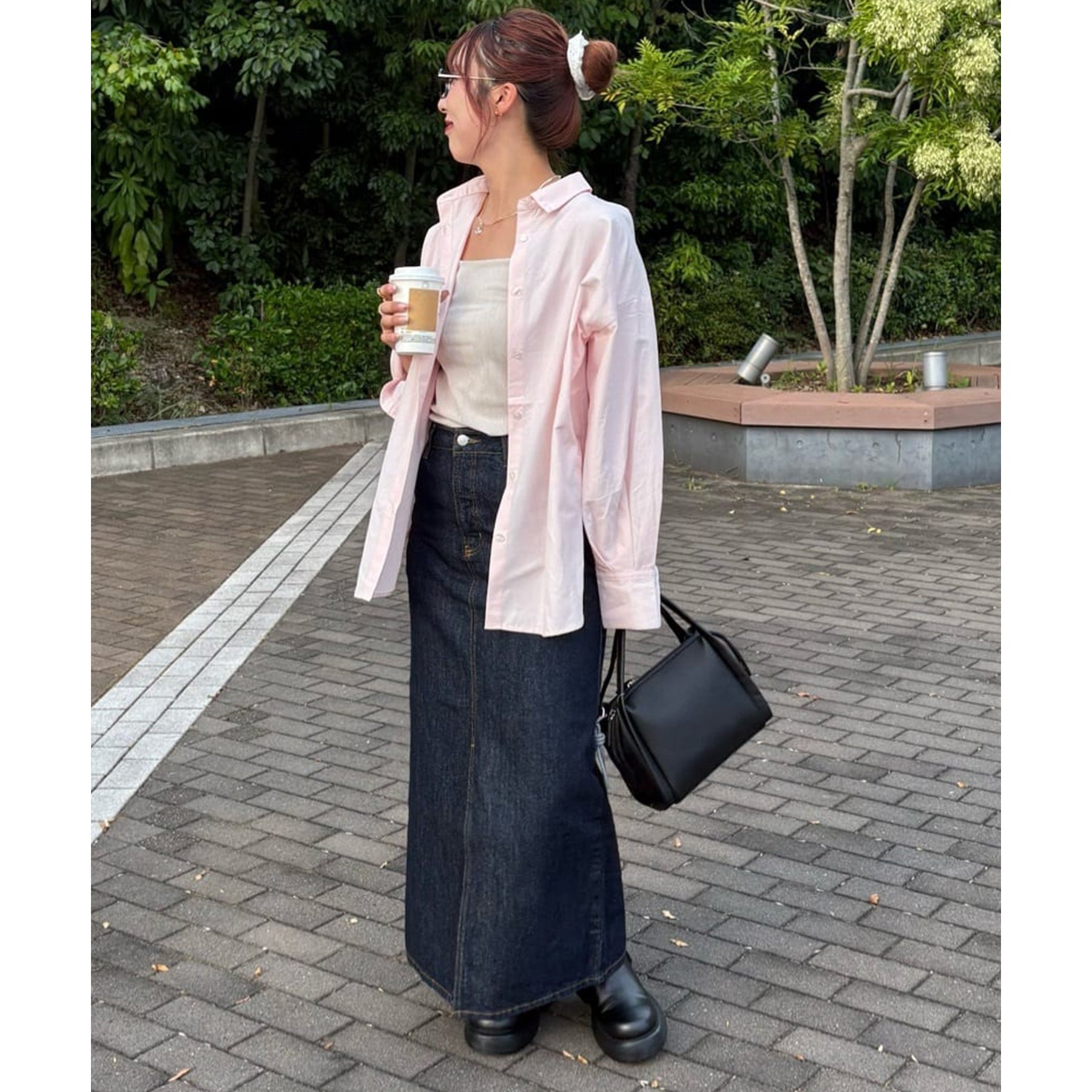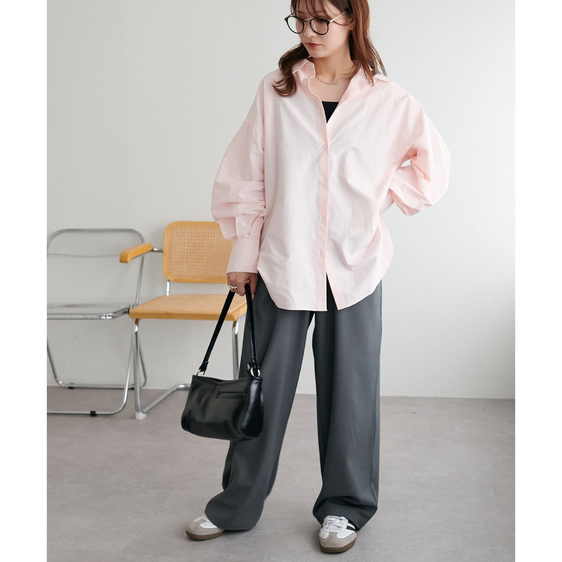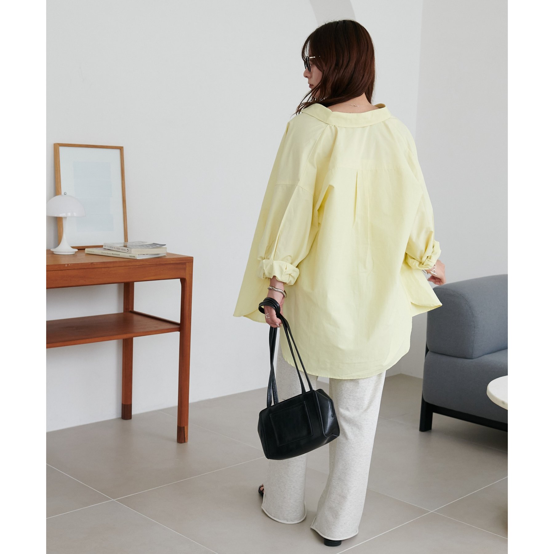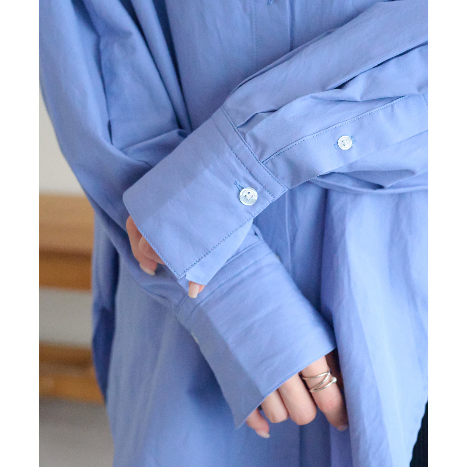 153cmスタッフ:腰回りが隠れる着丈です。低身長の方は袖口をロールアップしたり、首元のボタンを開けたりすると抜け感が出てこなれ感を楽しめます♪