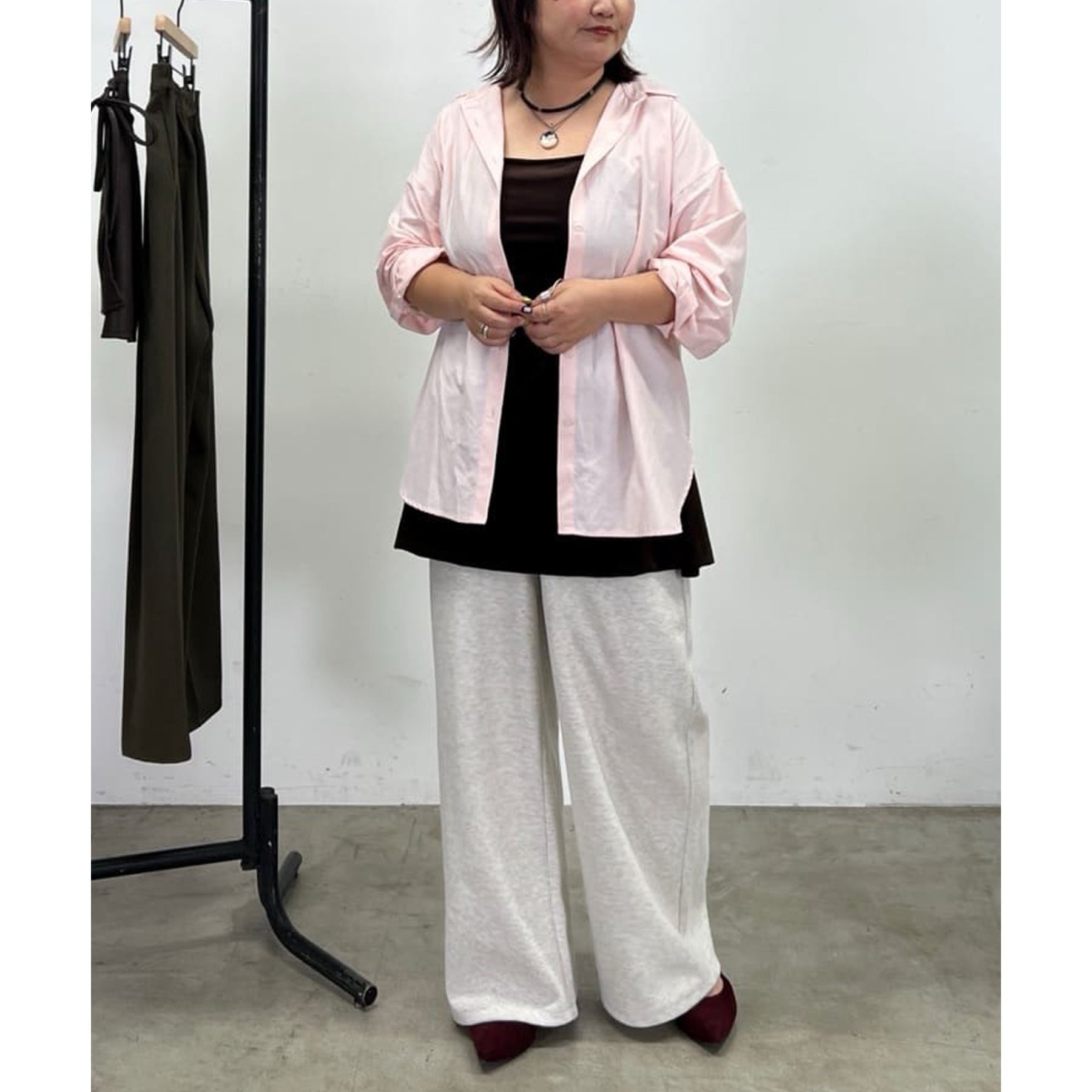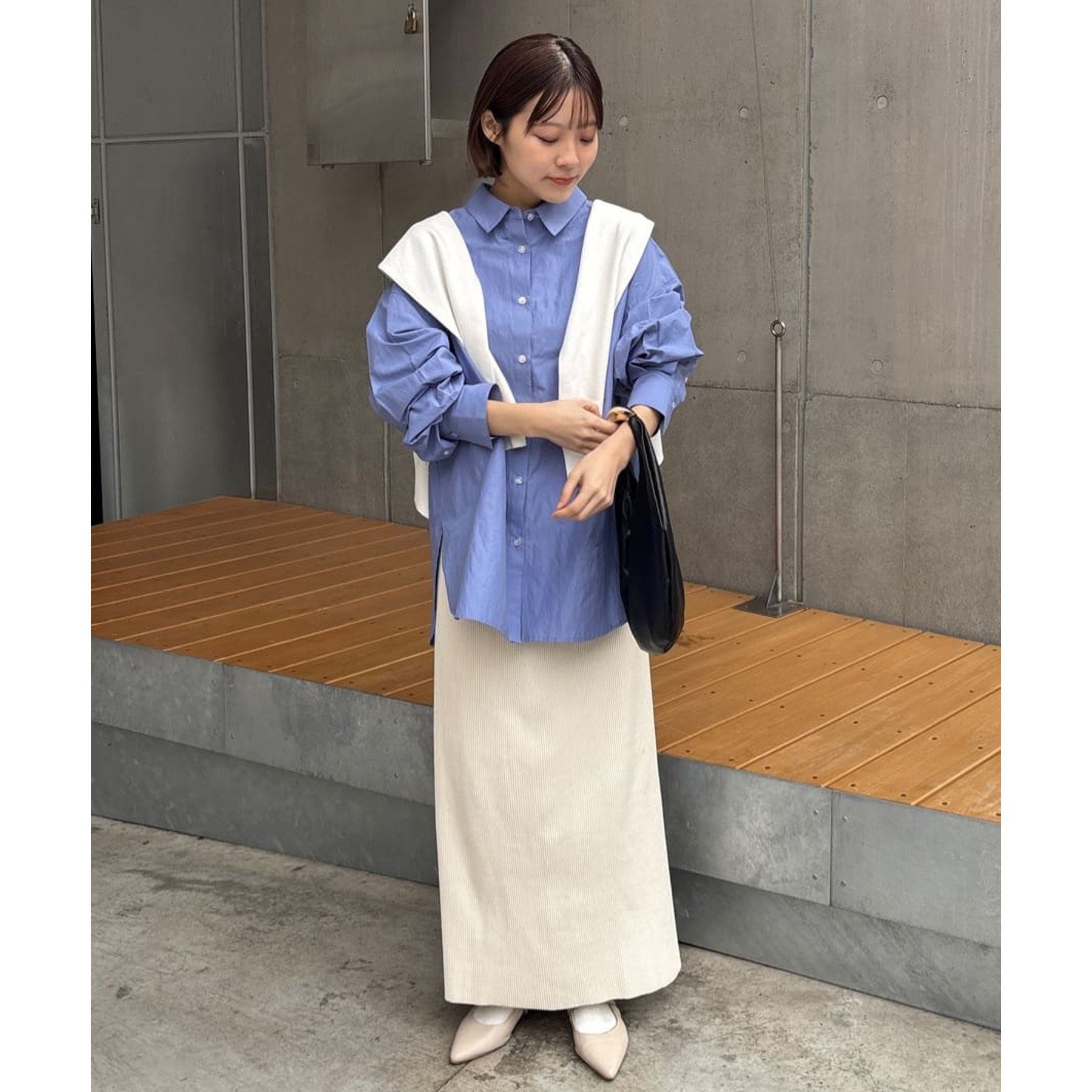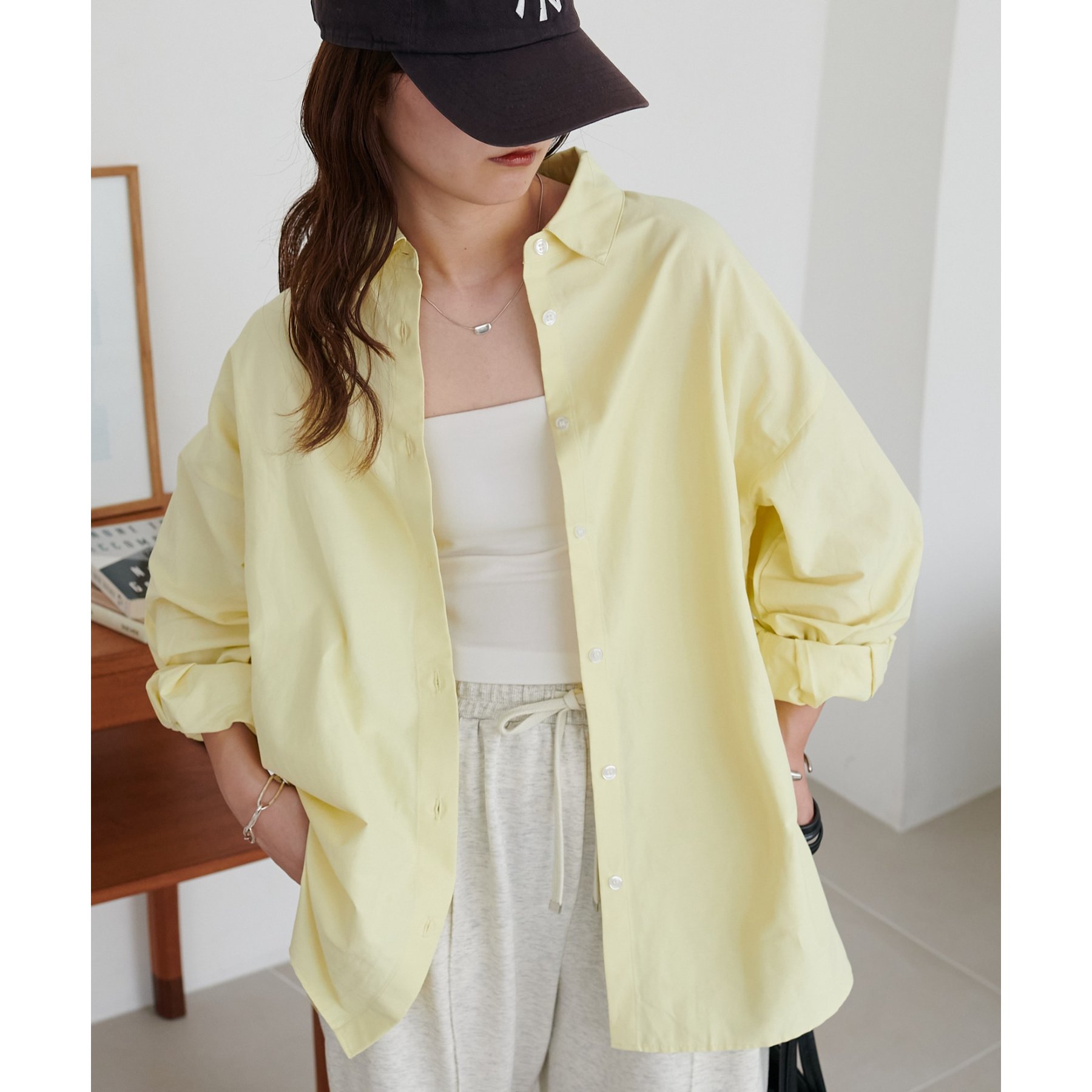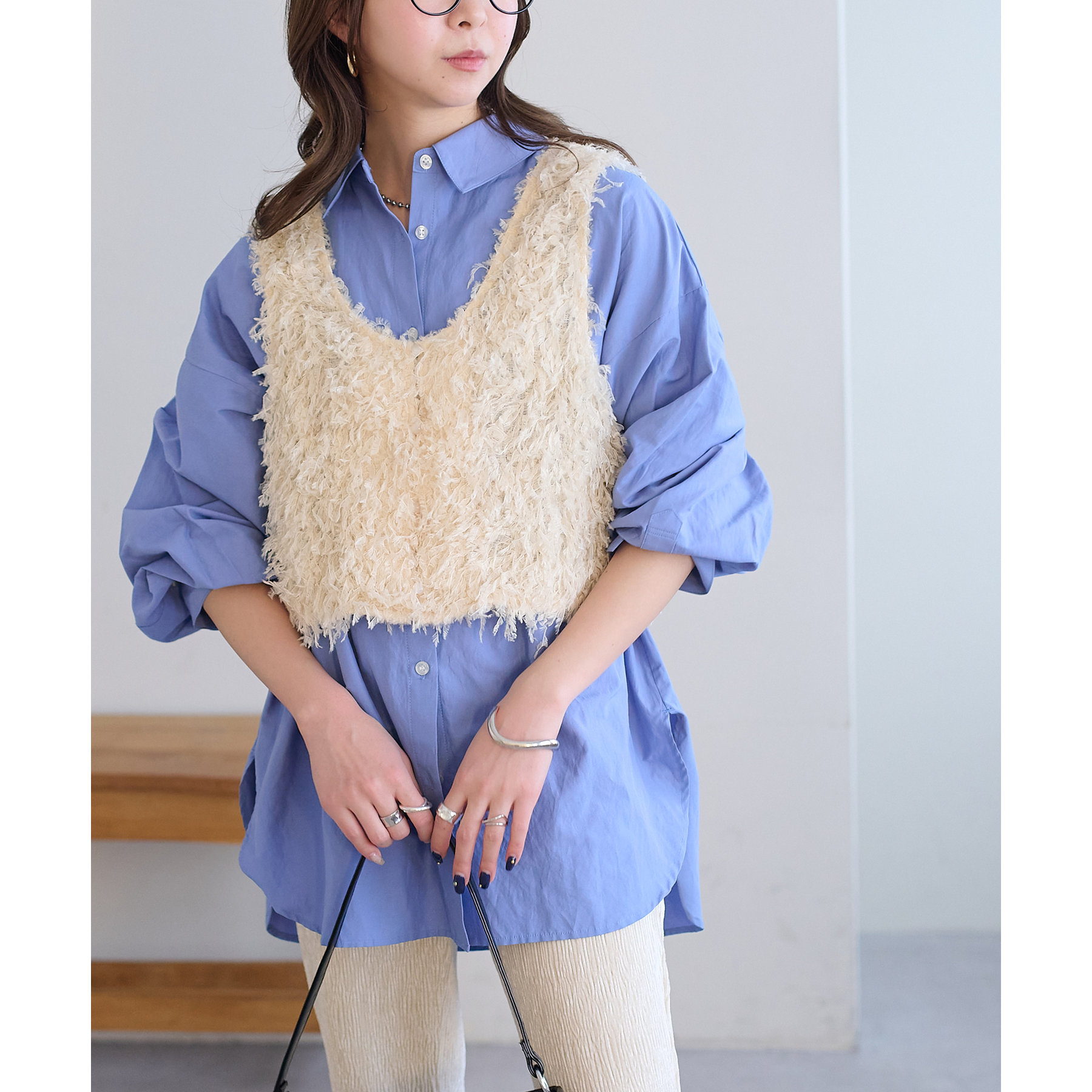 一枚で着てもコーデが生えますが、デザインはシンプルなのでベストやビスチェ、スウェットとのレイヤードも楽しみたいです!