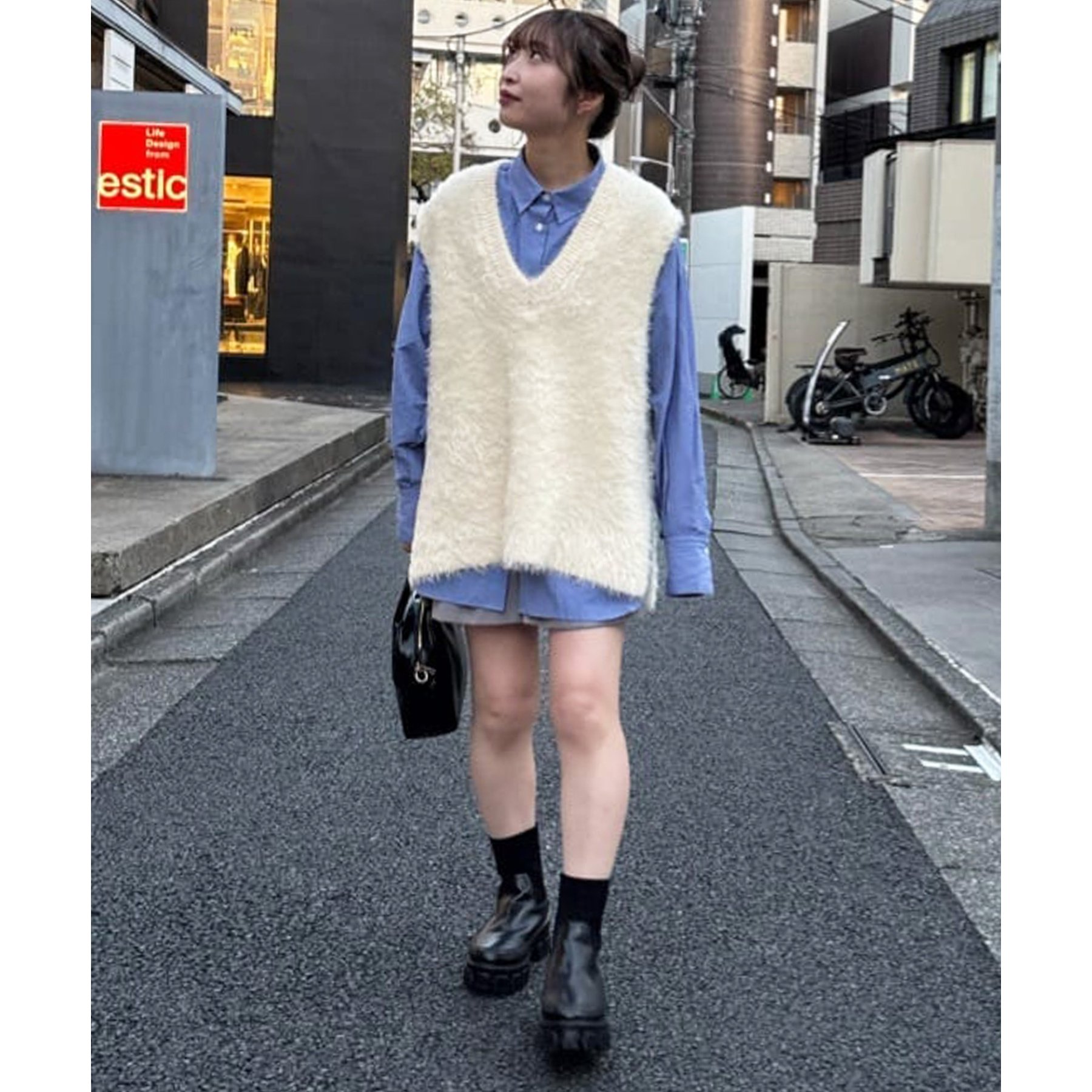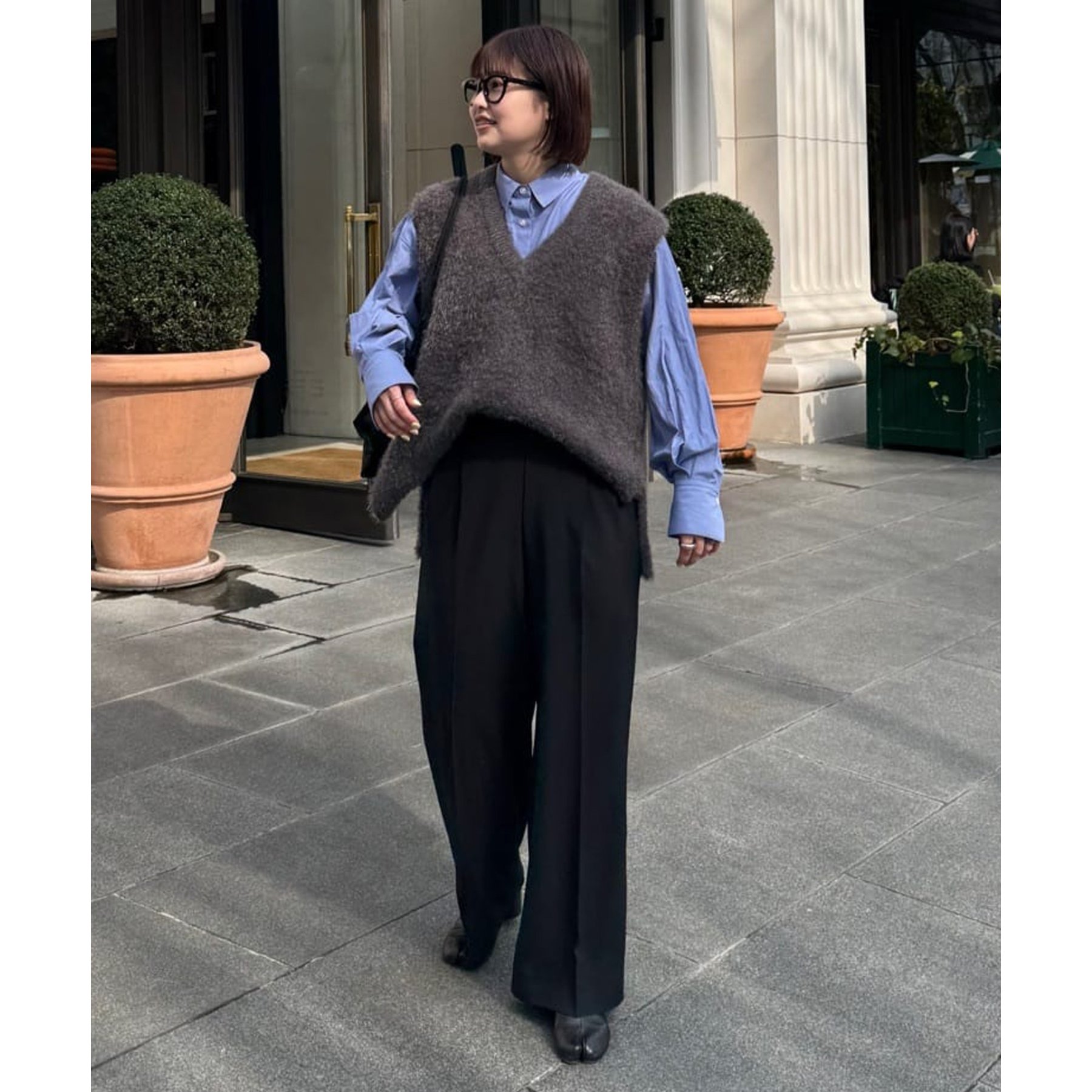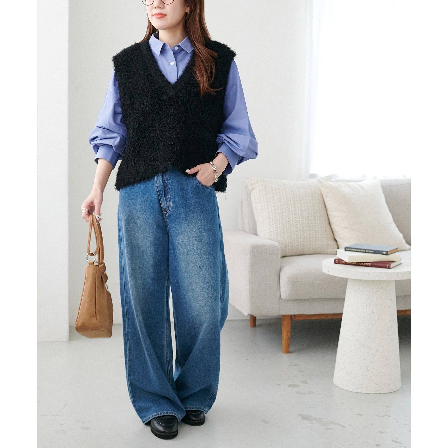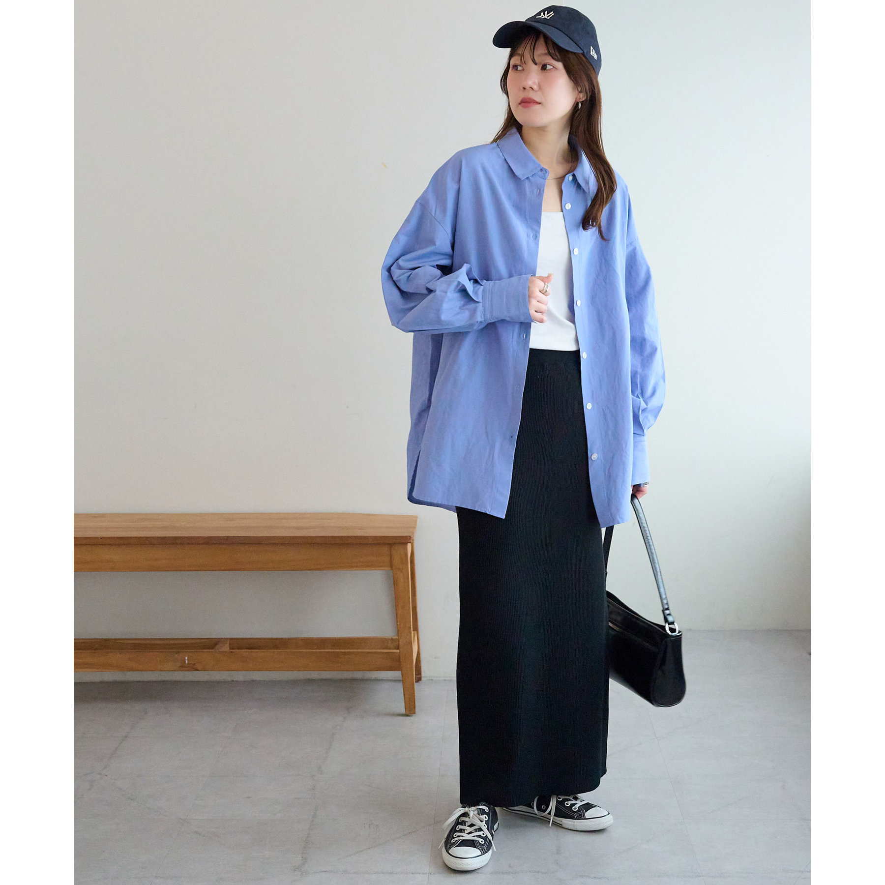 一枚で着てもコーデが生えますが、デザインはシンプルなのでベストやビスチェ、スウェットとのレイヤードも楽しみたいです!