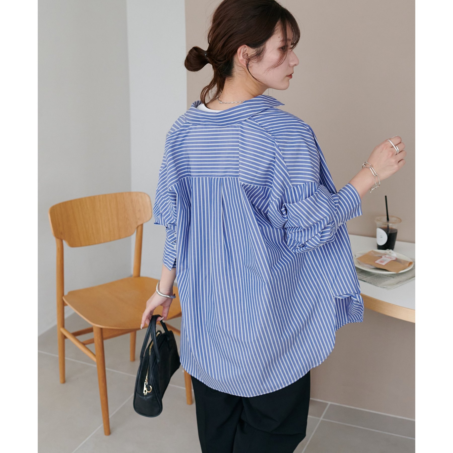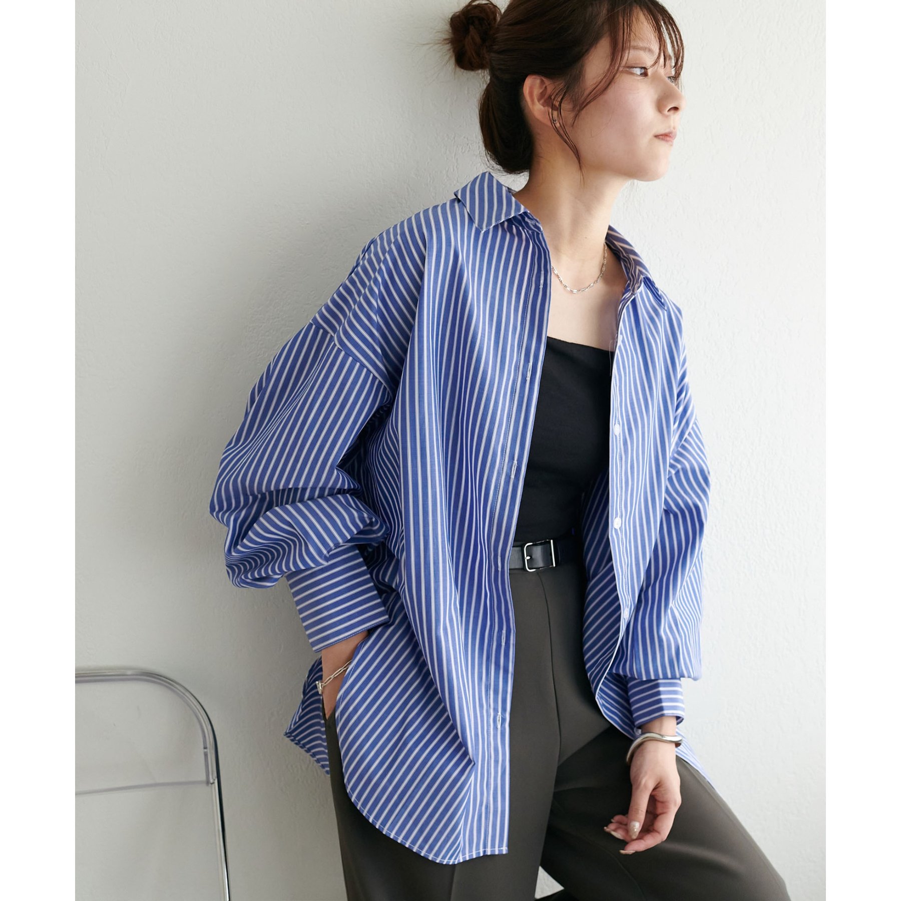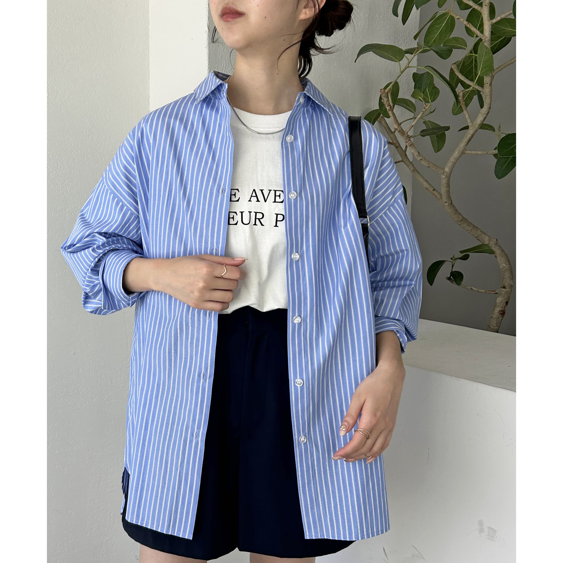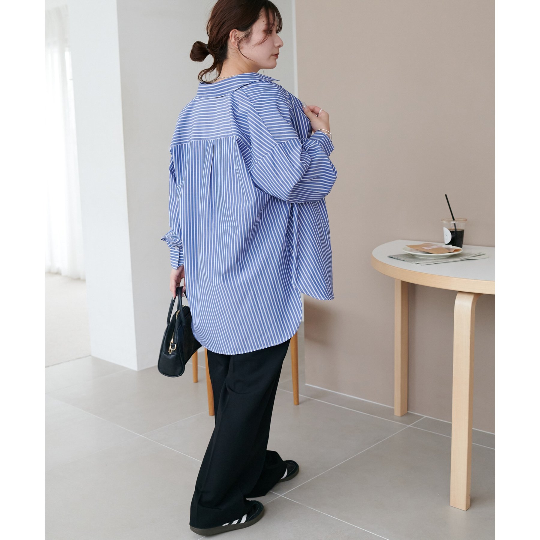 158cmスタッフ:ブルーシャツ、ストライプシャツは毎年人気なので一枚あるとトレンド問わず楽しめます◎
