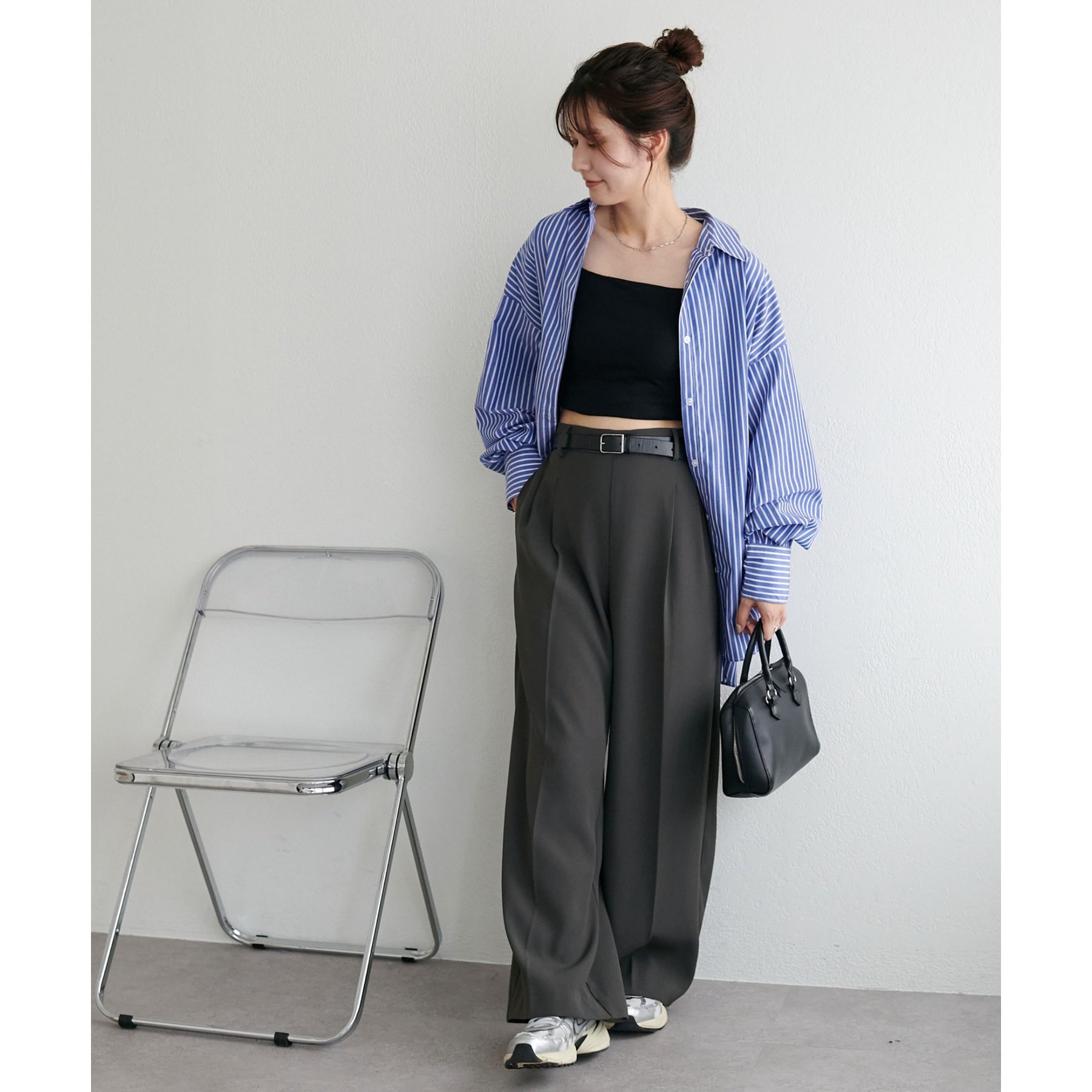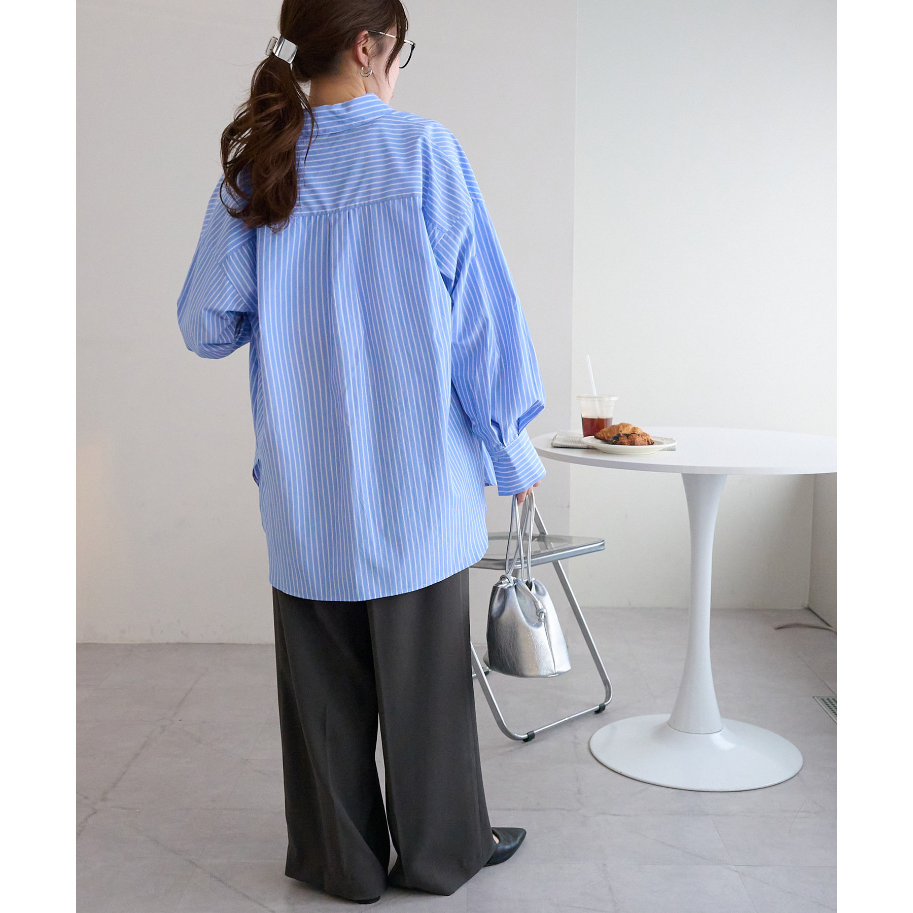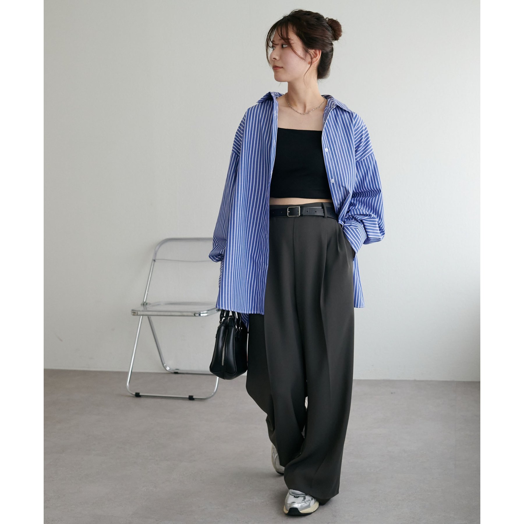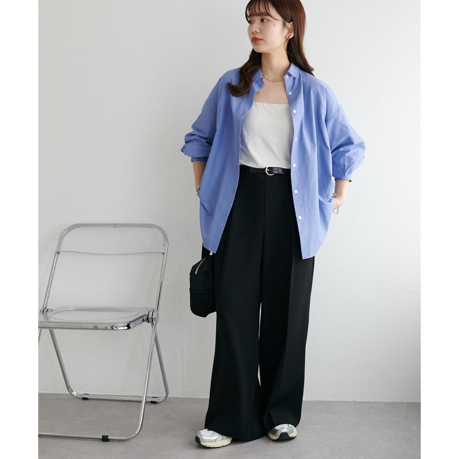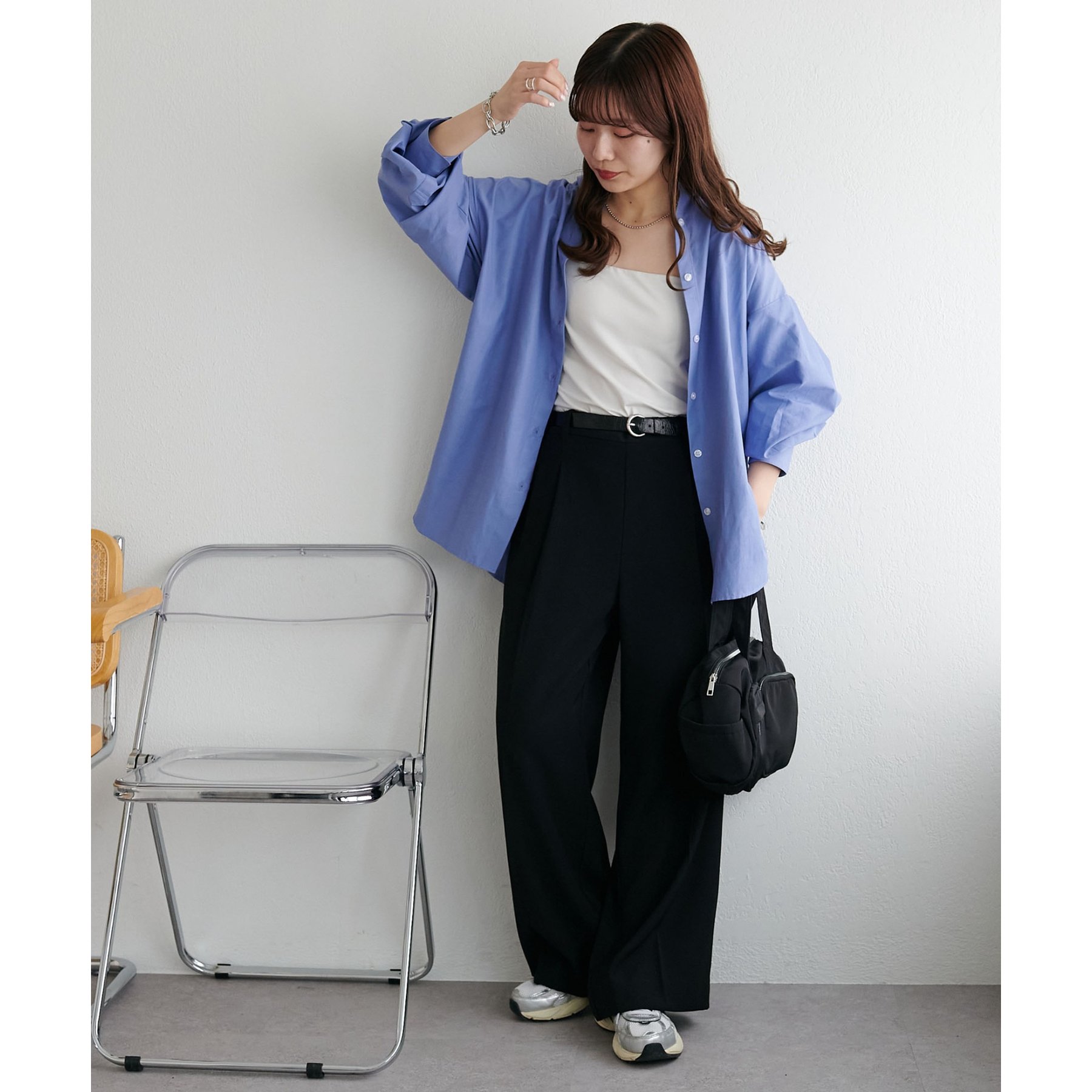 158cmスタッフ:ブルーシャツ、ストライプシャツは毎年人気なので一枚あるとトレンド問わず楽しめます◎