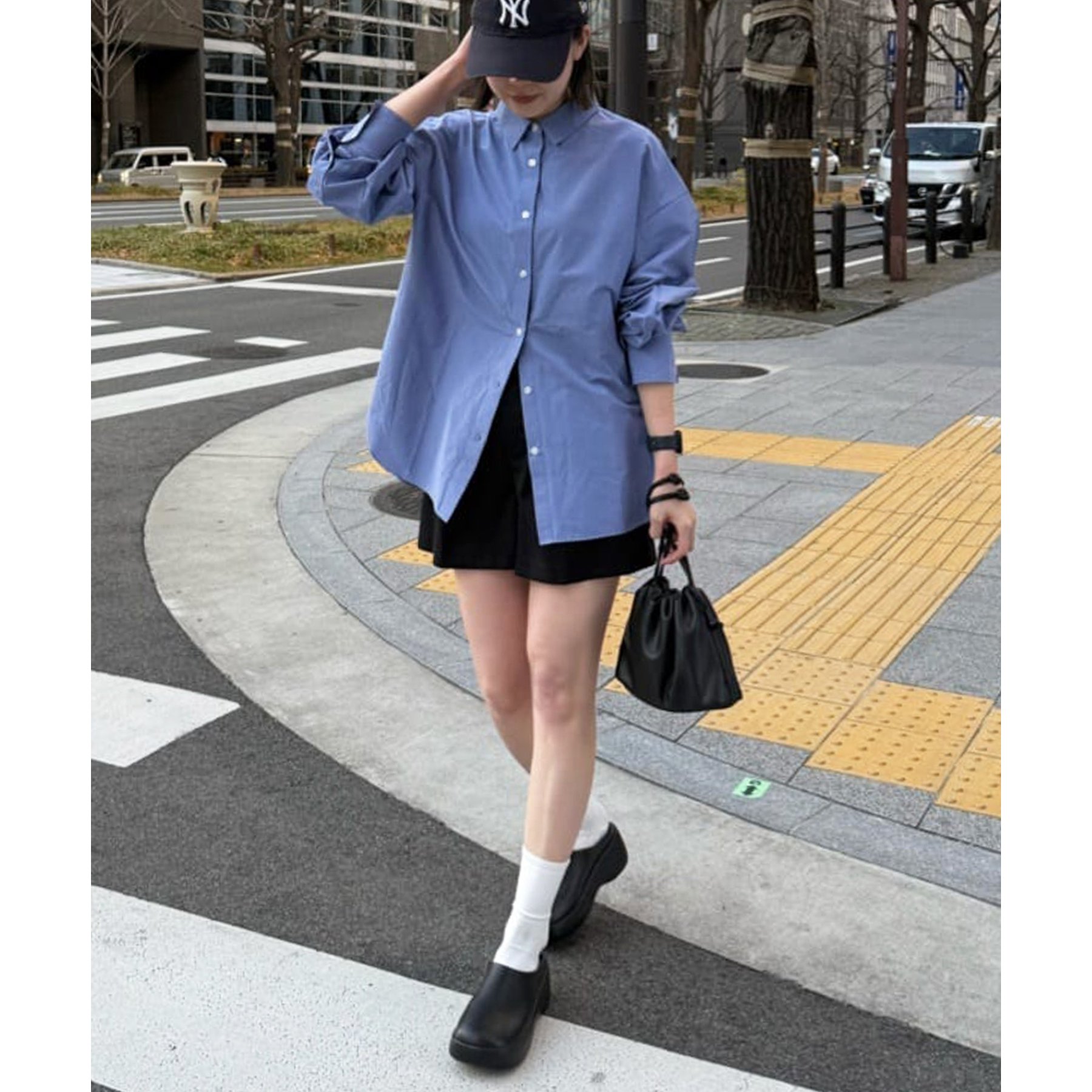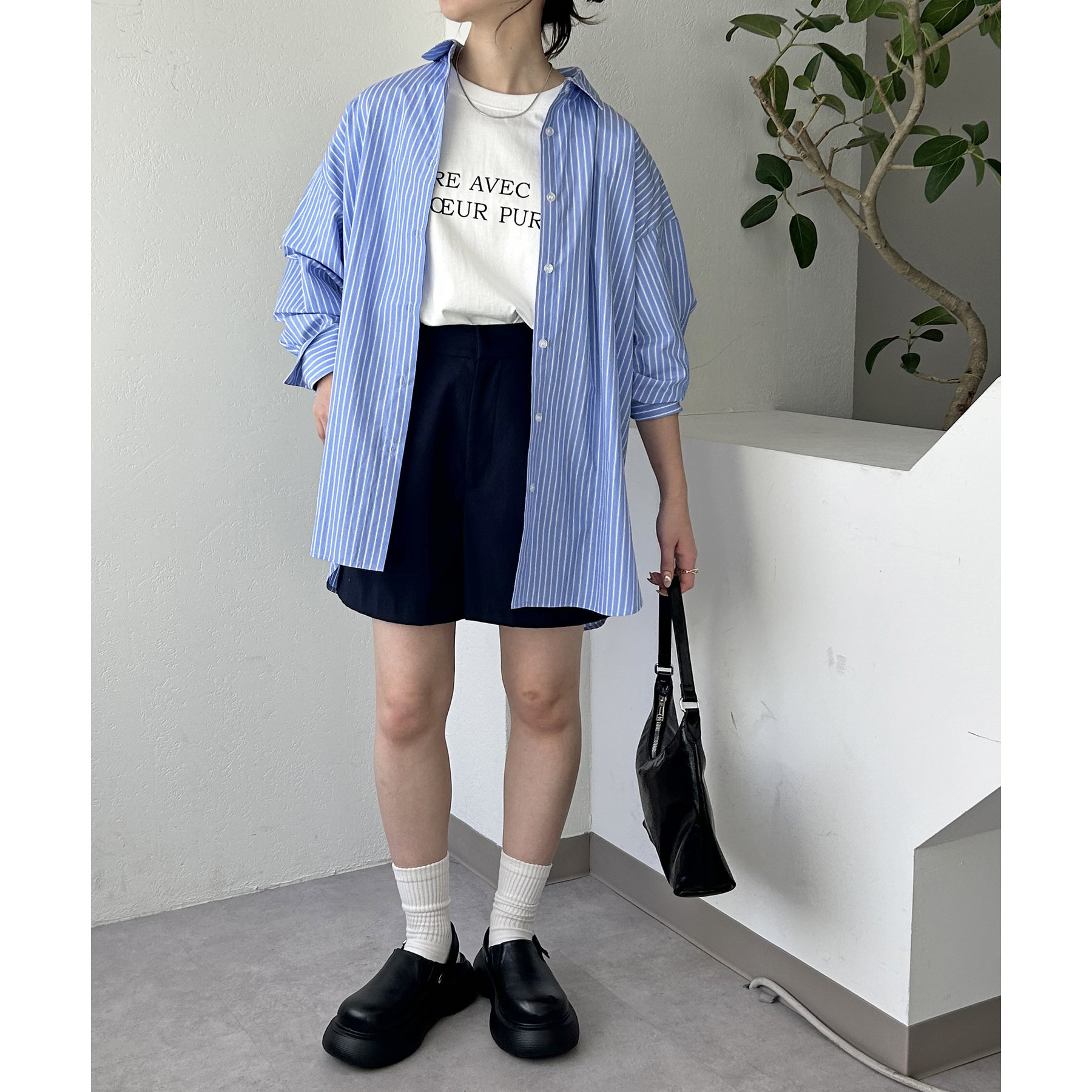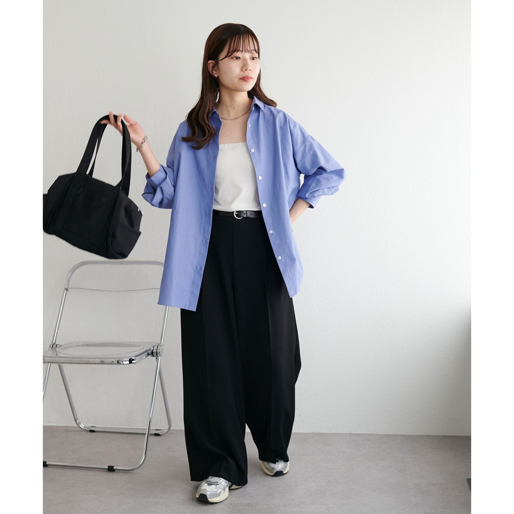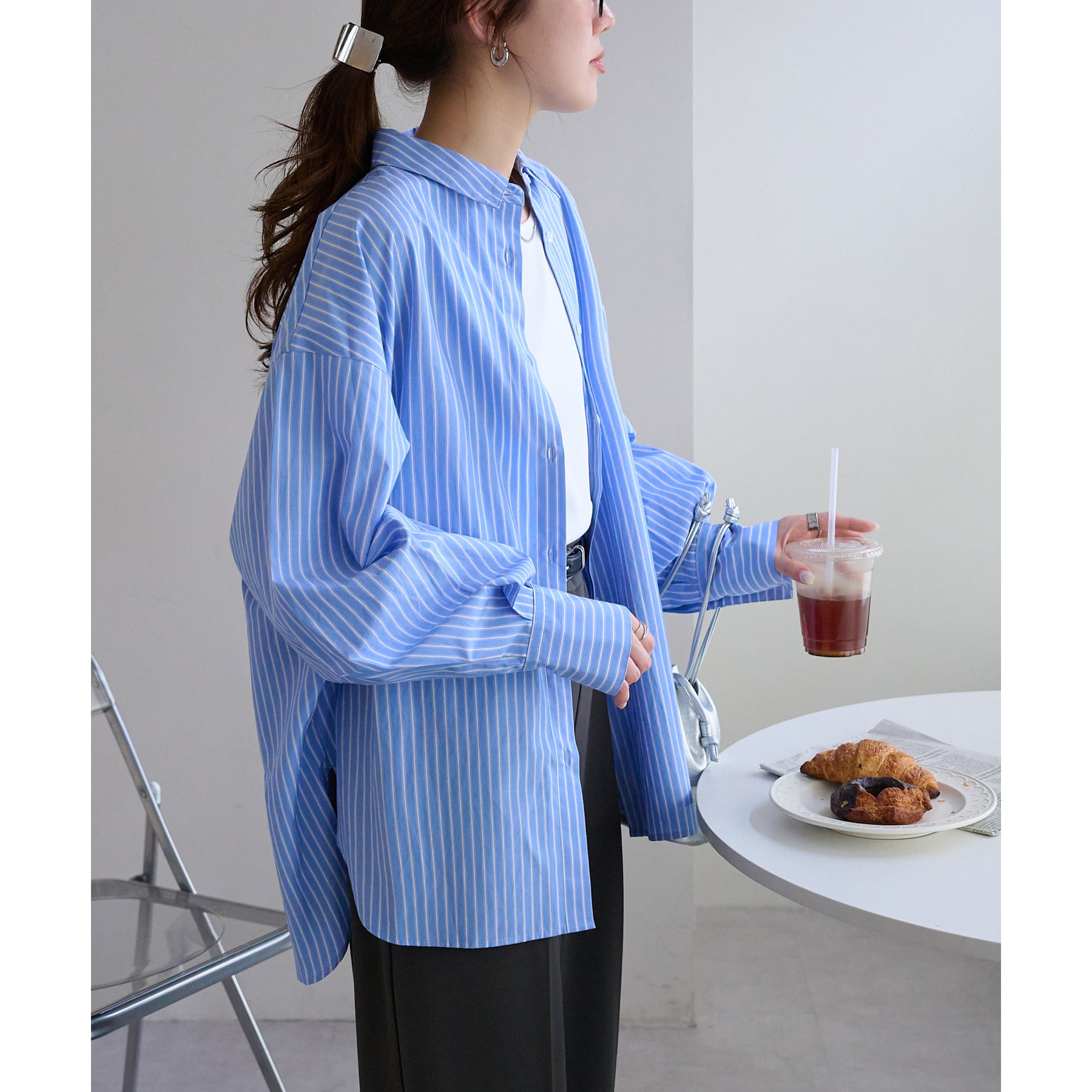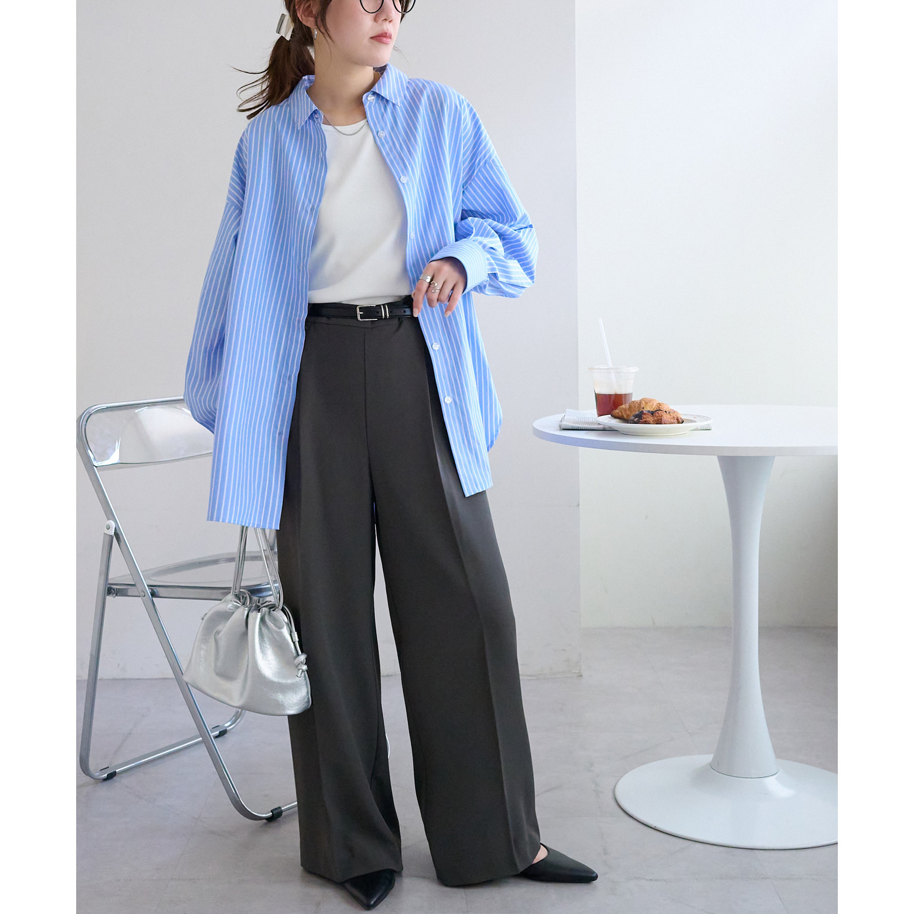 158cmスタッフ:ブルーシャツ、ストライプシャツは毎年人気なので一枚あるとトレンド問わず楽しめます◎
