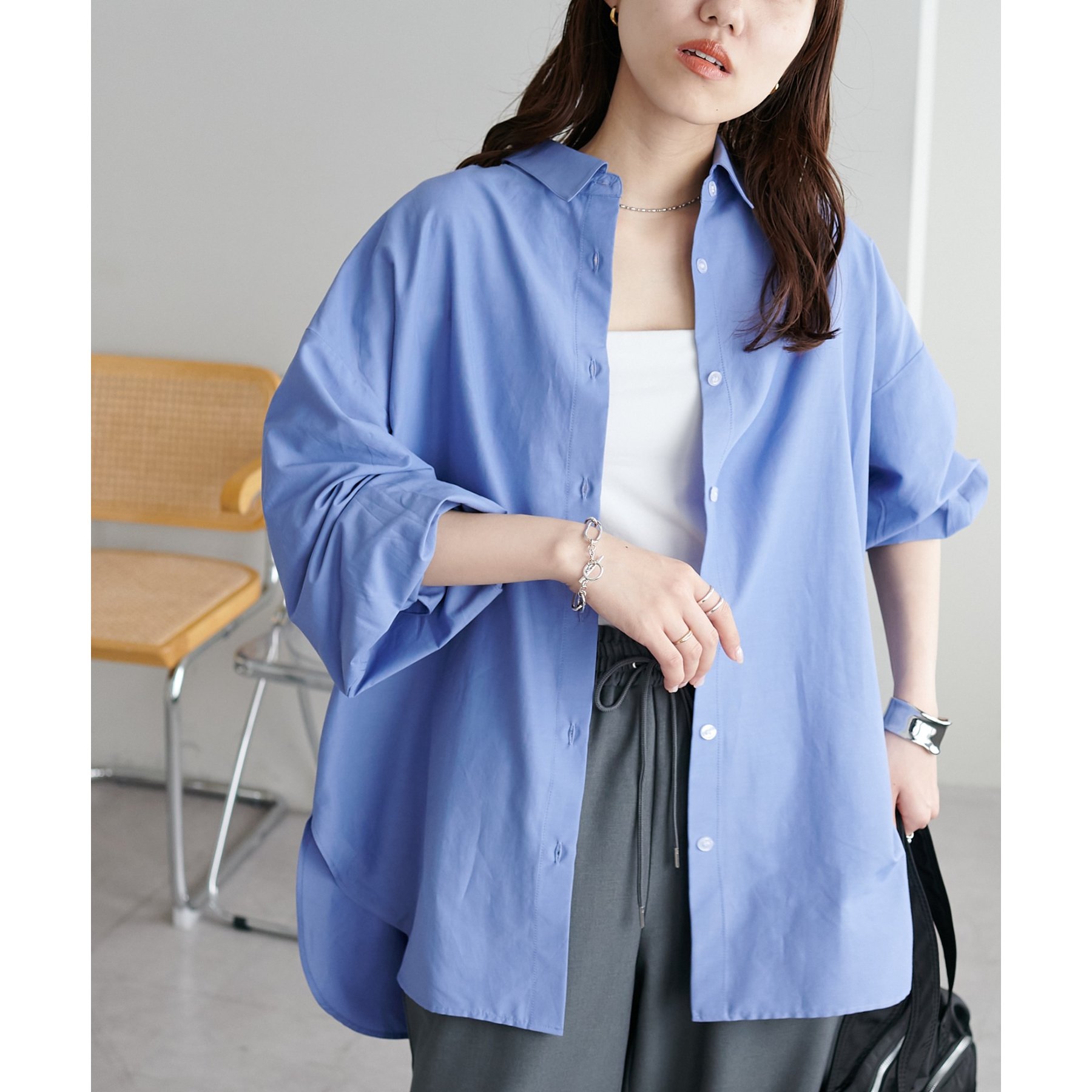 【着回し力の高い万能シャツ!】ブロードビッグシャツ