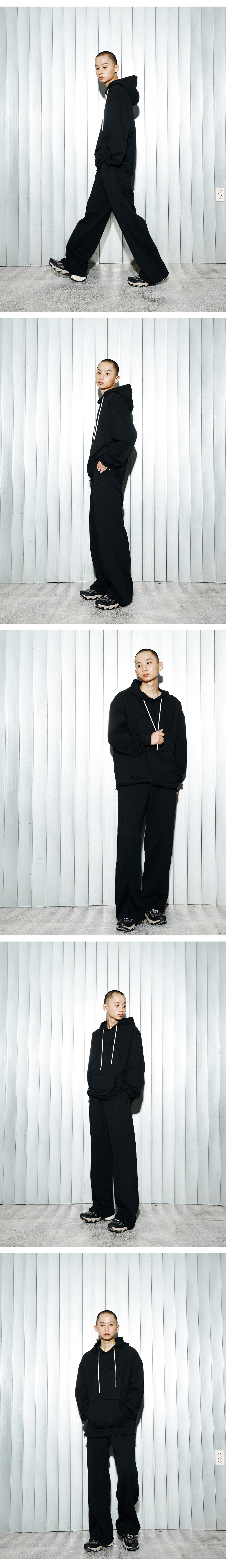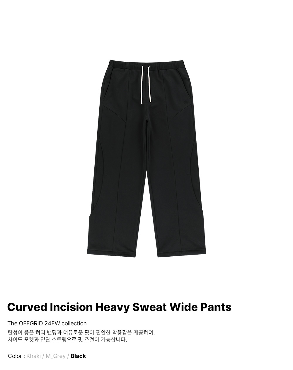 カーブドインシジョンヘビースウェットワイドパンツ - ブラック