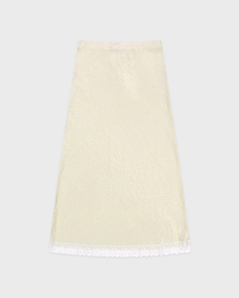 Satin Lace Long Skirt (Cream)