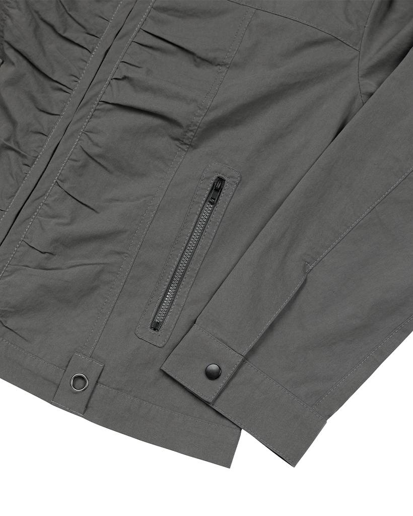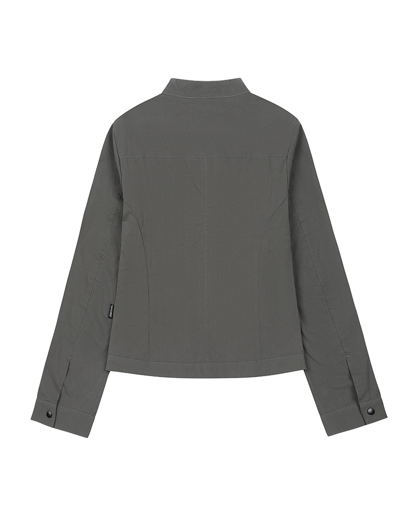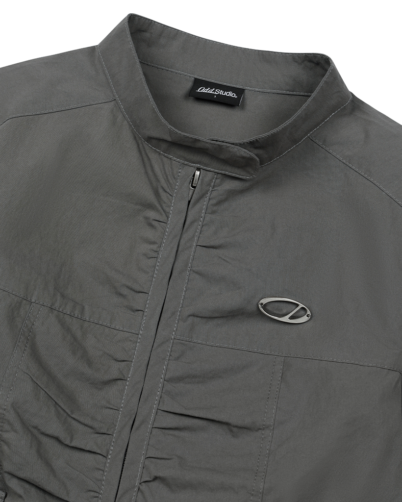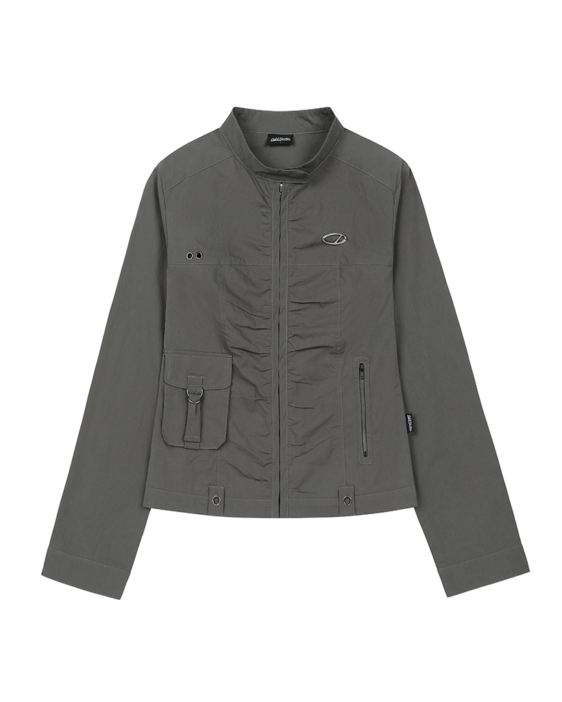 Signature Shirring Cotton Biker Jacket - CHARCOAL