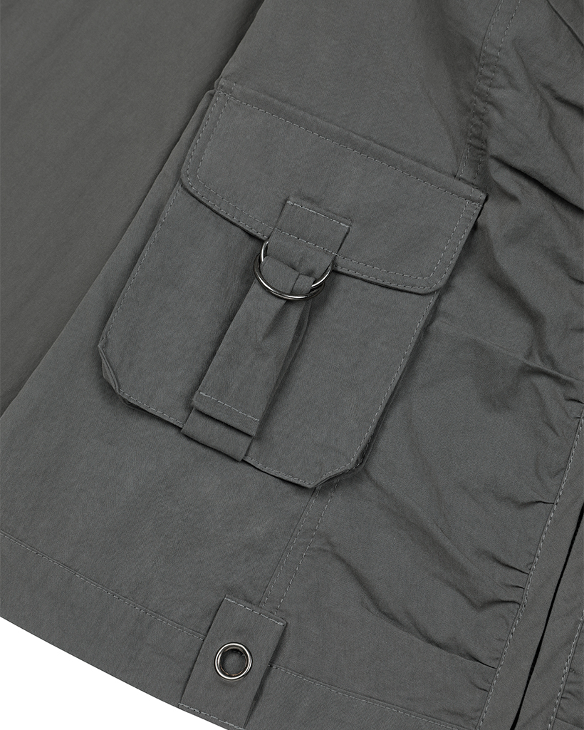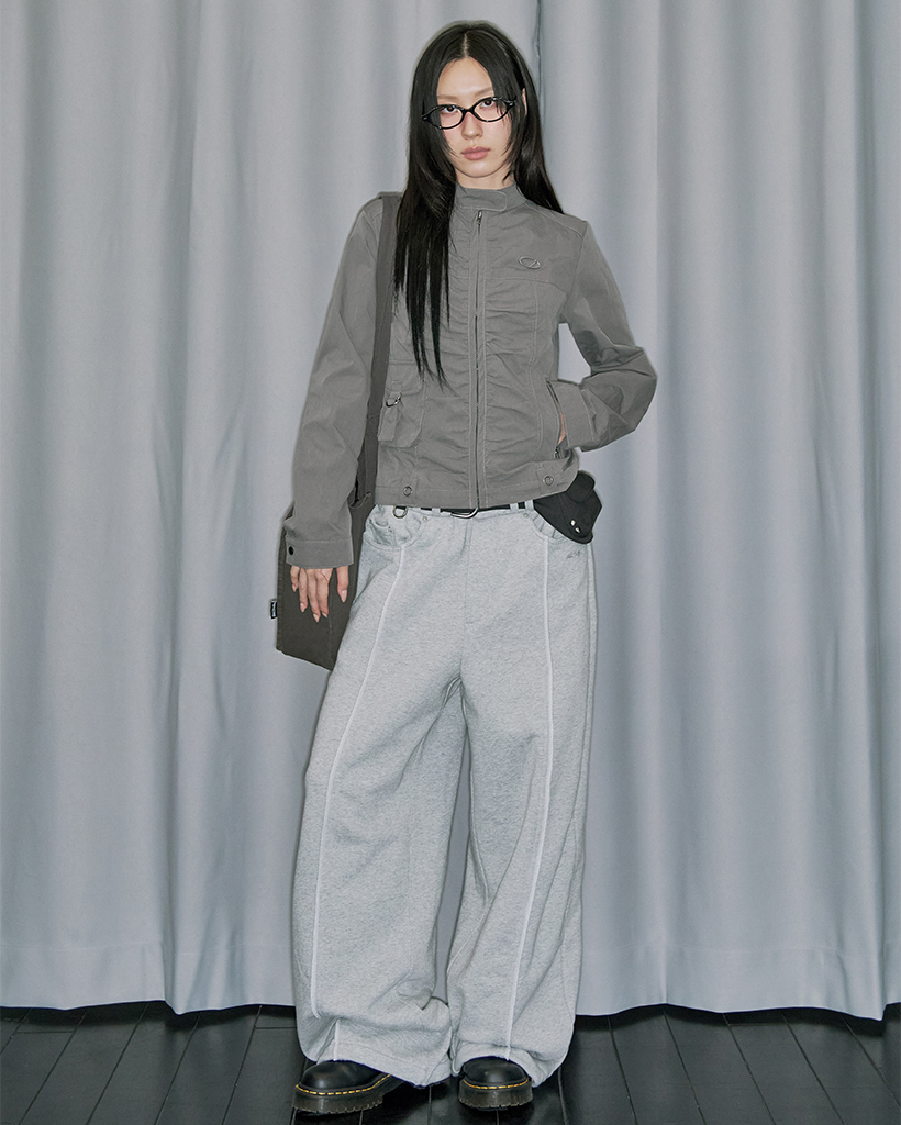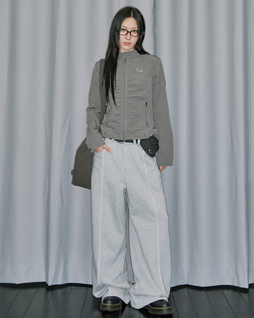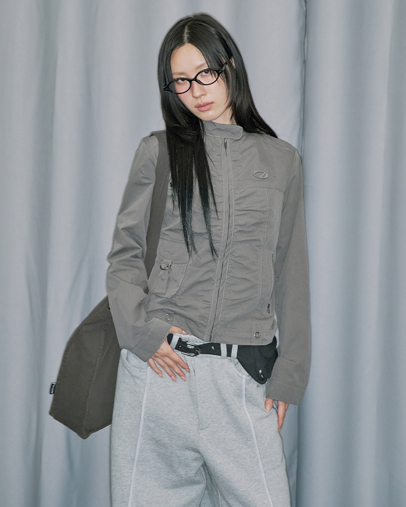 Signature Shirring Cotton Biker Jacket - CHARCOAL