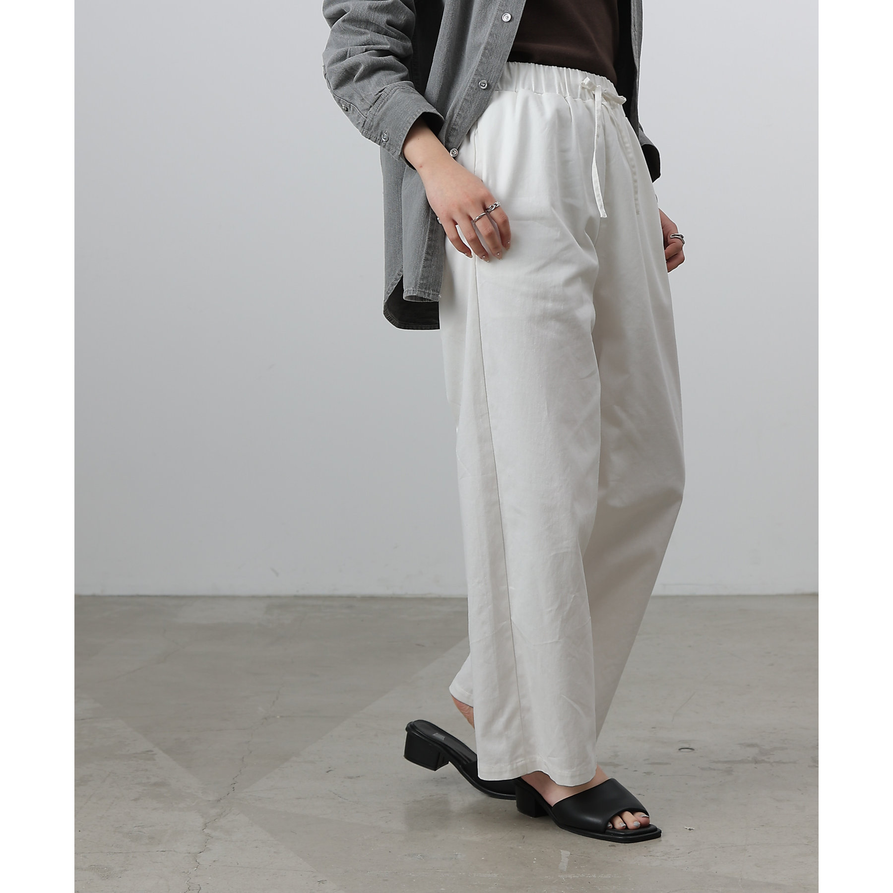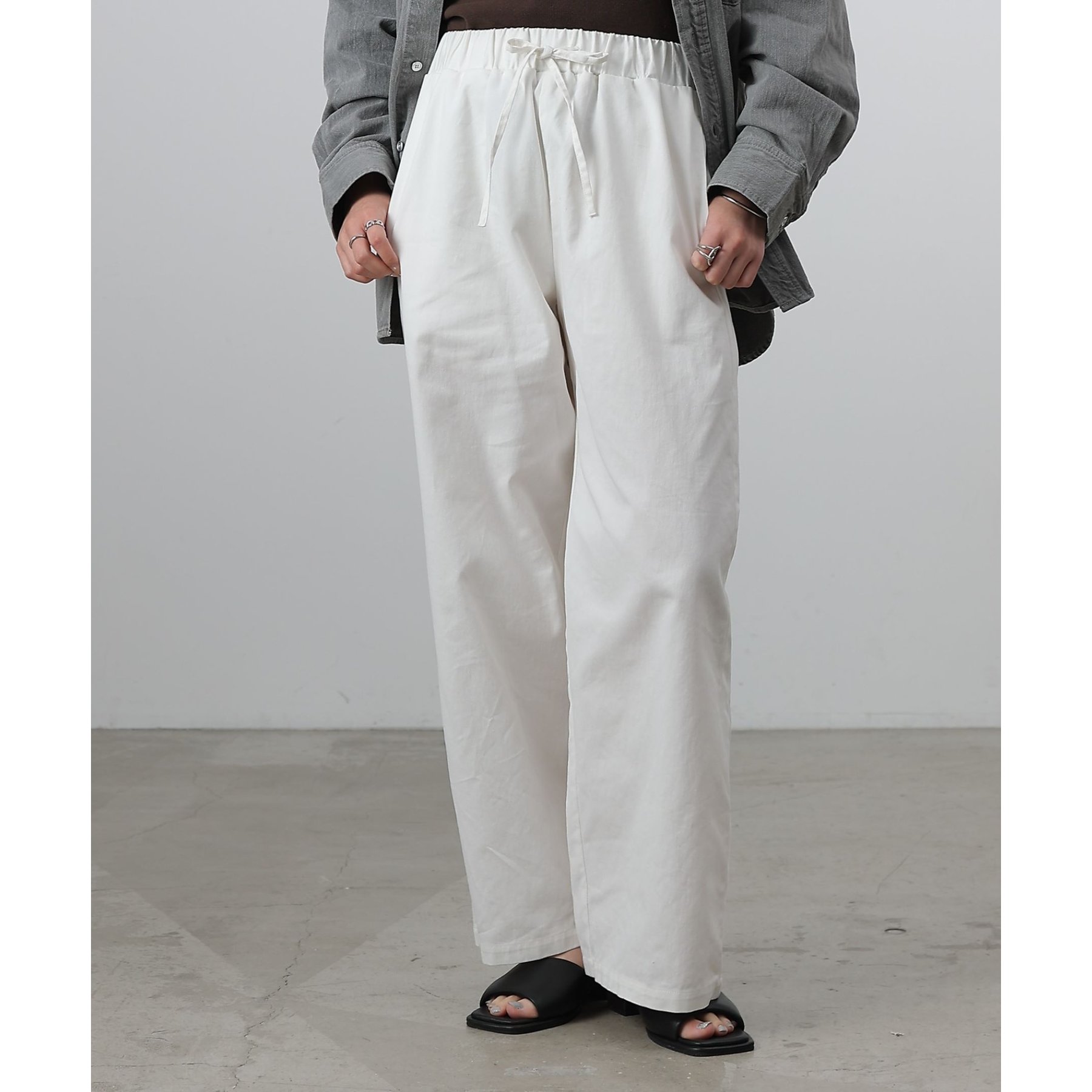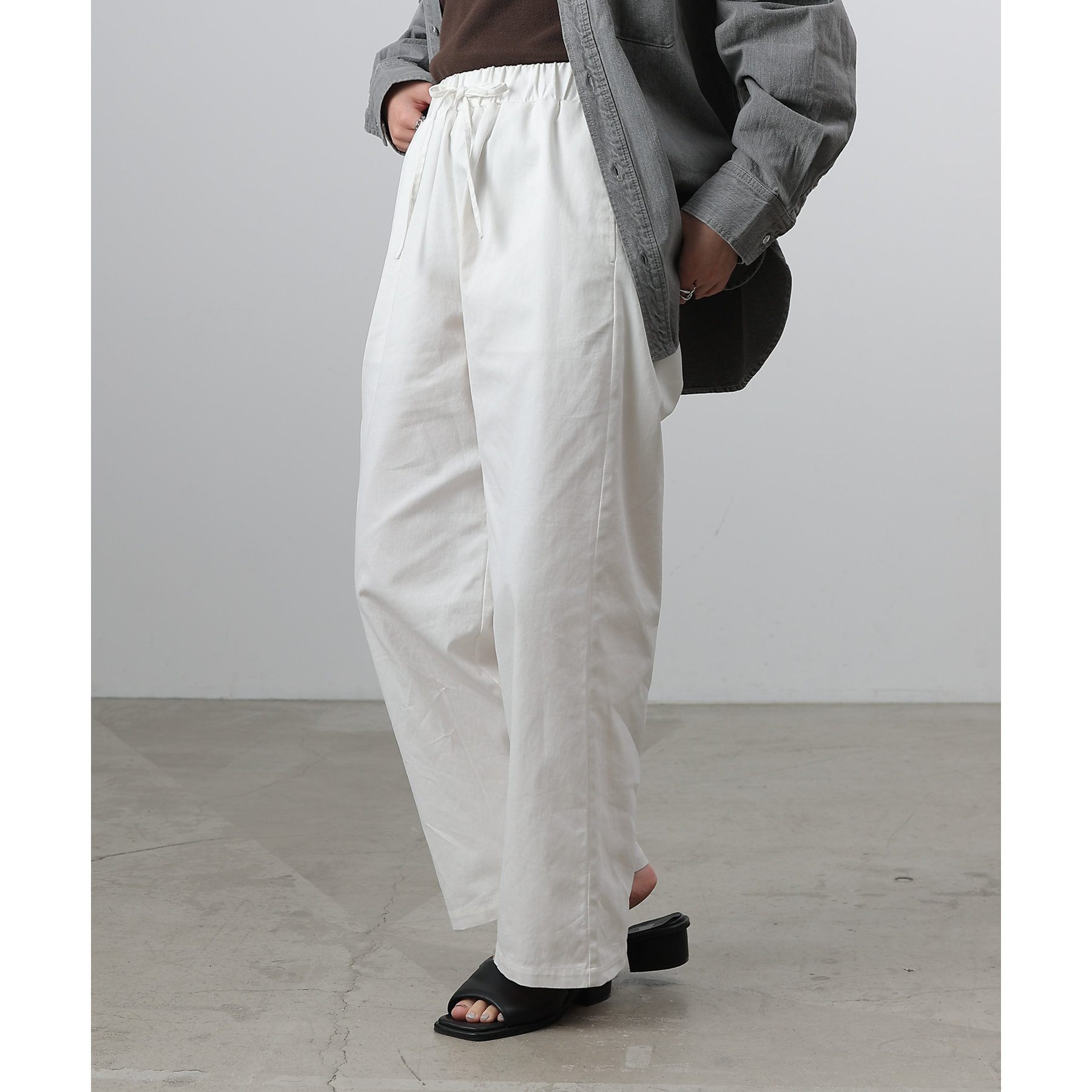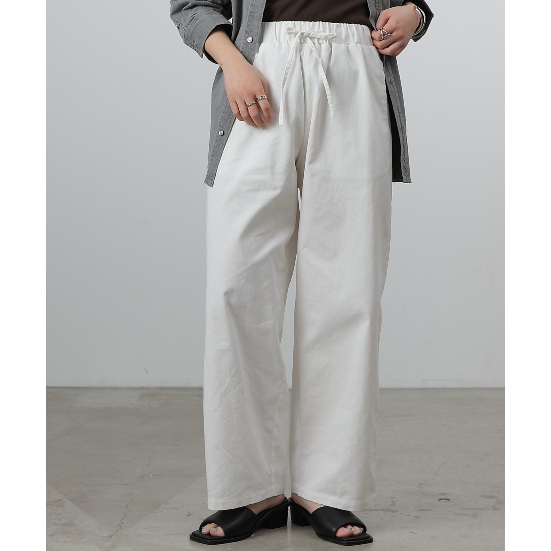 紐ウエストゴムでリラックス感のある履き心地なのも嬉しいポイント◎