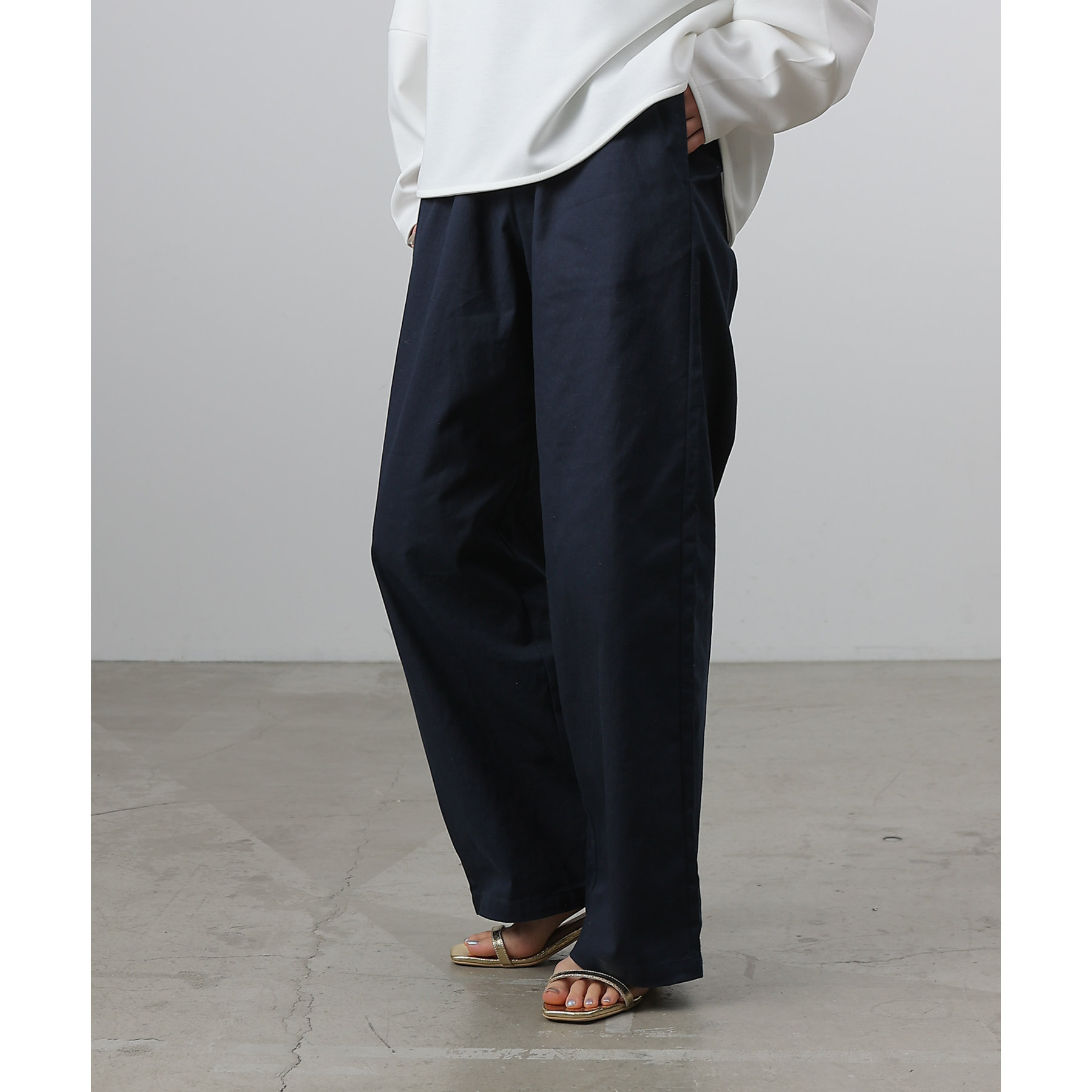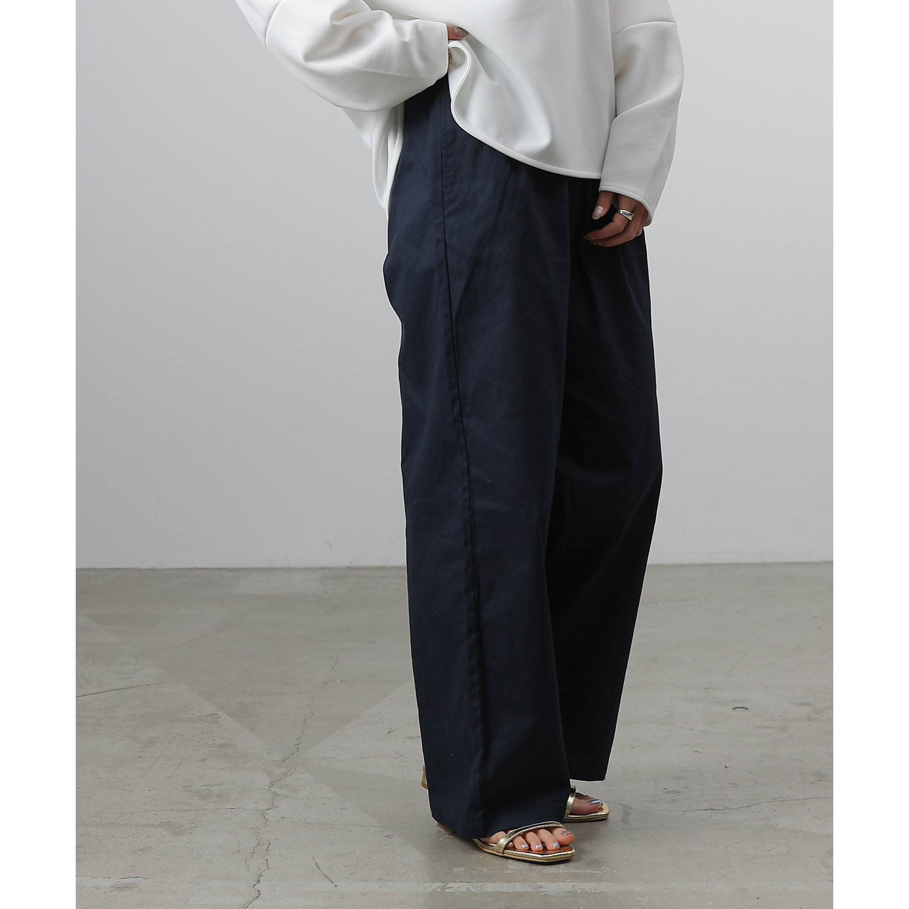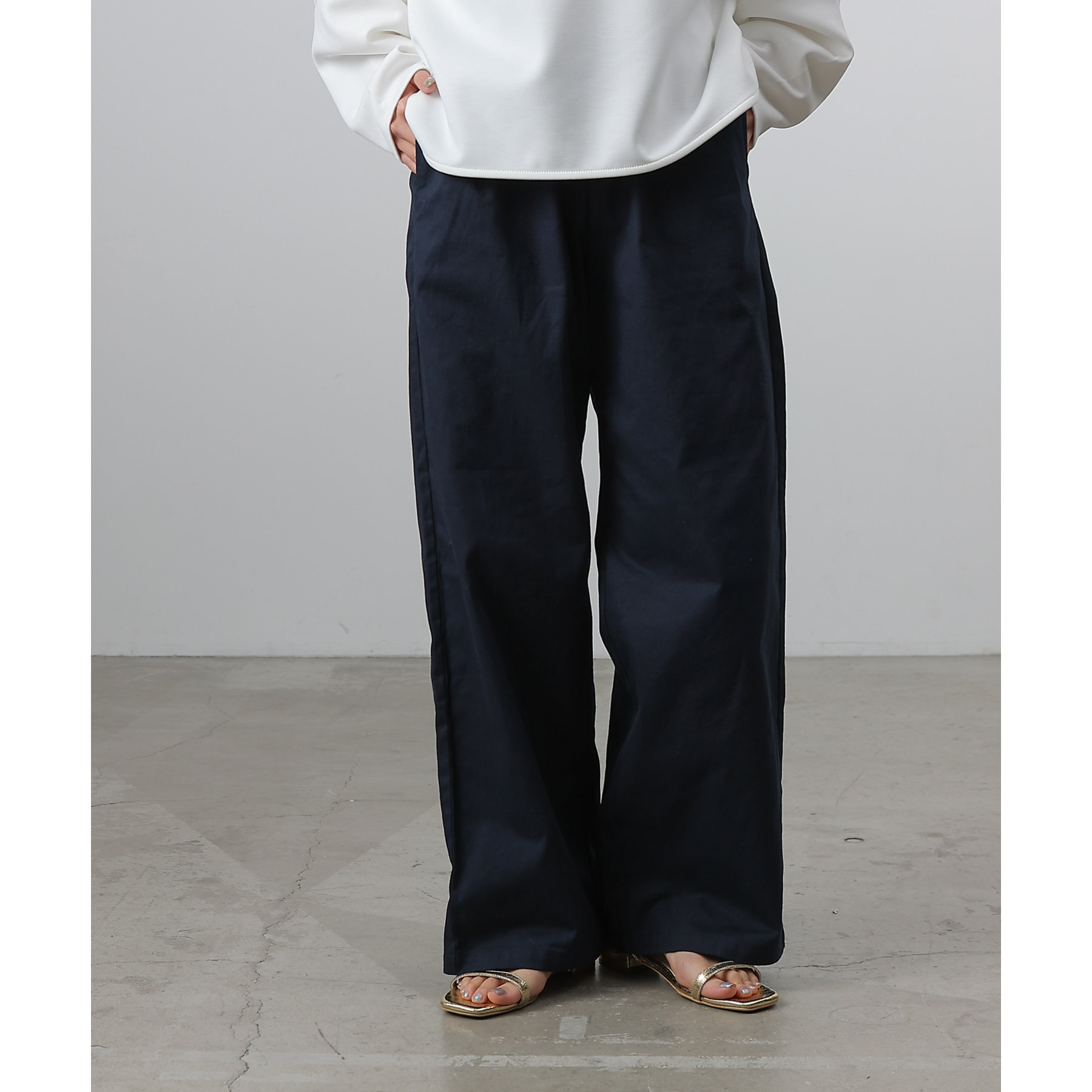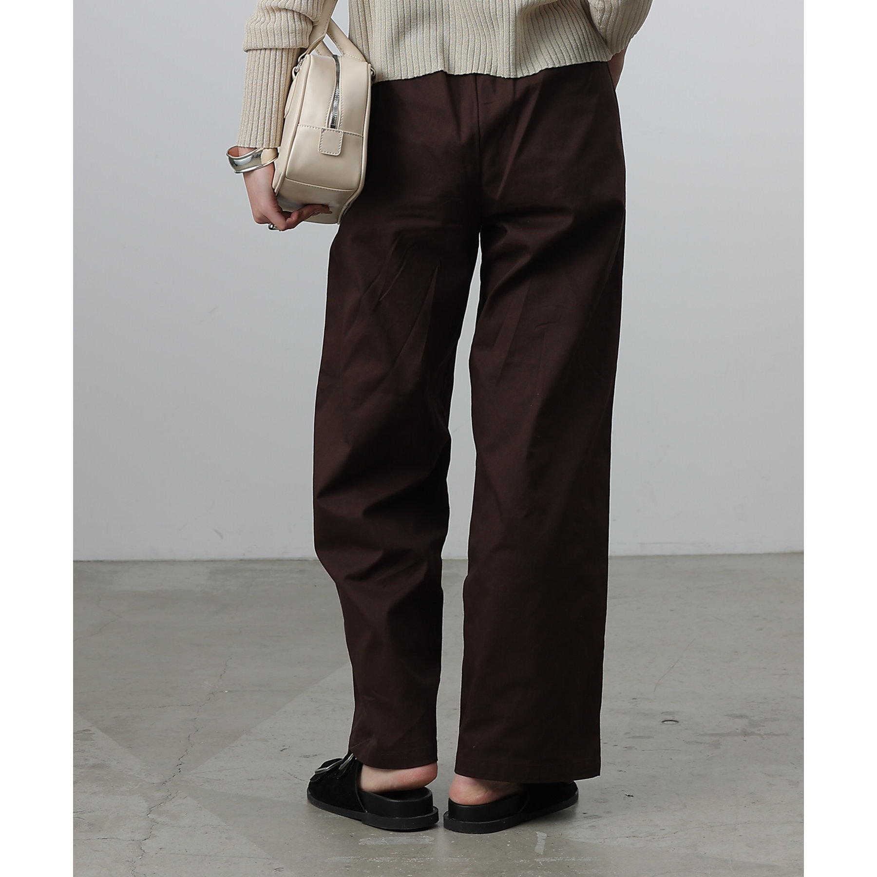 膝から裾までのシルエットがまっすぐなデザインでスタイルアップ効果が狙えるイージーパンツ。