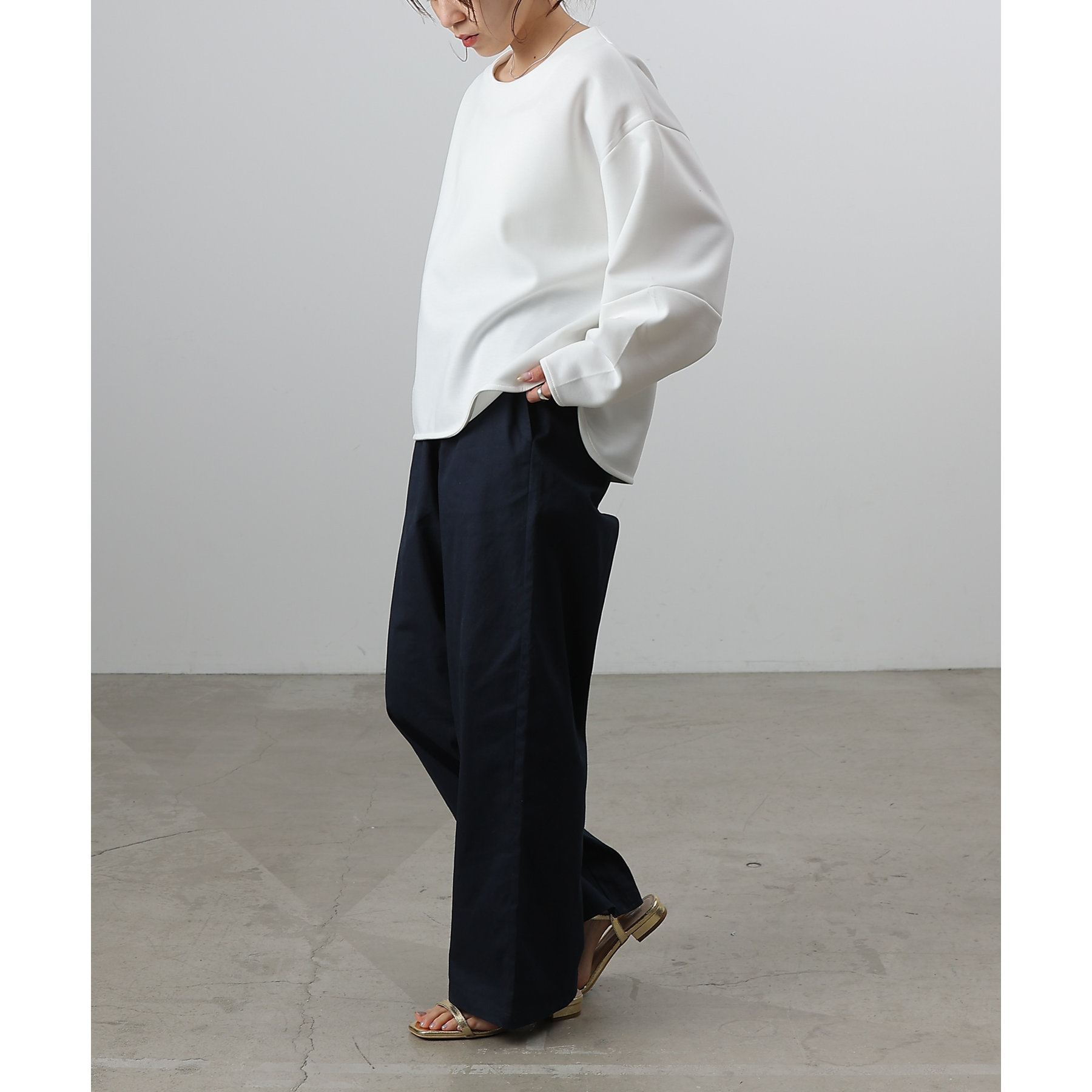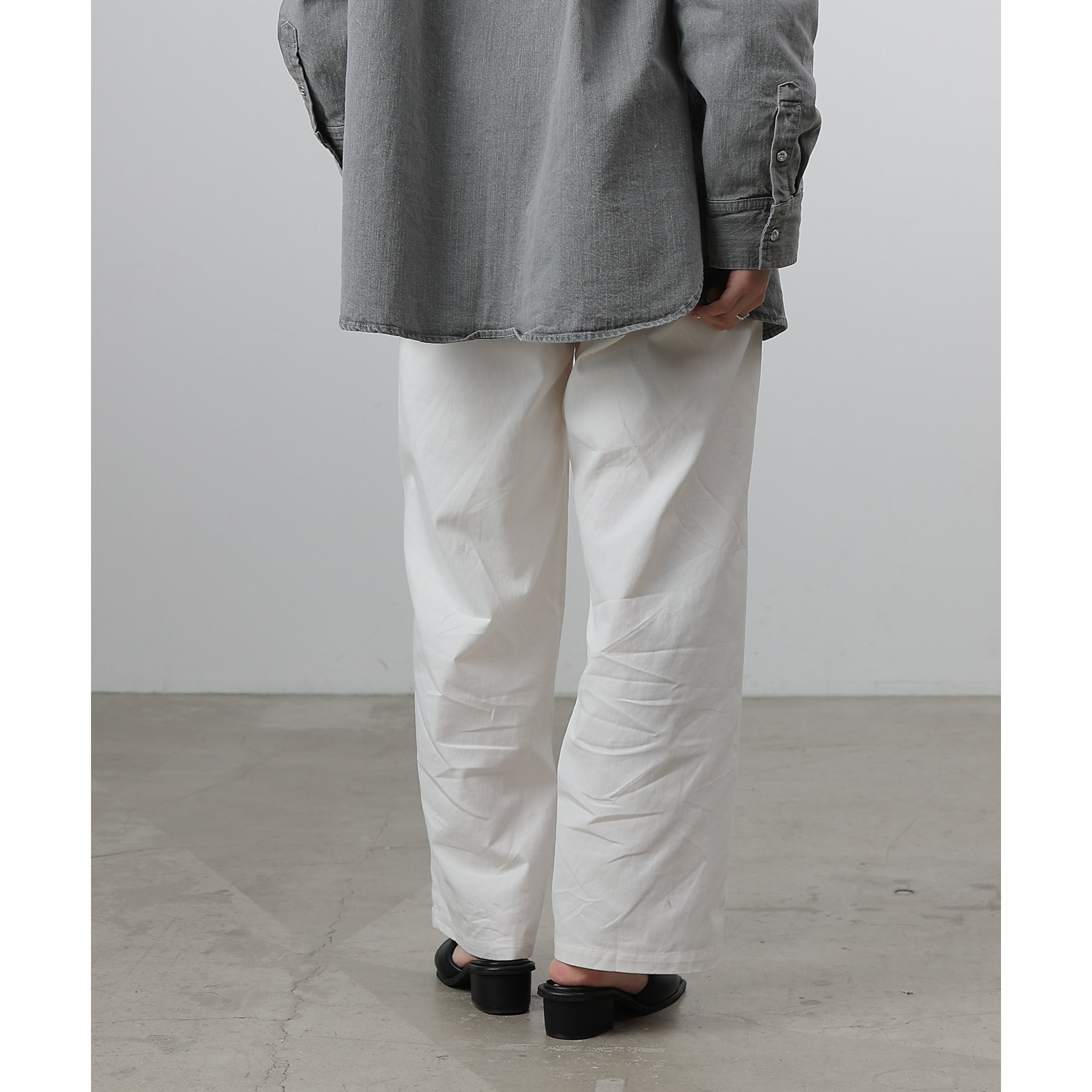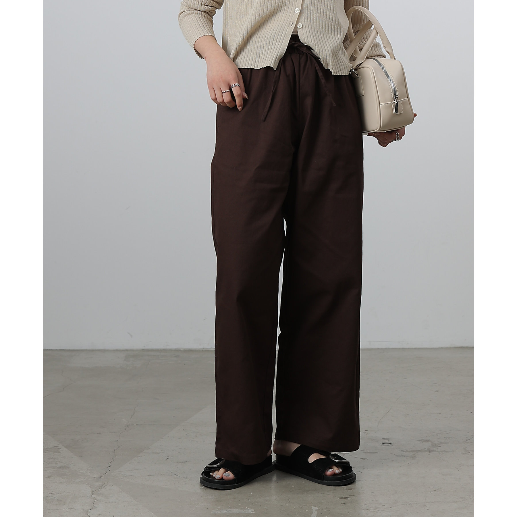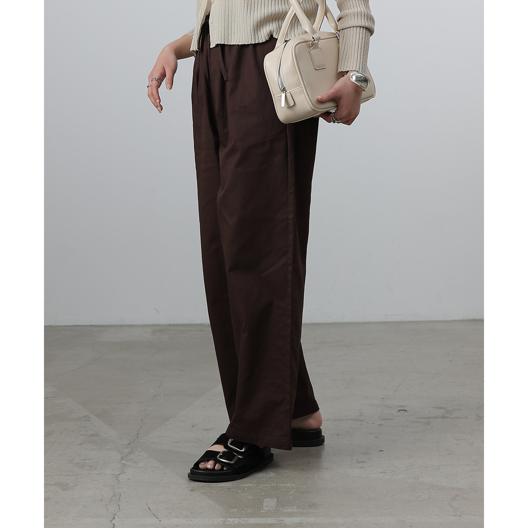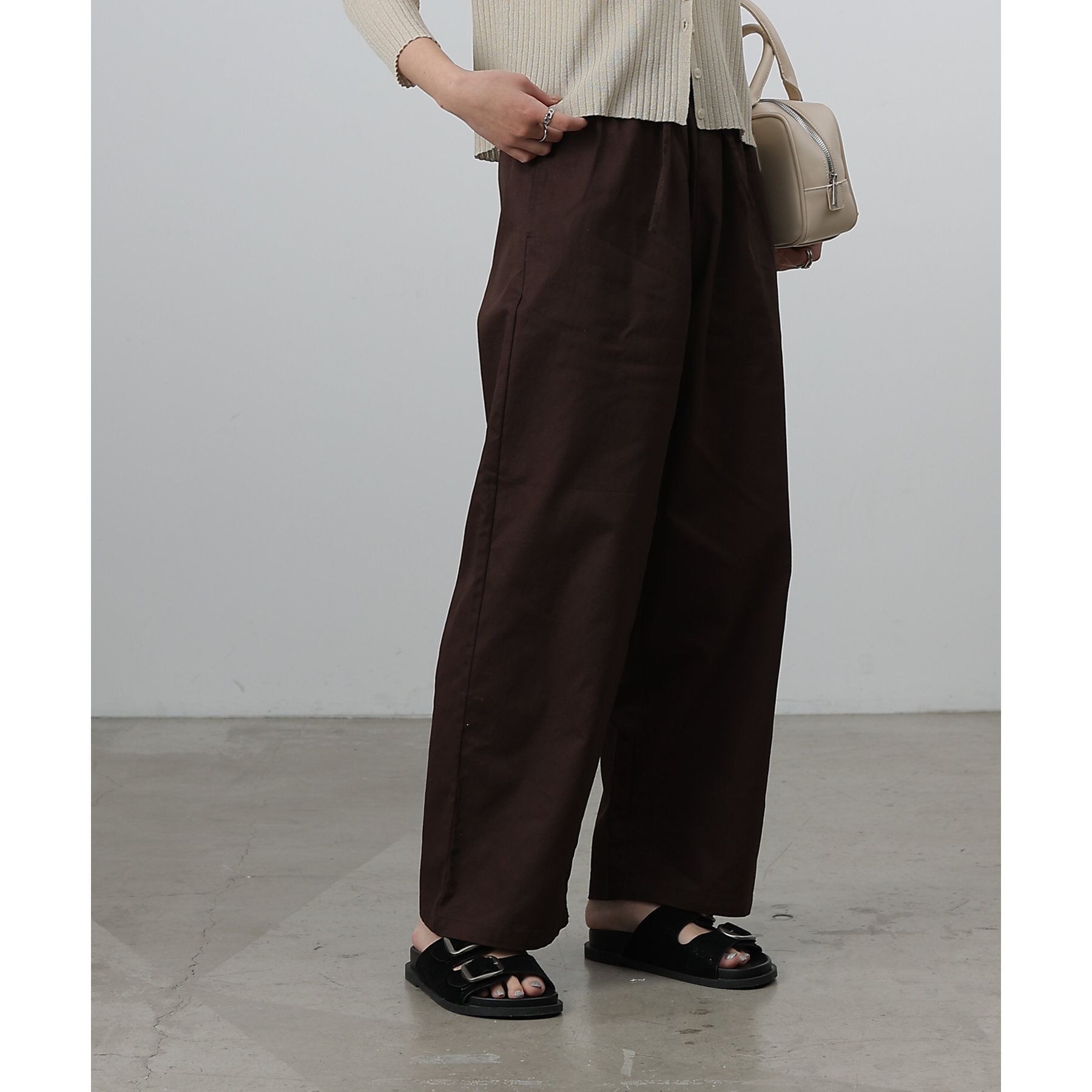 膝から裾までのシルエットがまっすぐなデザインでスタイルアップ効果が狙えるイージーパンツ。