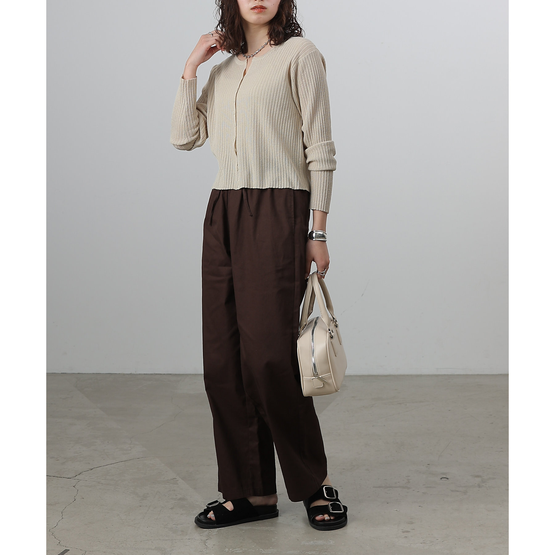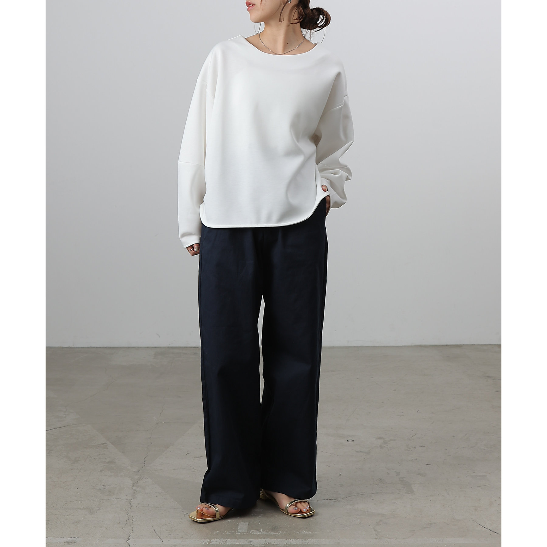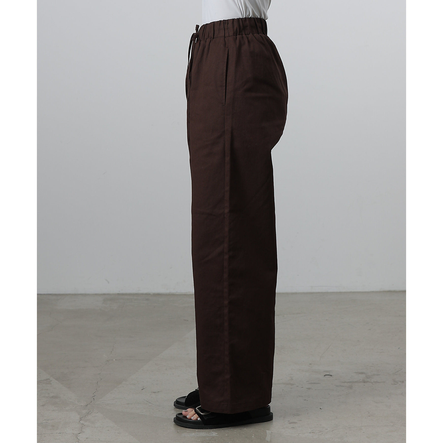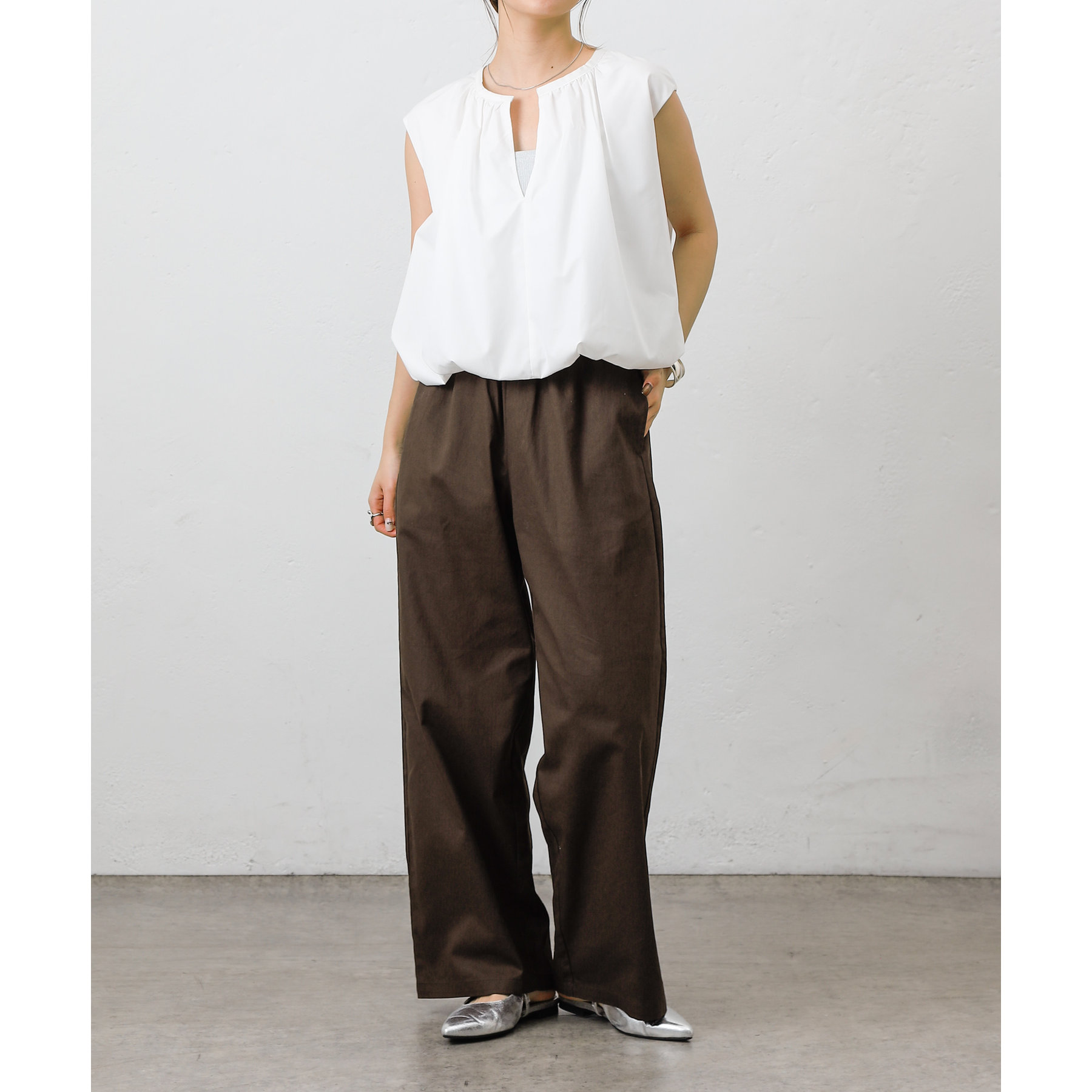 膝から裾までのシルエットがまっすぐなデザインでスタイルアップ効果が狙えるイージーパンツ。