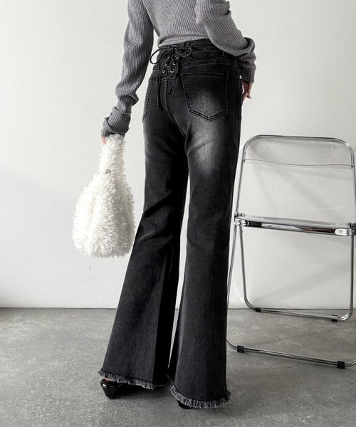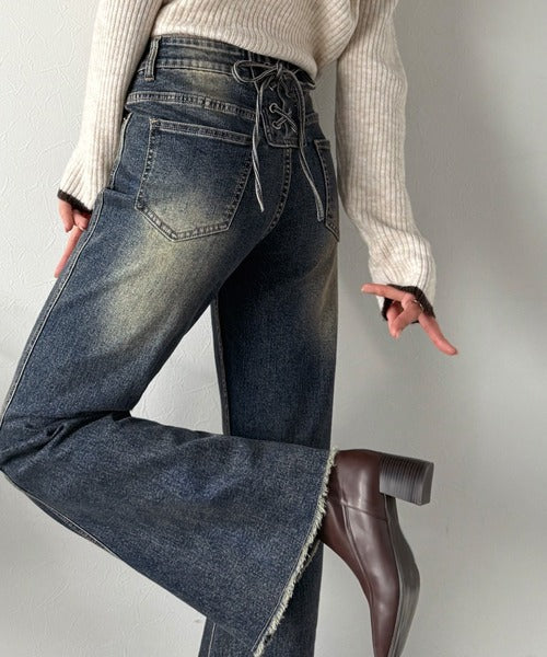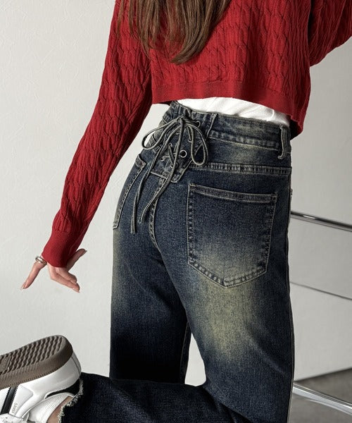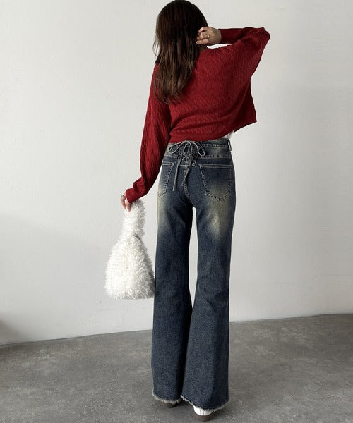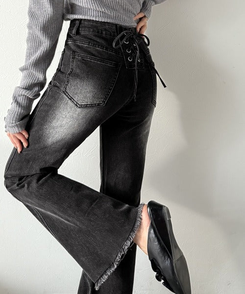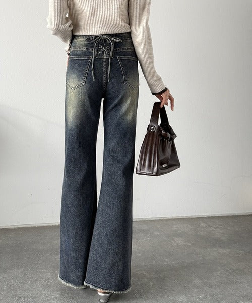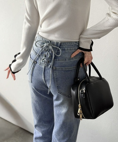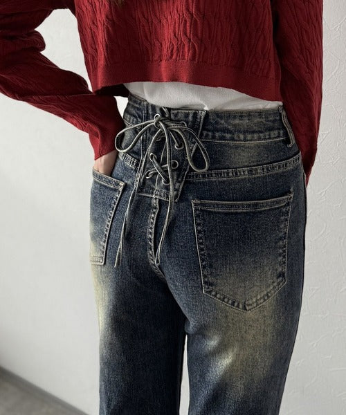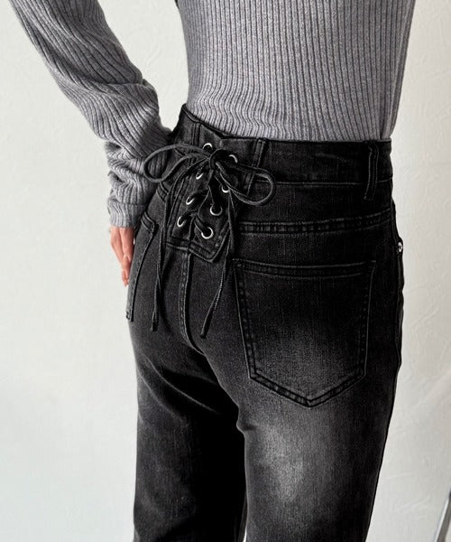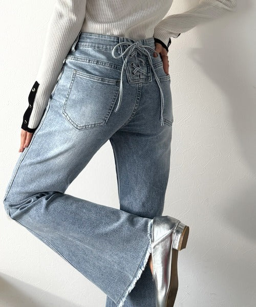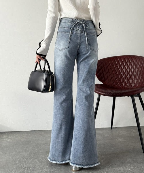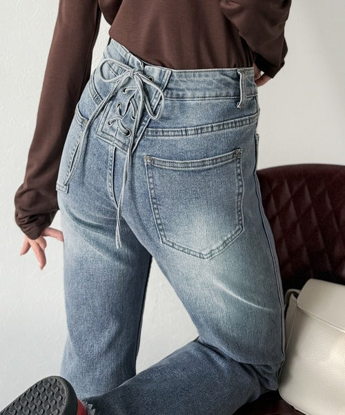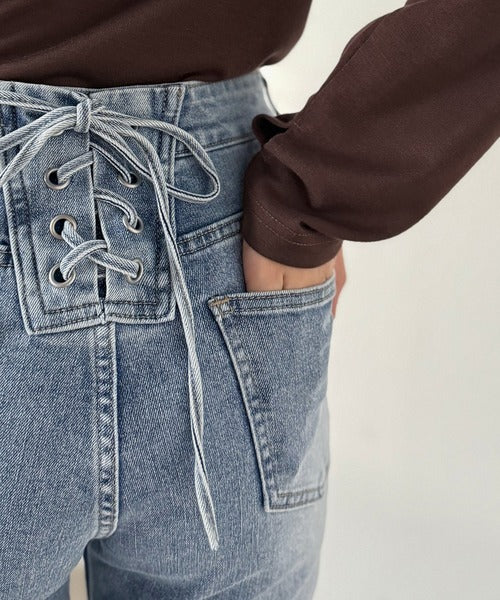 編み上げ仕様のバックリボンを背面に施したガーリーなデニム♪