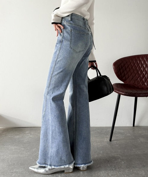 甘めリボン×美脚フレアで魅せる愛されデニム!