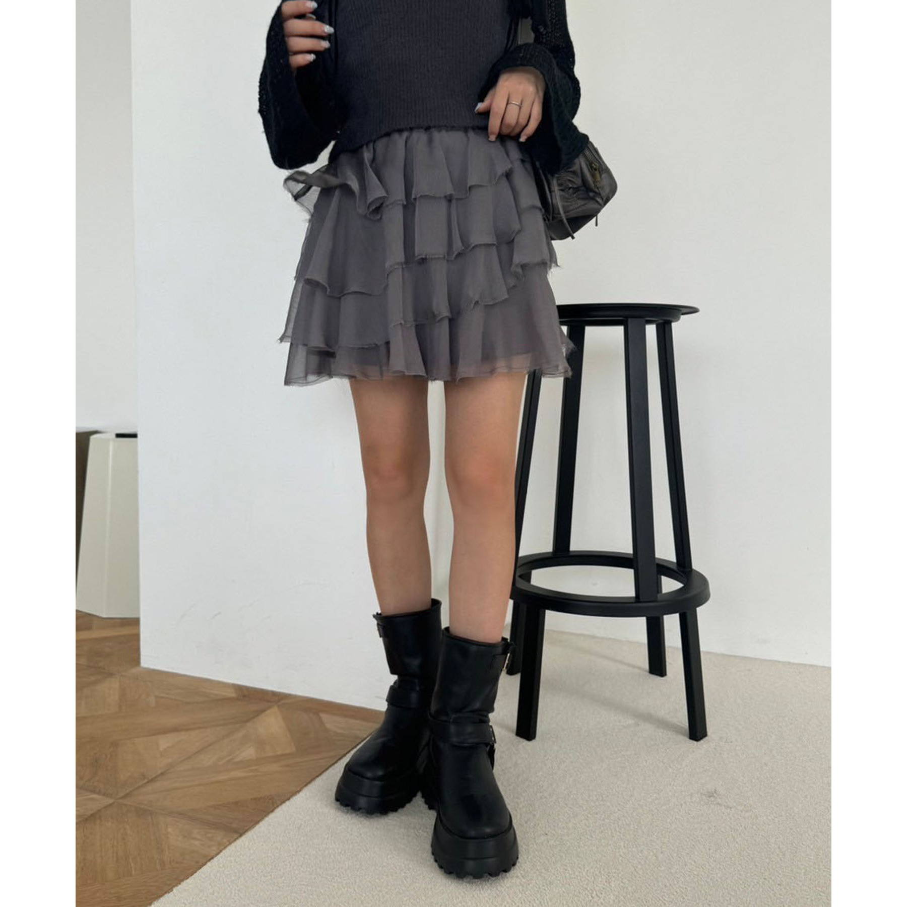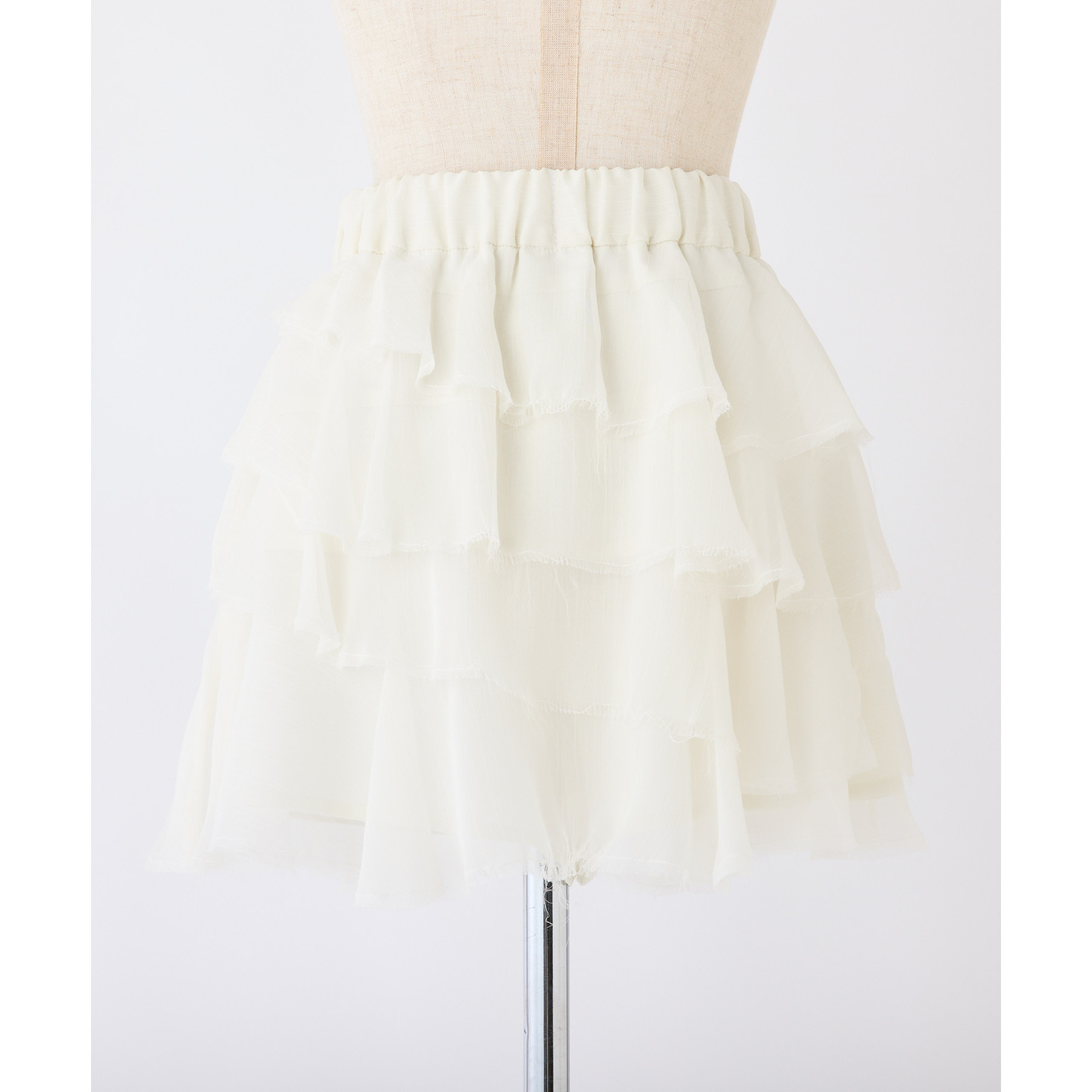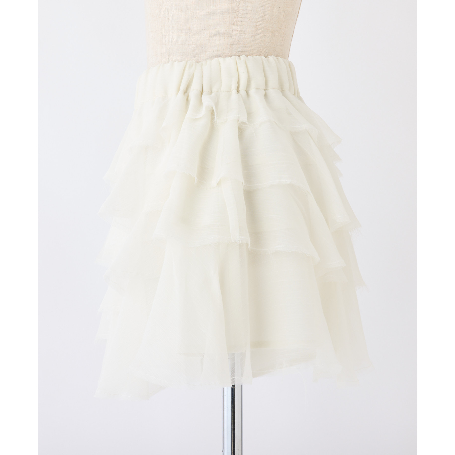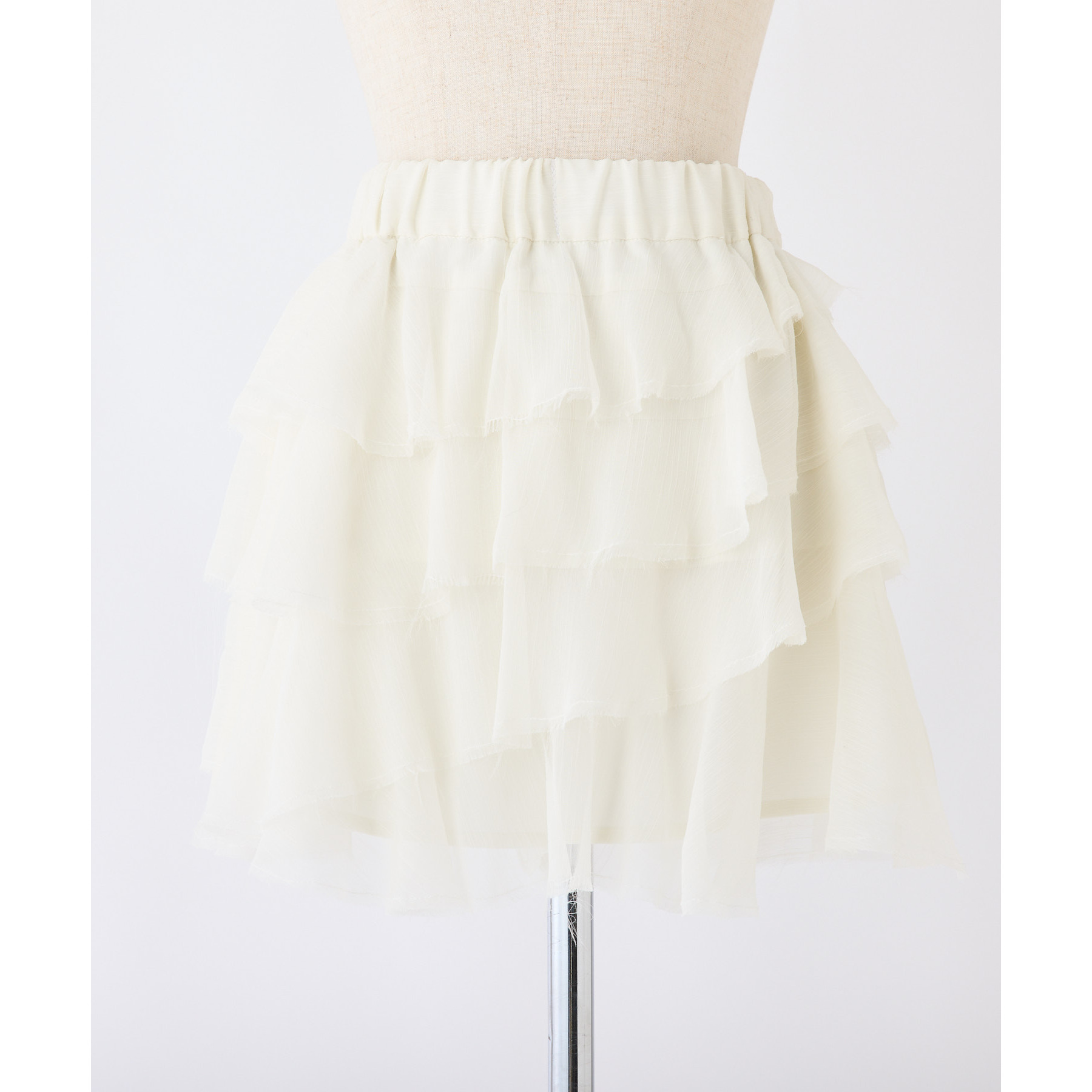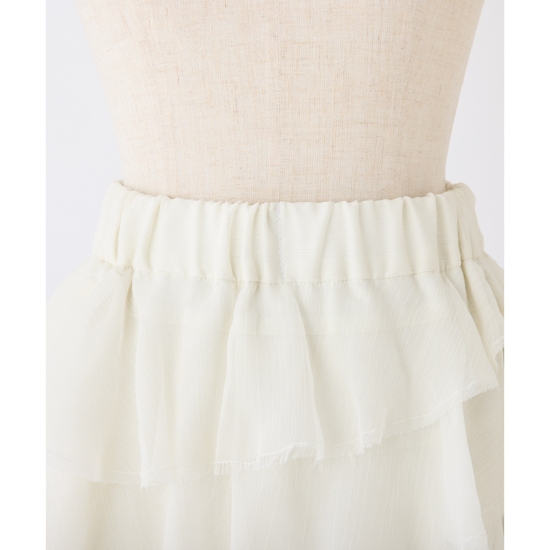 1枚で主役級のフリルスカートなのでシンプルなトップスと合わせていただくのがオススメです。