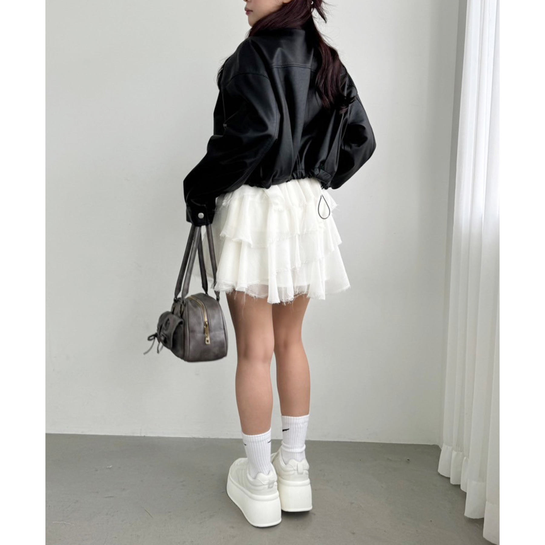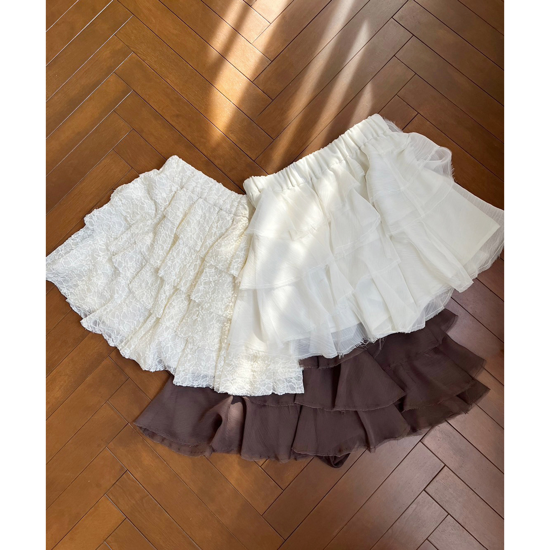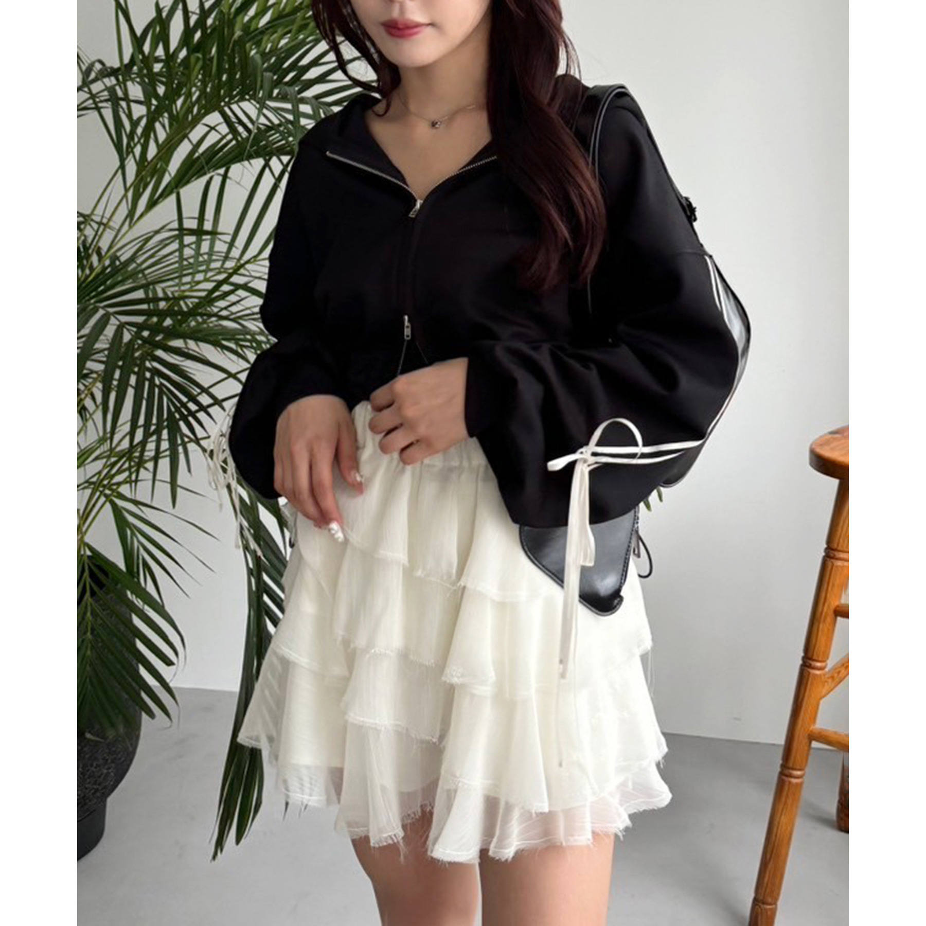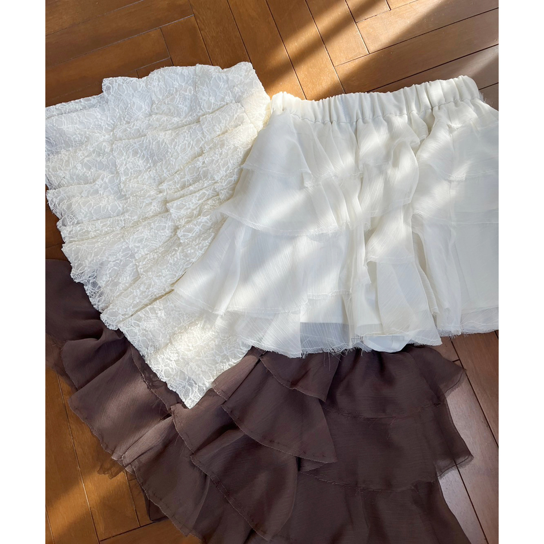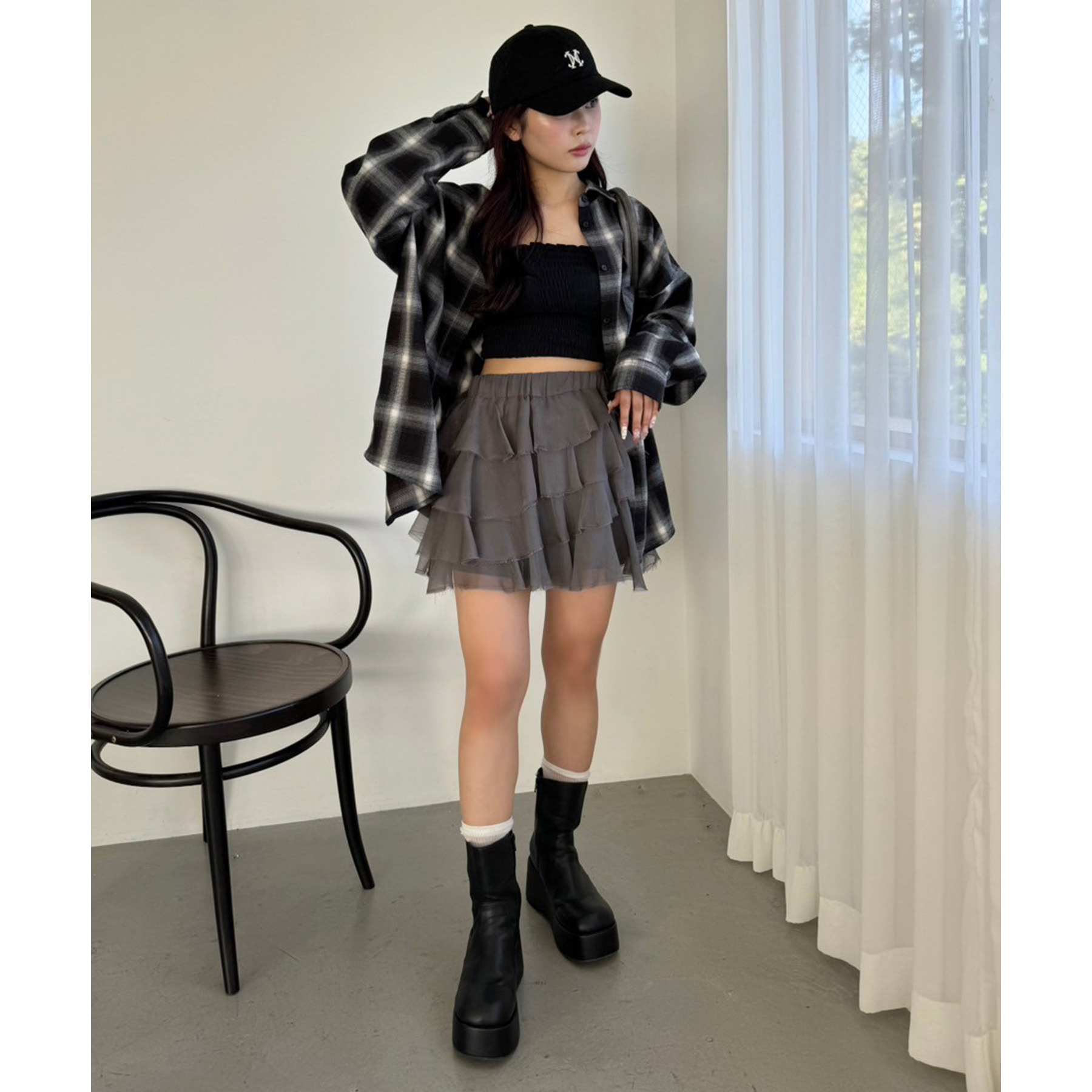 1枚で主役級のフリルスカートなのでシンプルなトップスと合わせていただくのがオススメです。