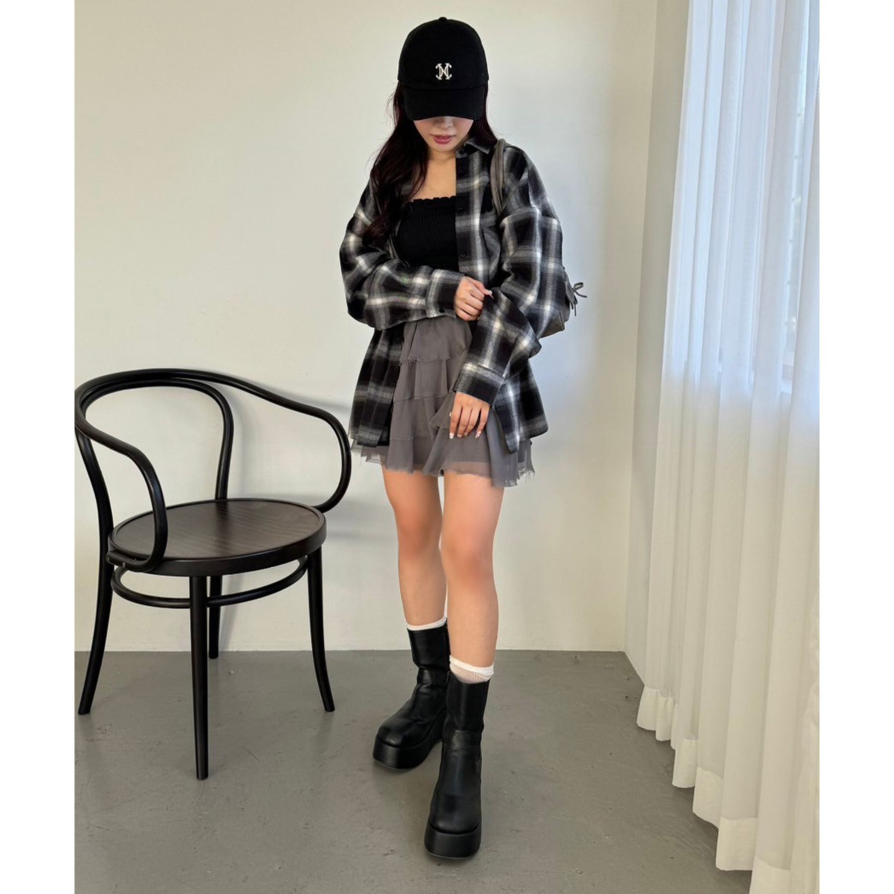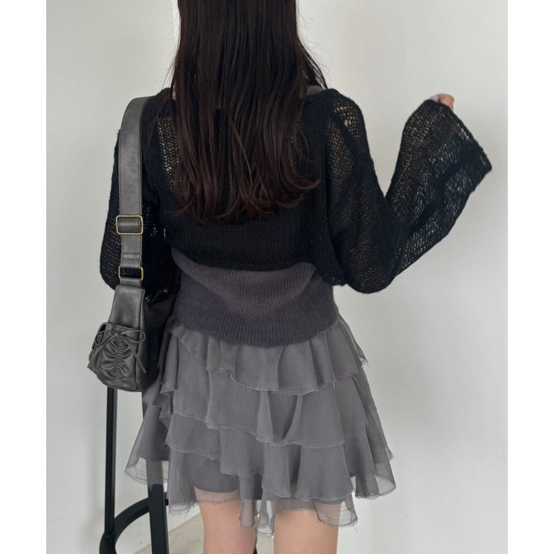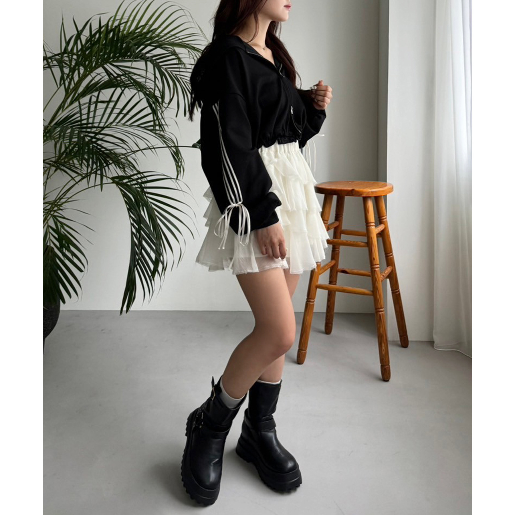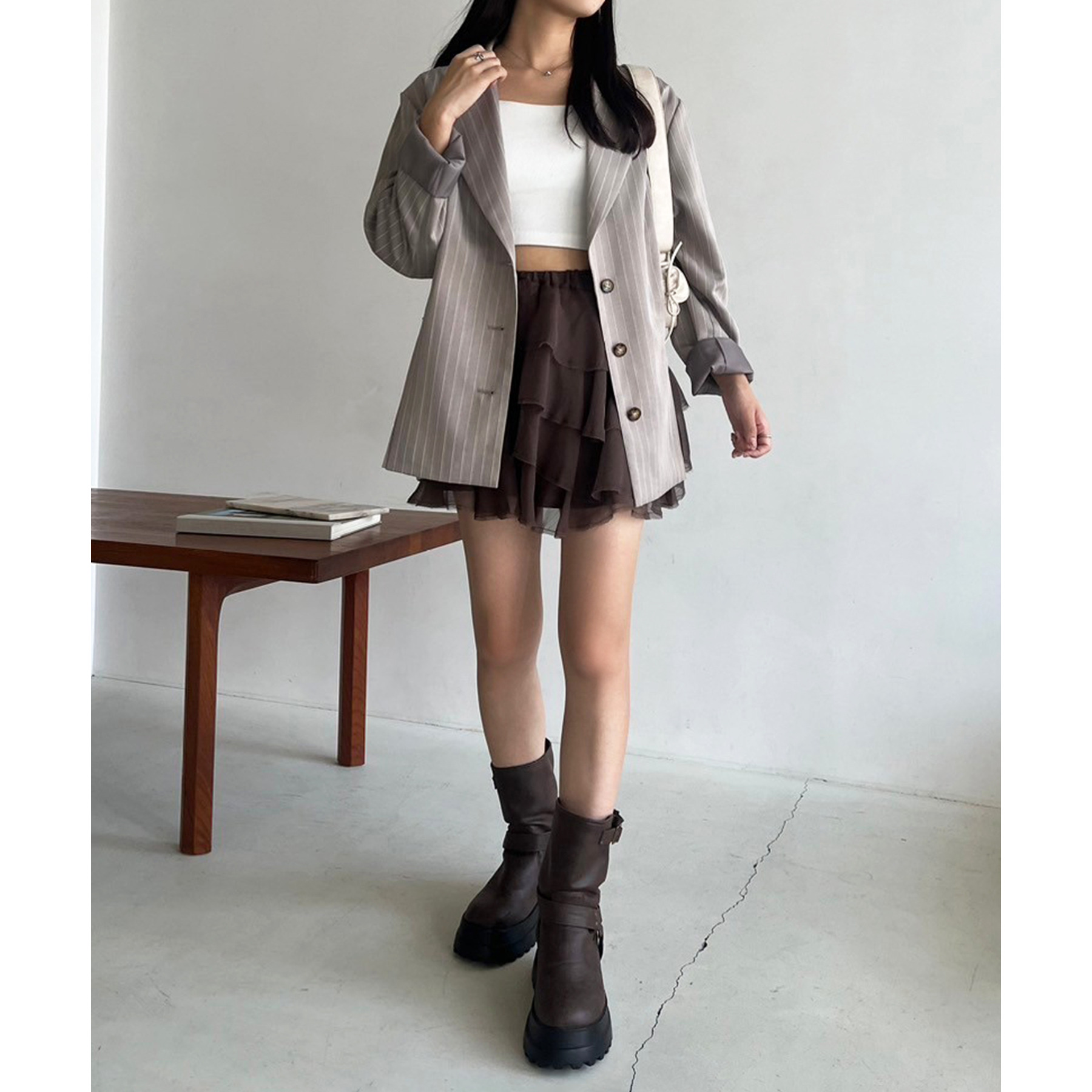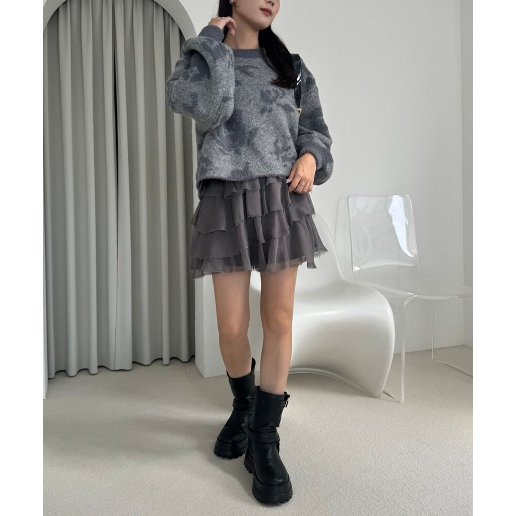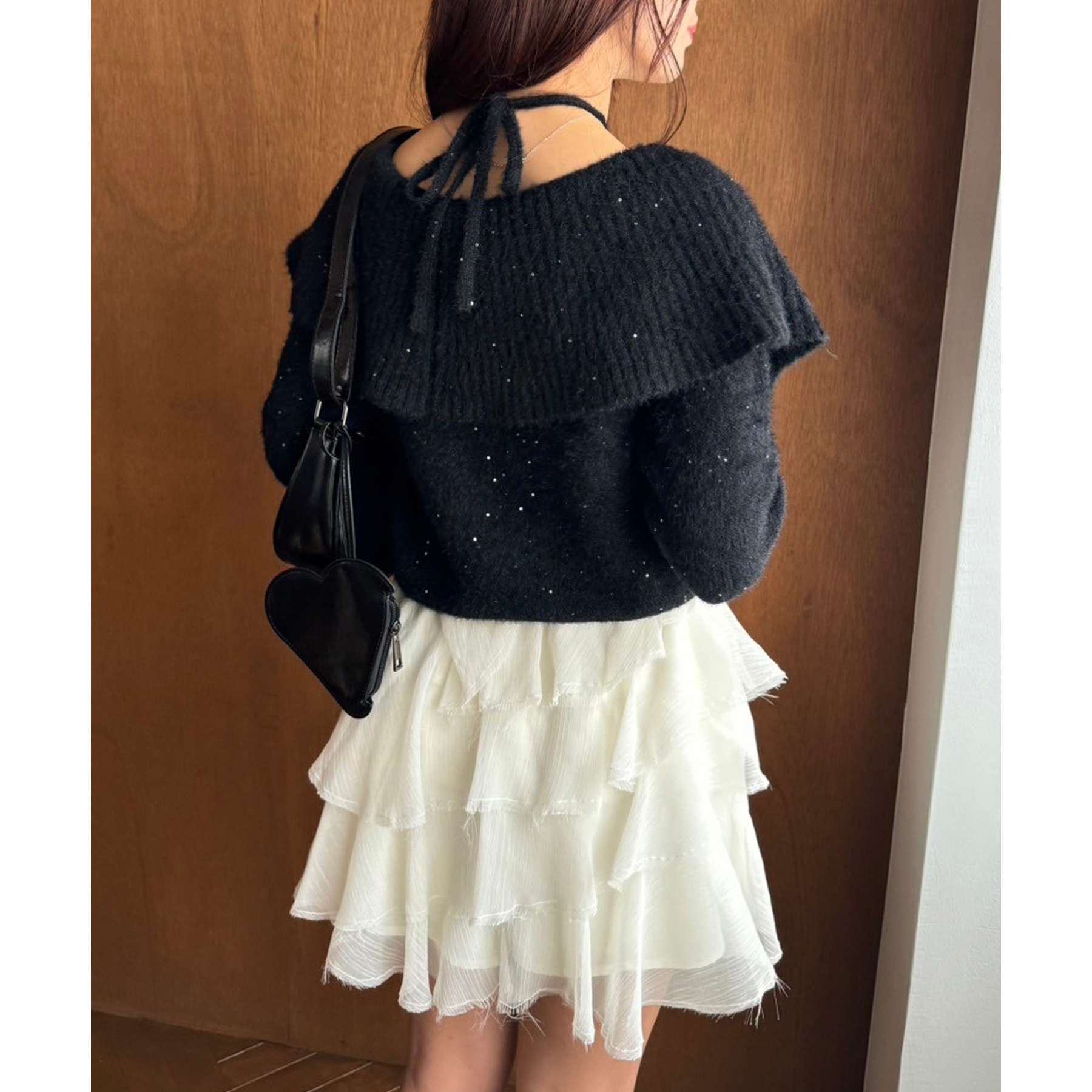 1枚で主役級のフリルスカートなのでシンプルなトップスと合わせていただくのがオススメです。