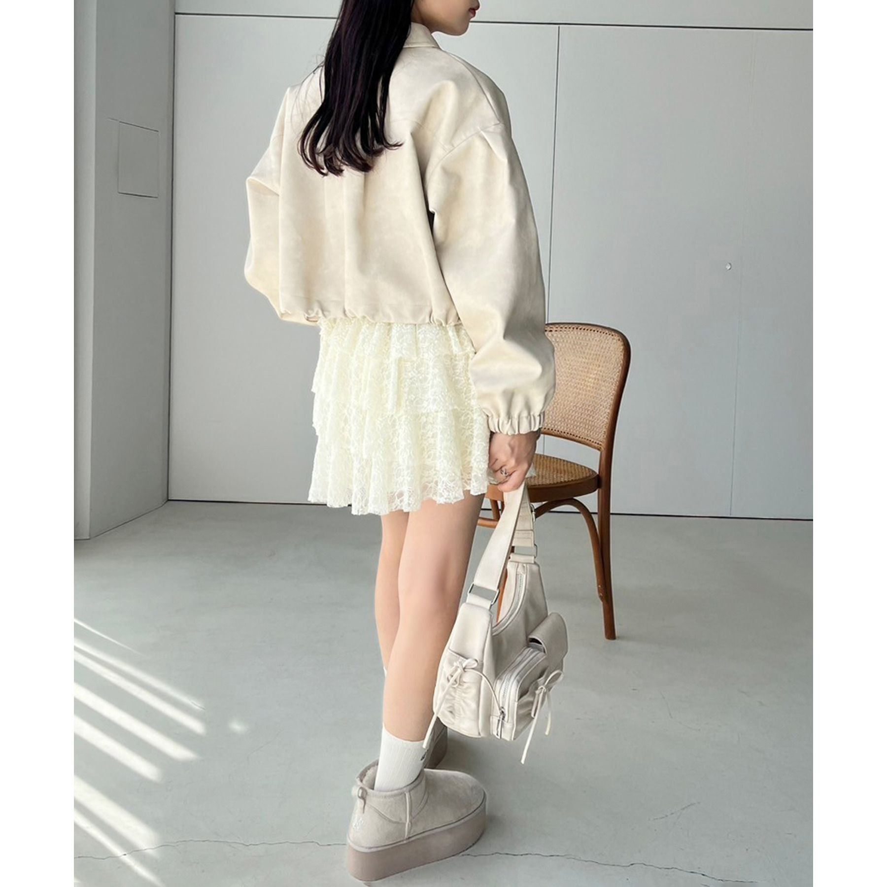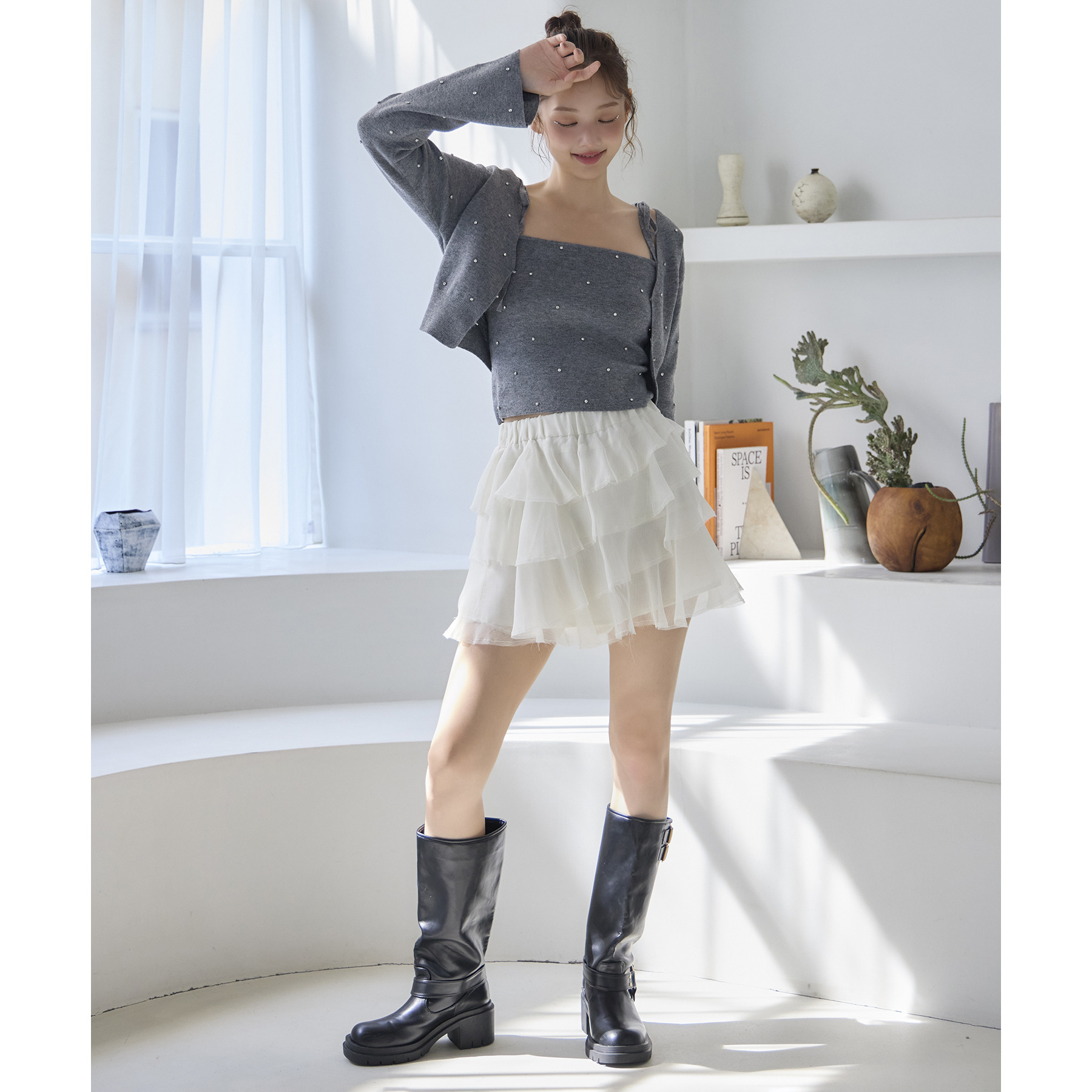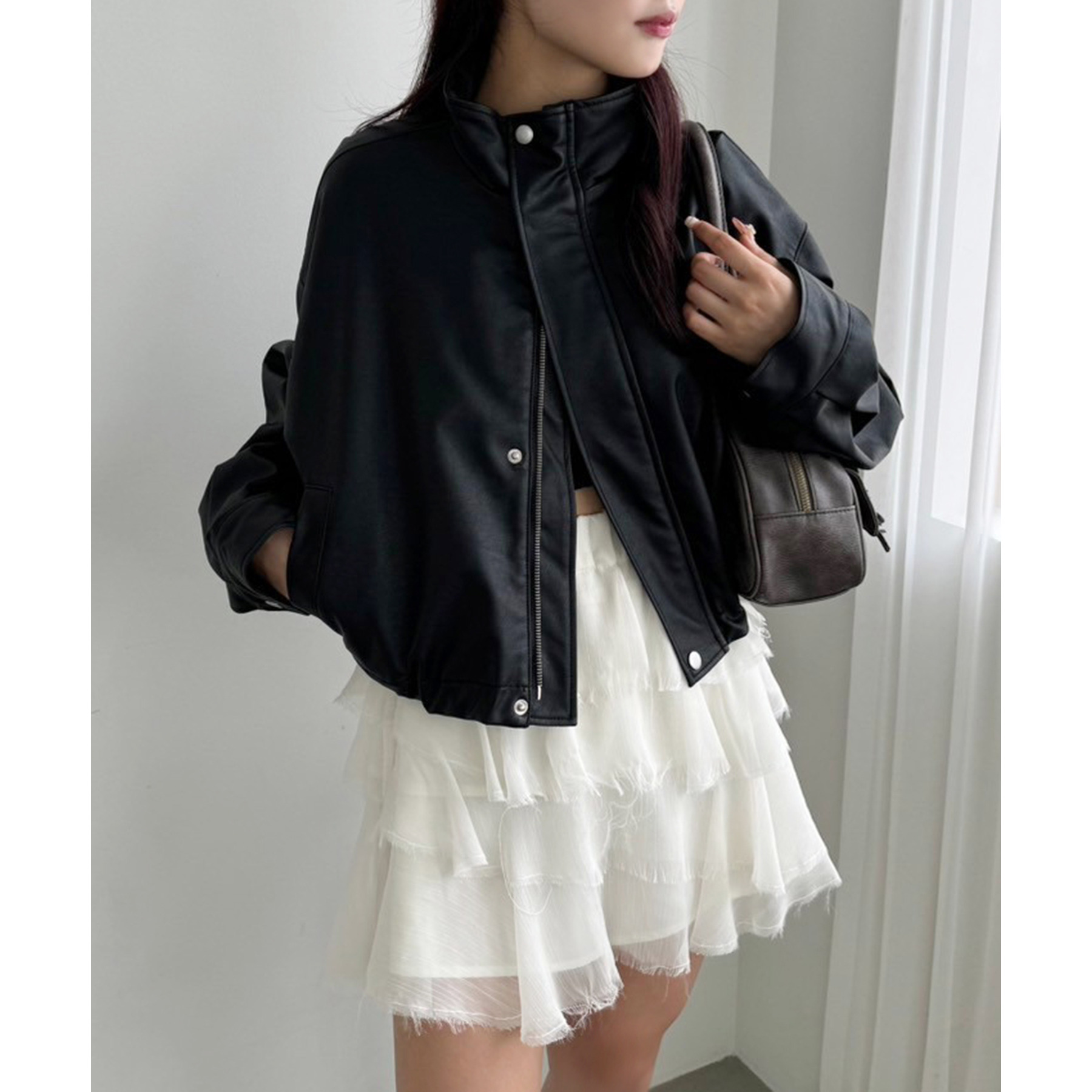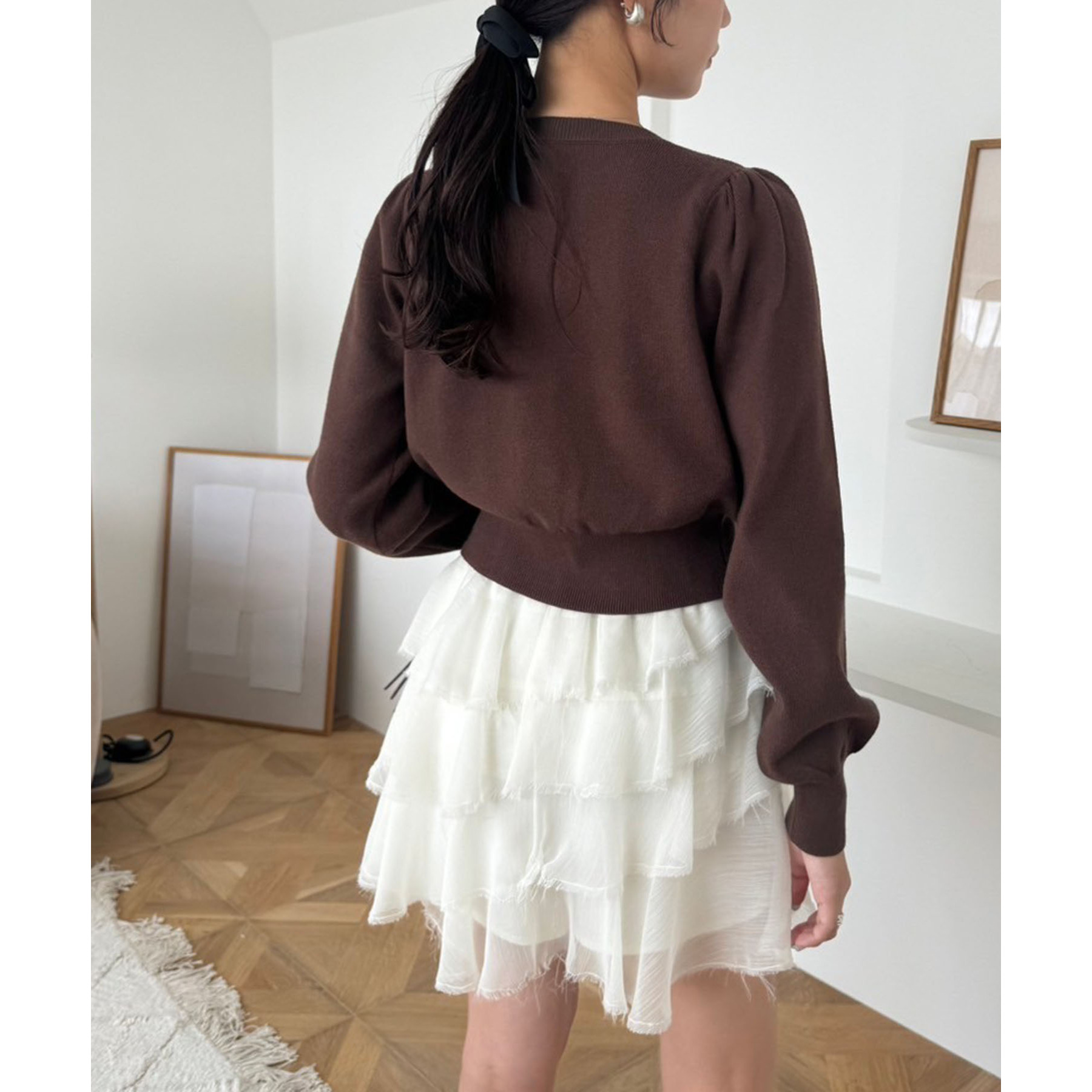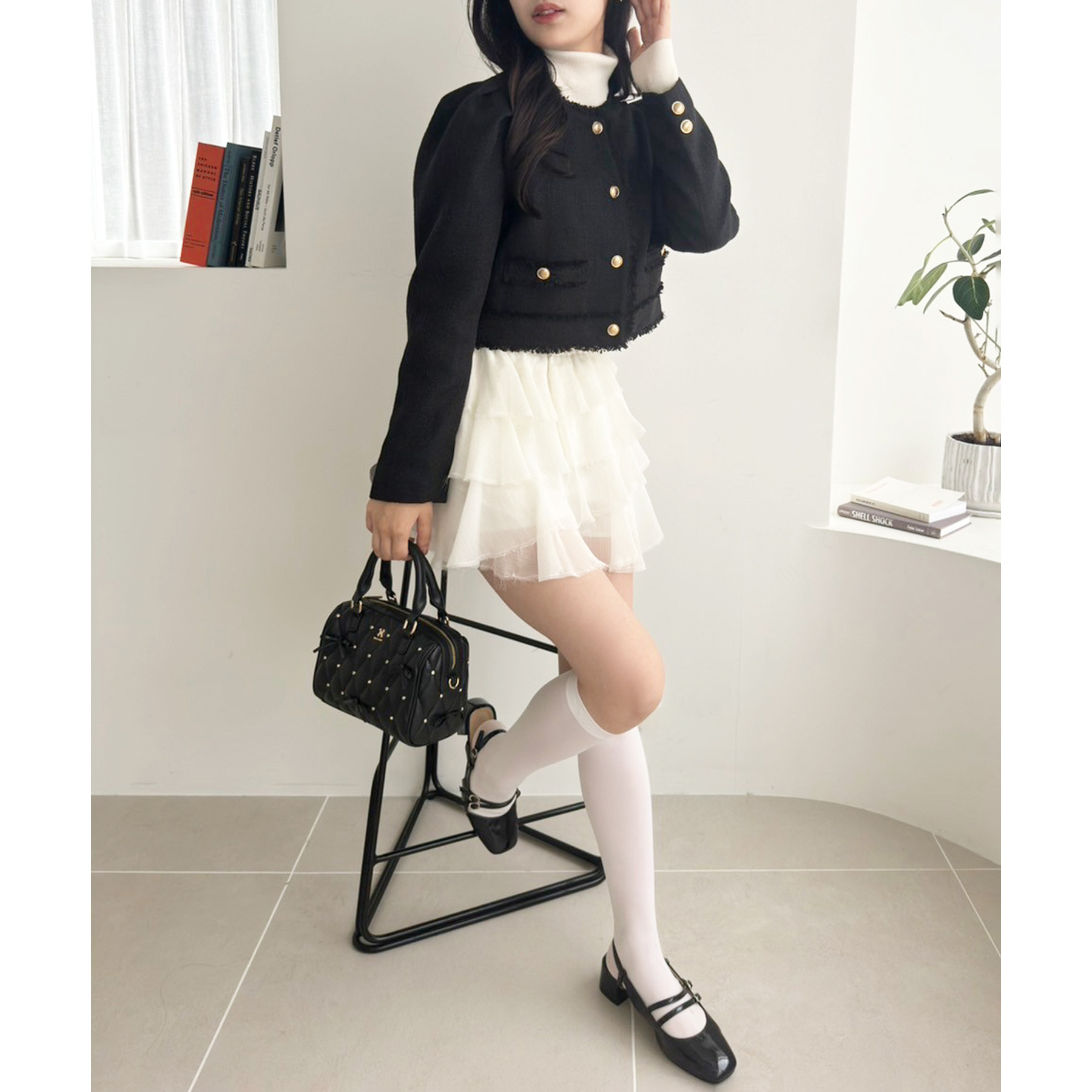 1枚で主役級のフリルスカートなのでシンプルなトップスと合わせていただくのがオススメです。