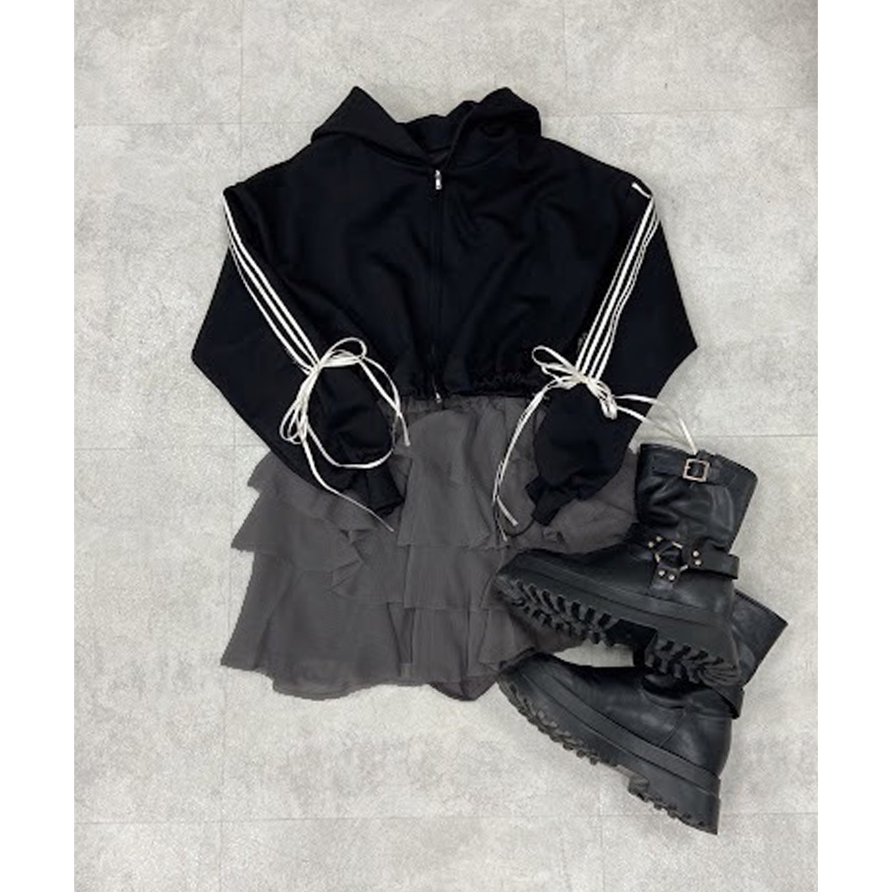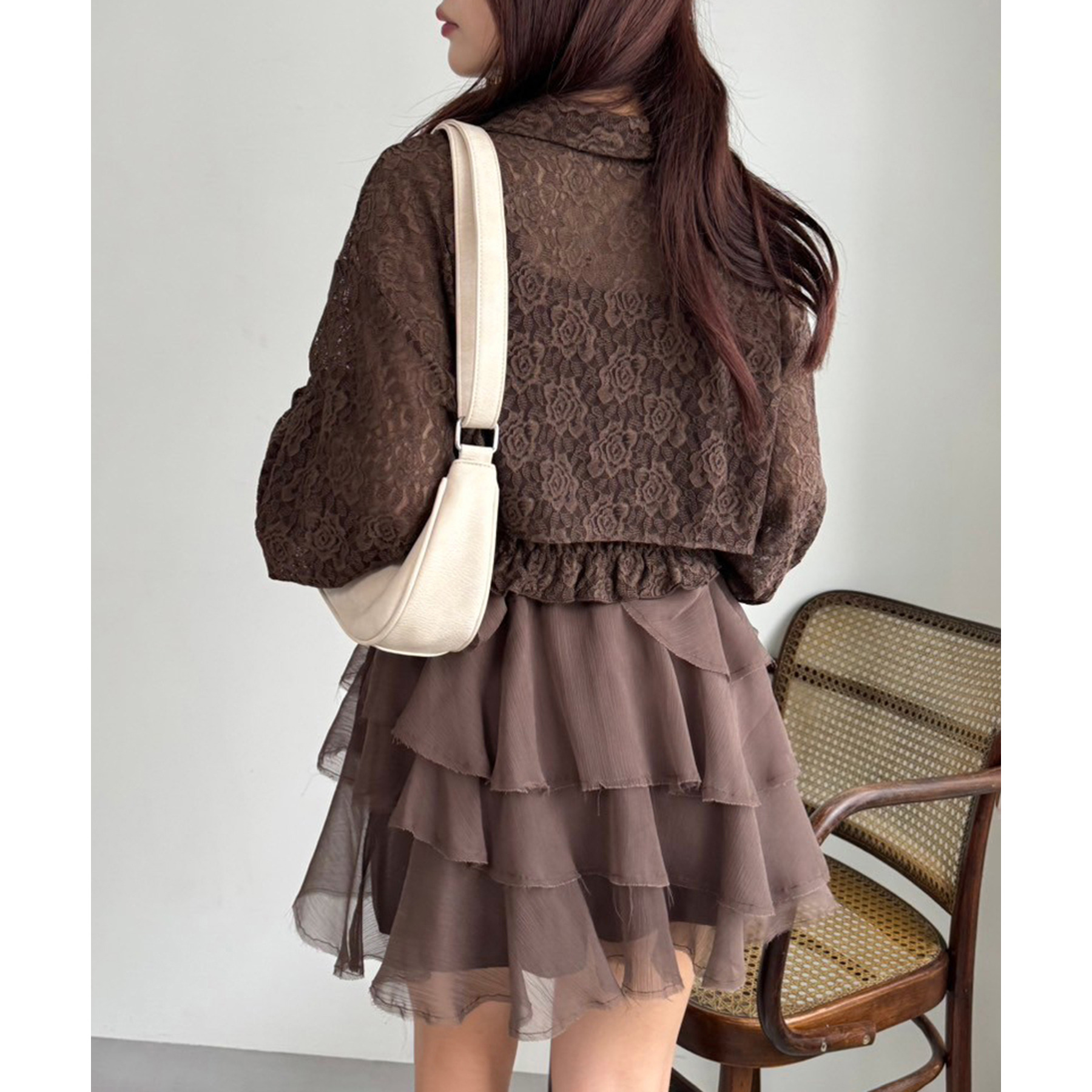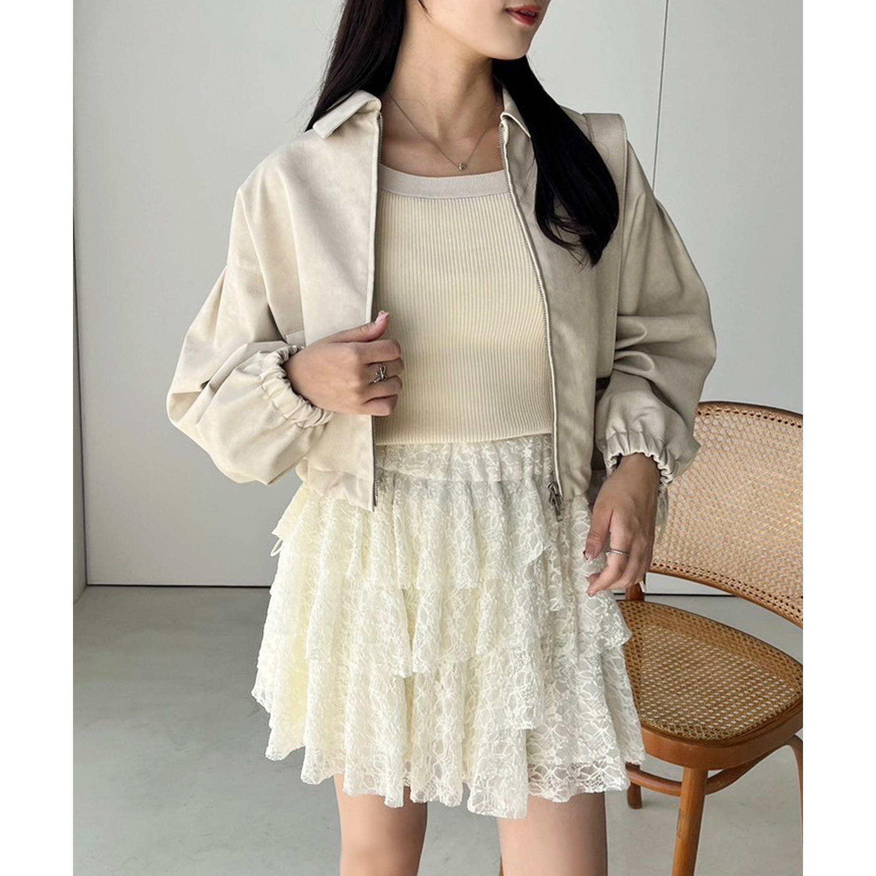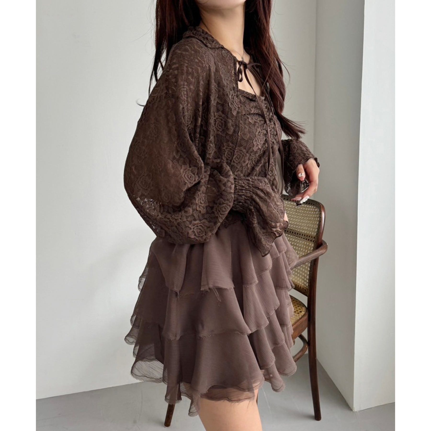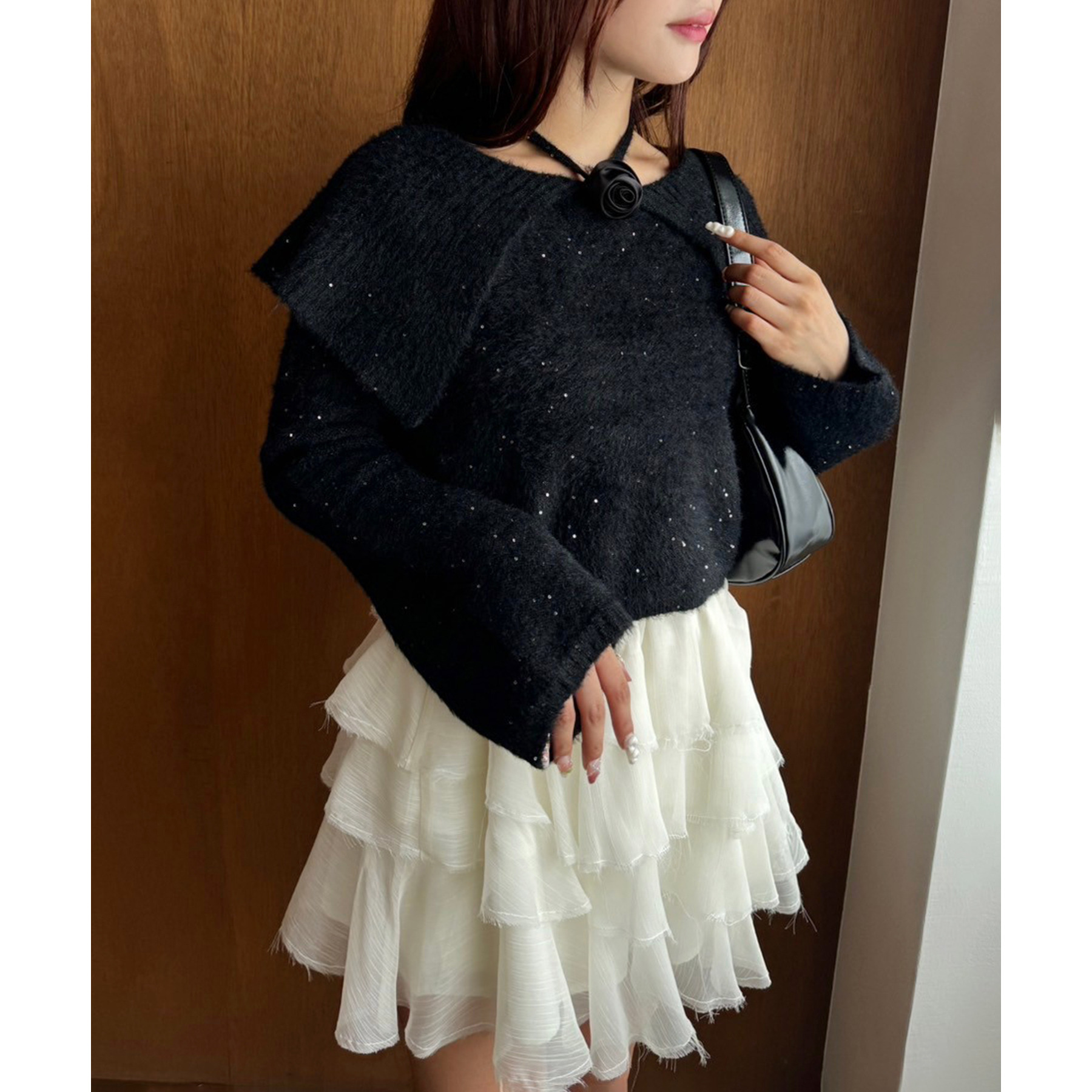 1枚で主役級のフリルスカートなのでシンプルなトップスと合わせていただくのがオススメです。