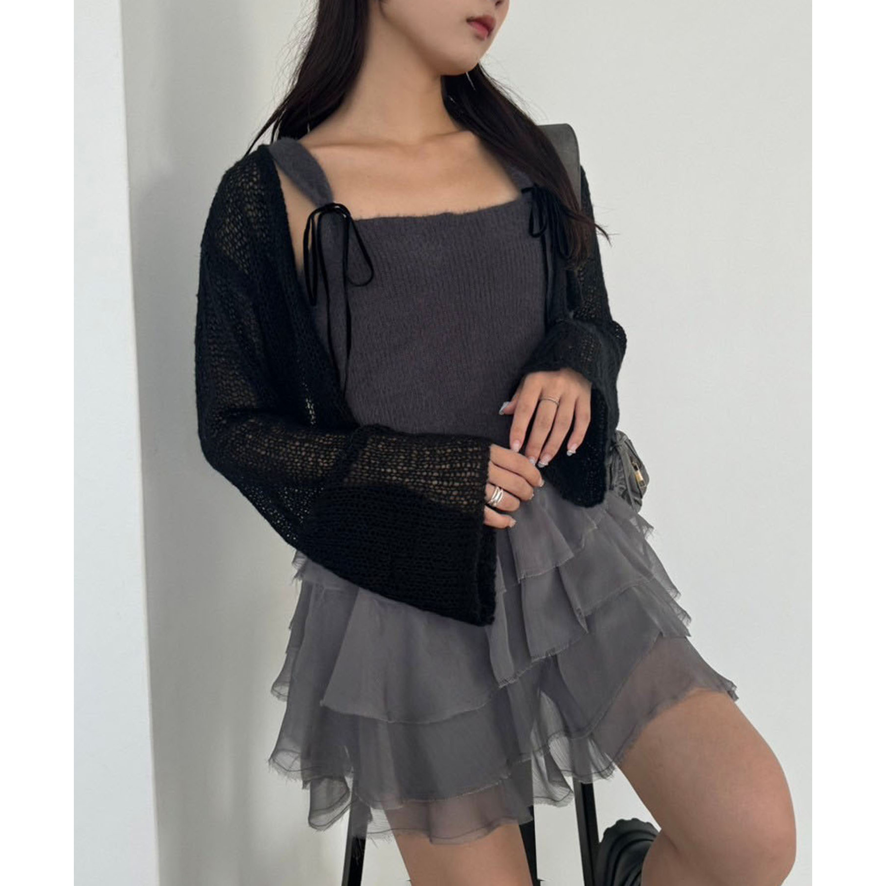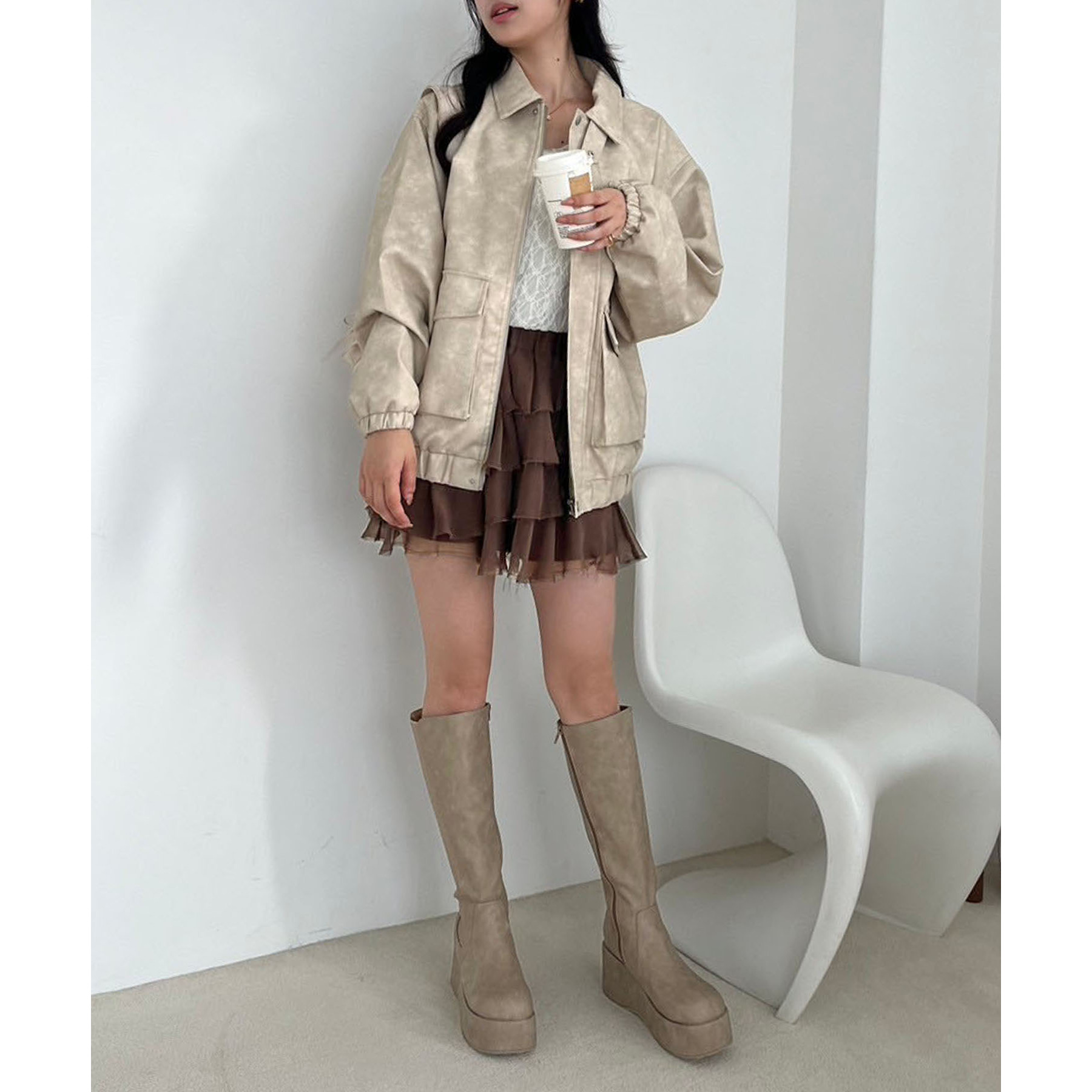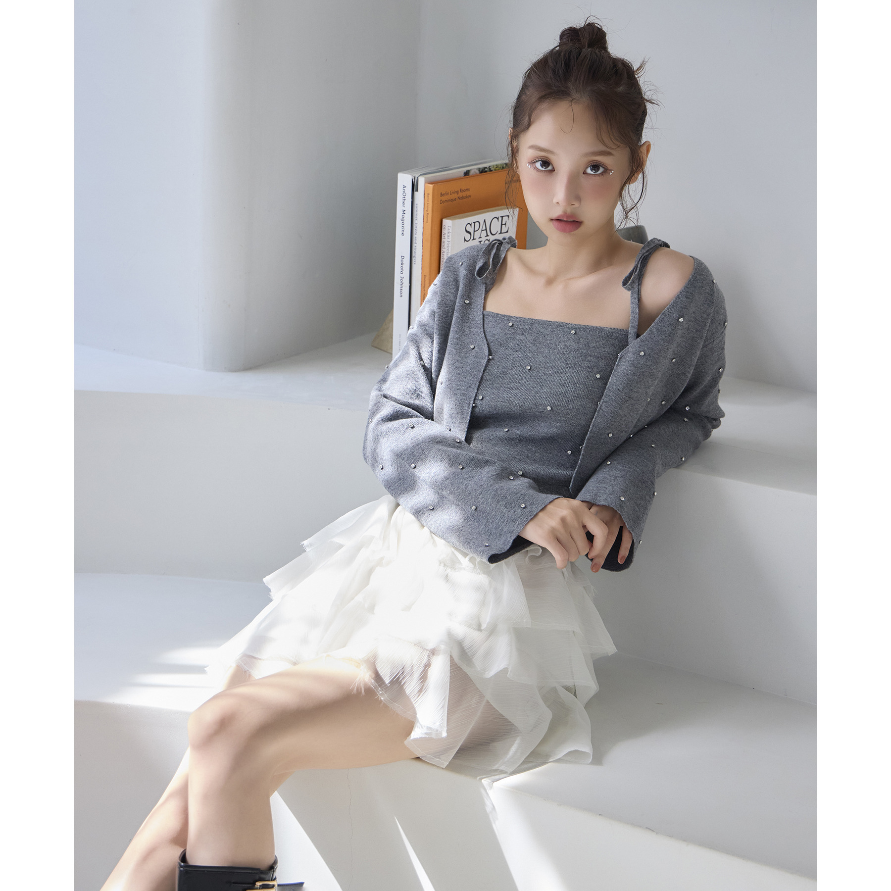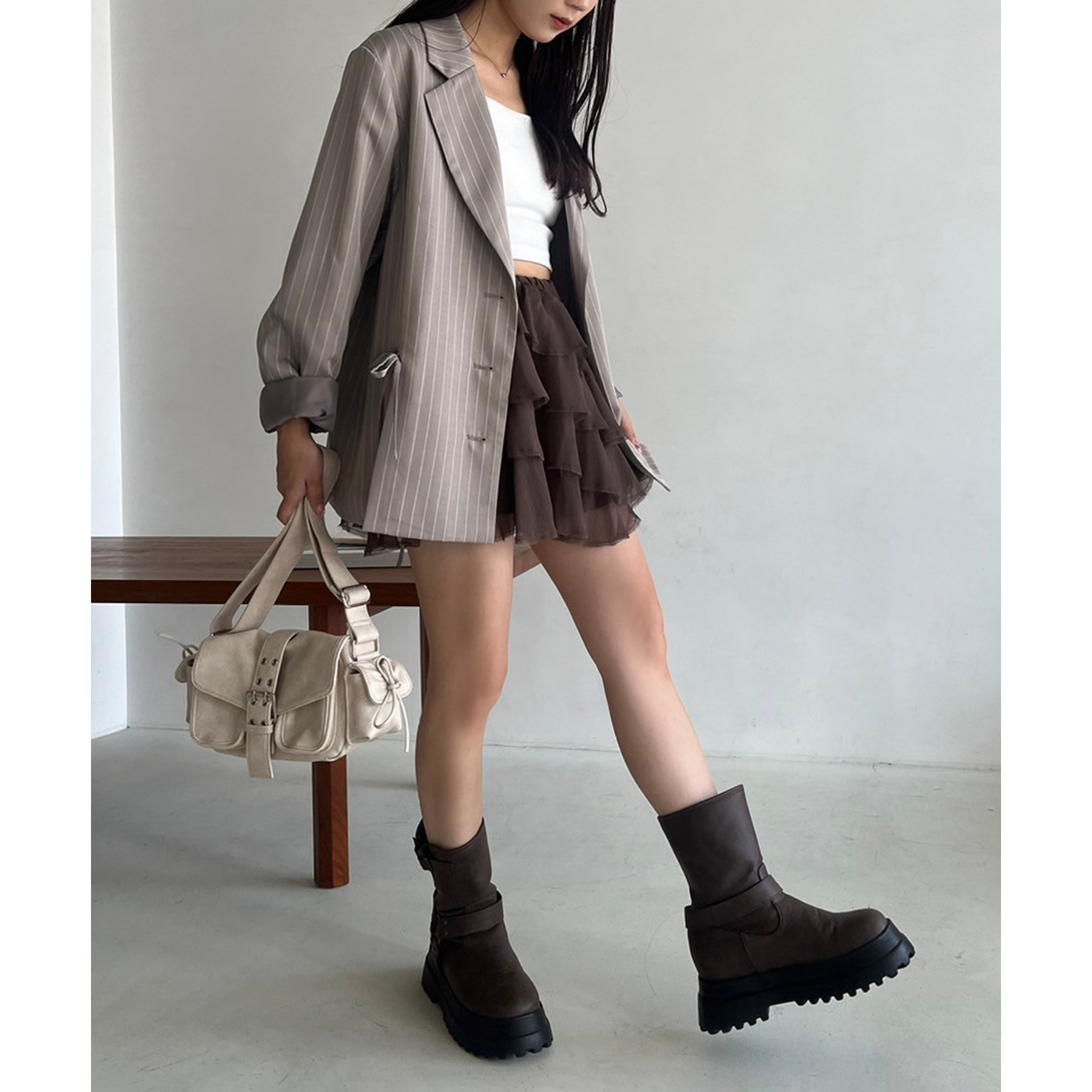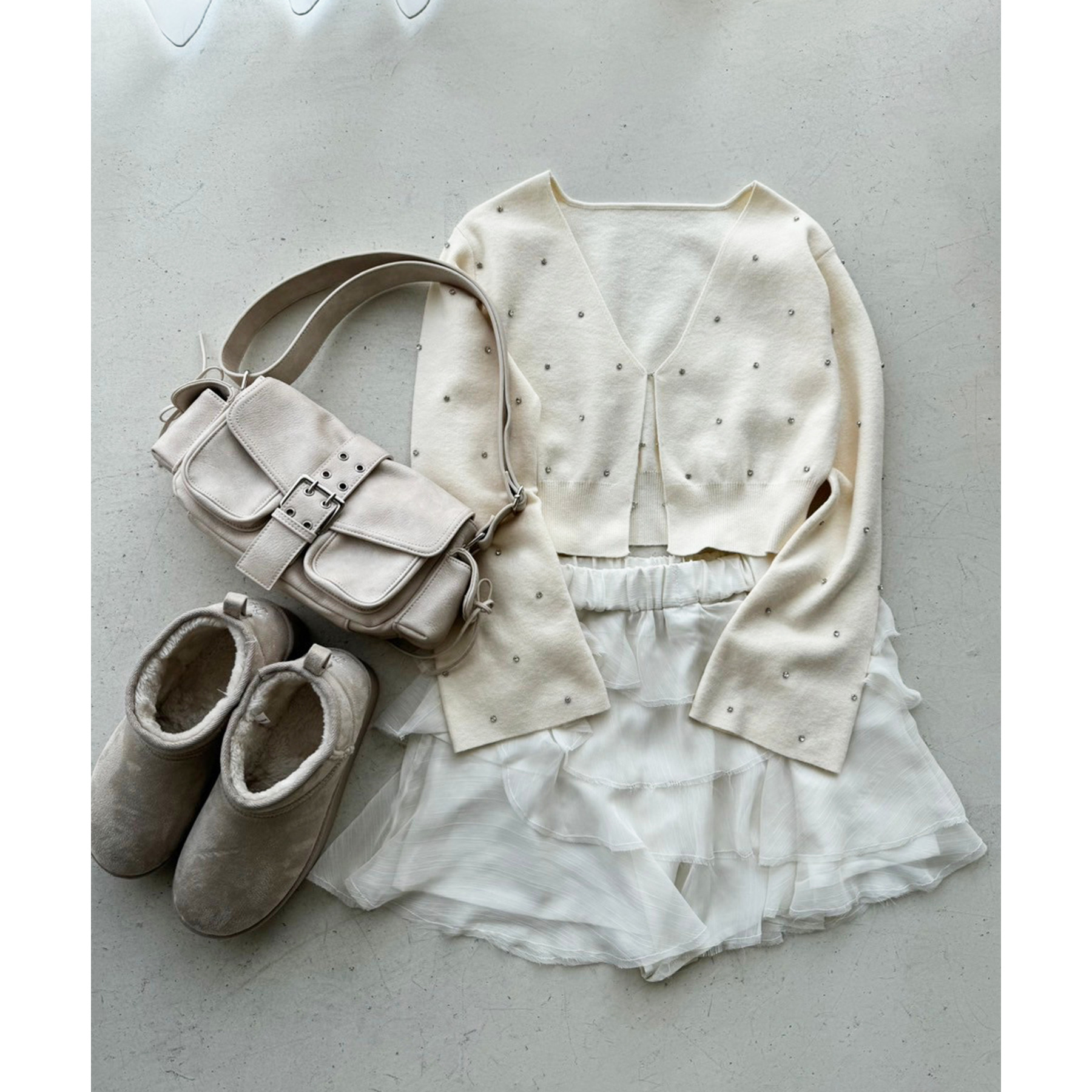 1枚で主役級のフリルスカートなのでシンプルなトップスと合わせていただくのがオススメです。