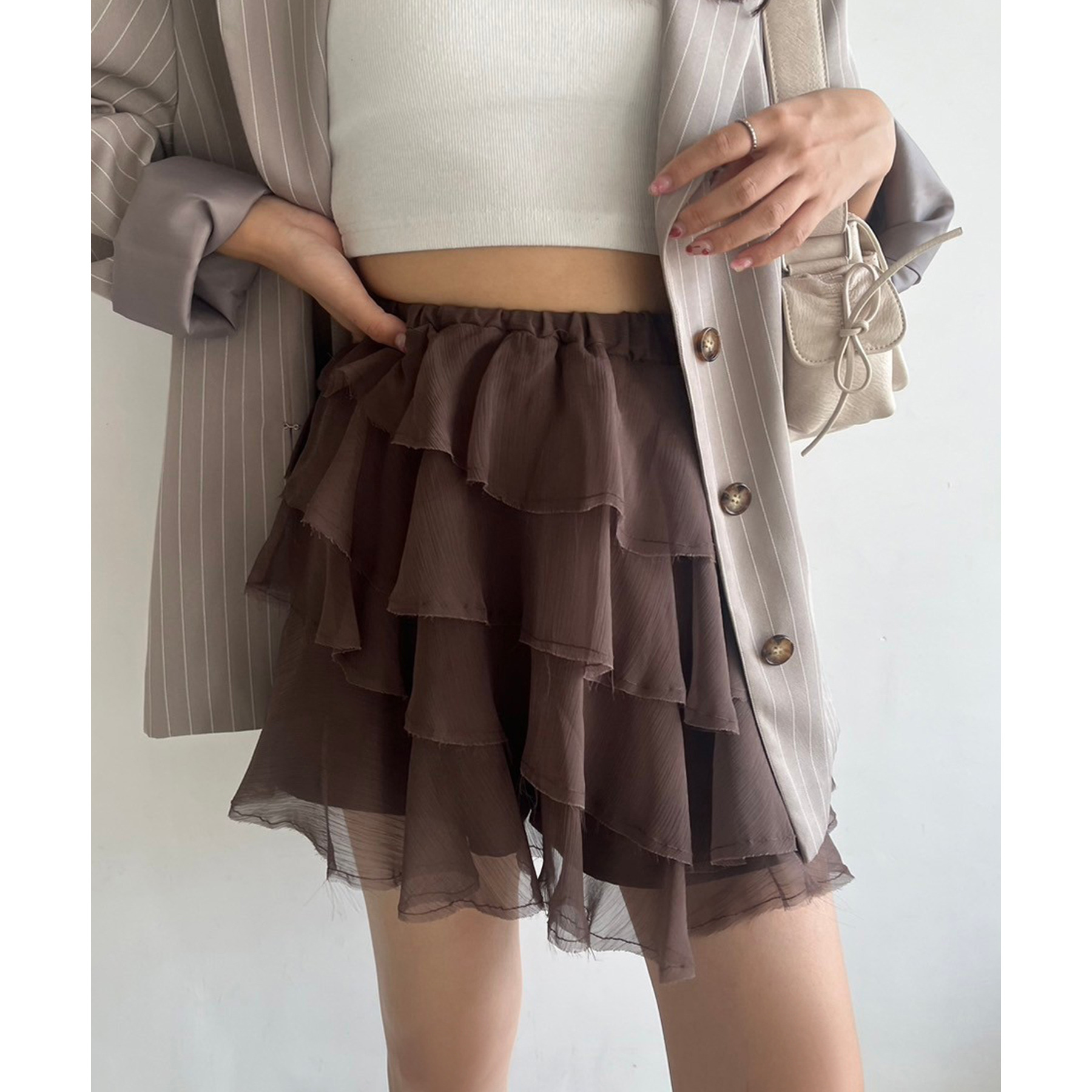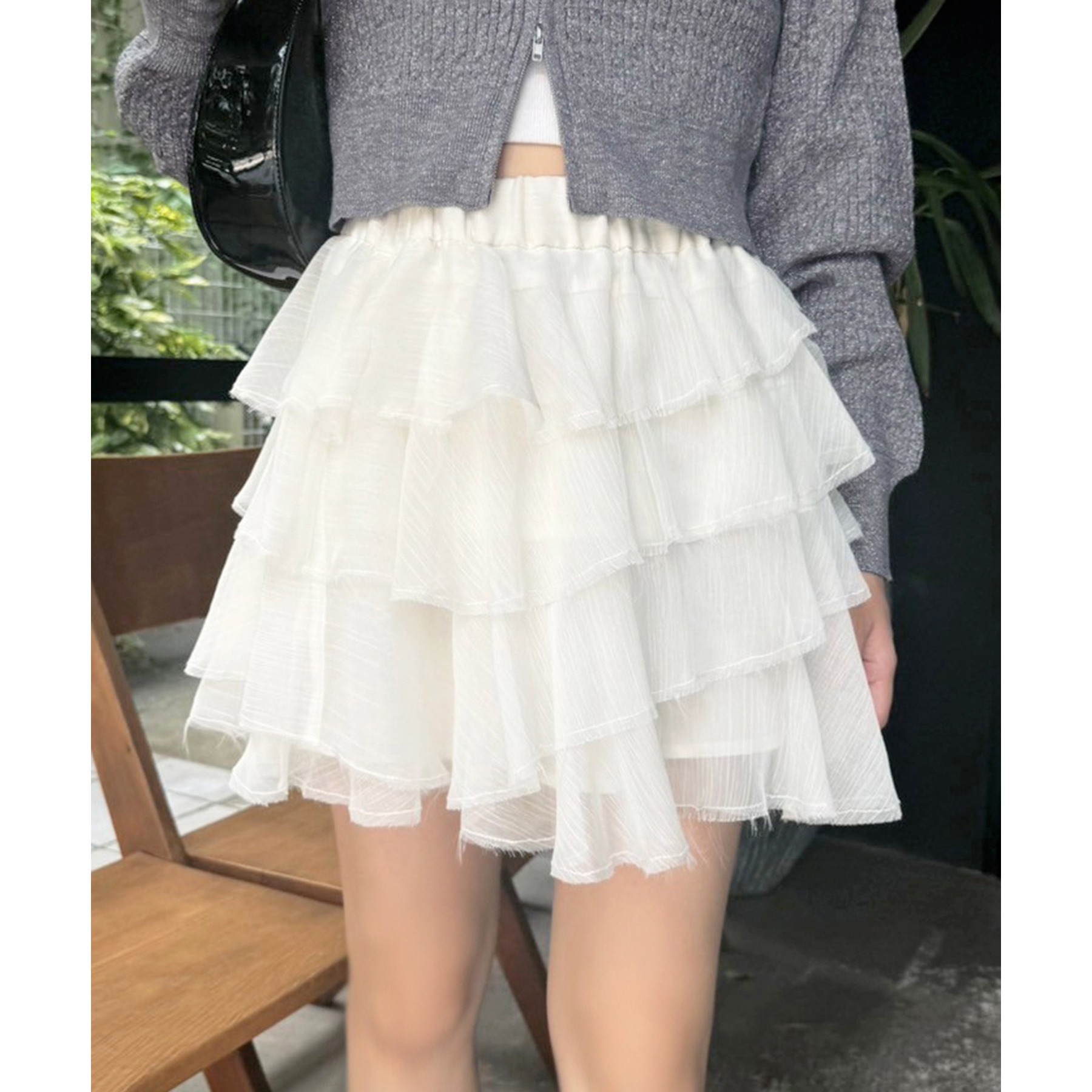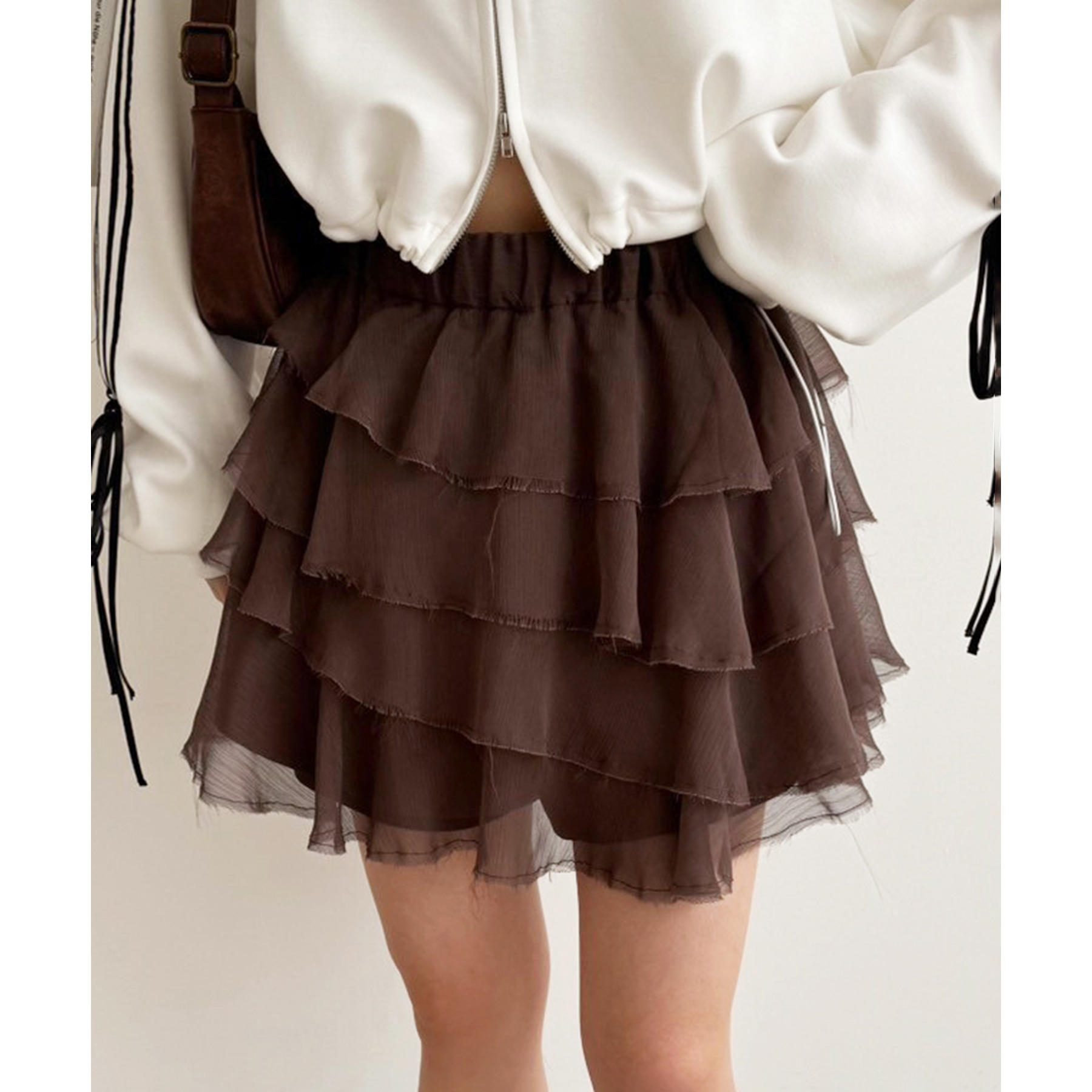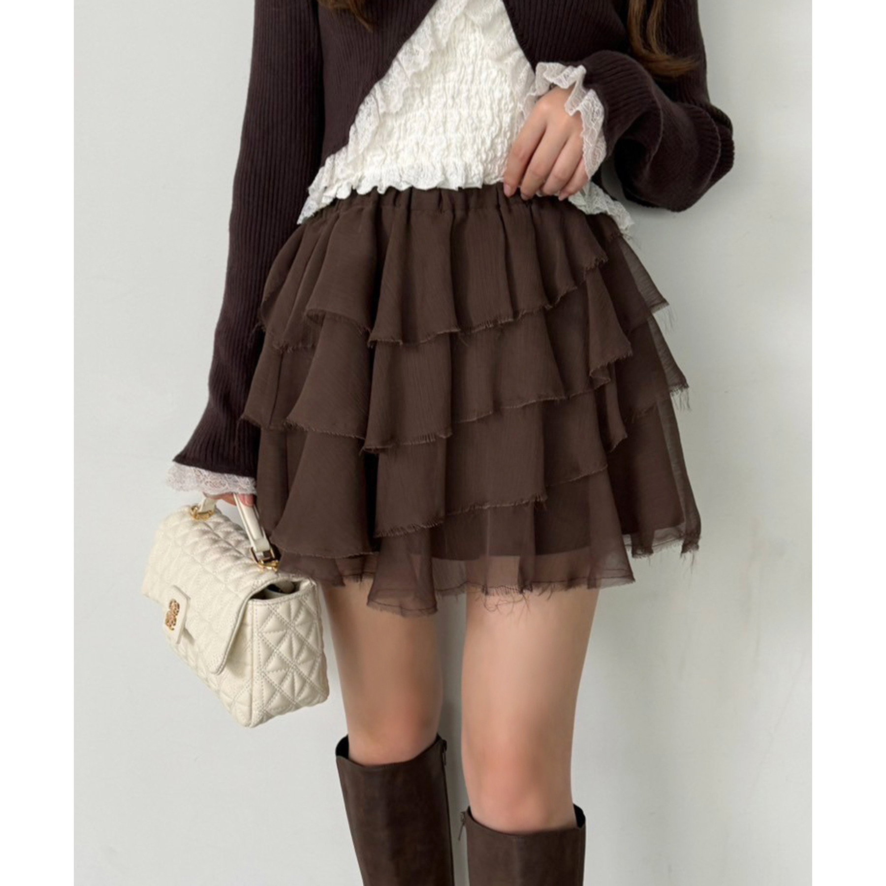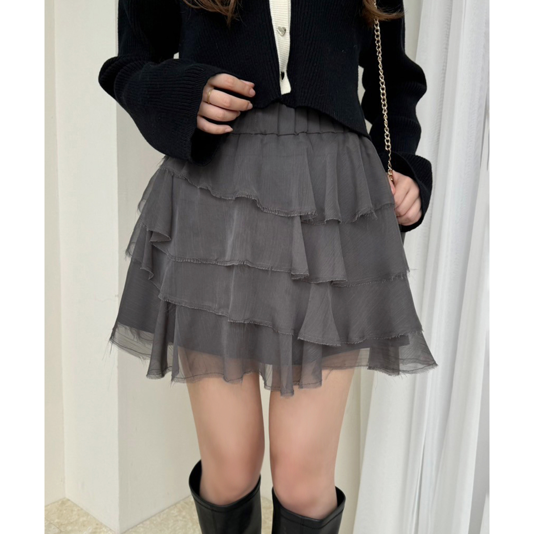 ふわっと広がるフリルティアードがかわいい韓国風スカート