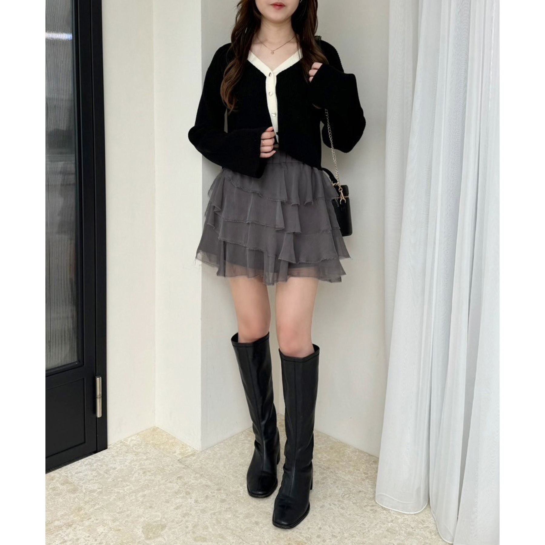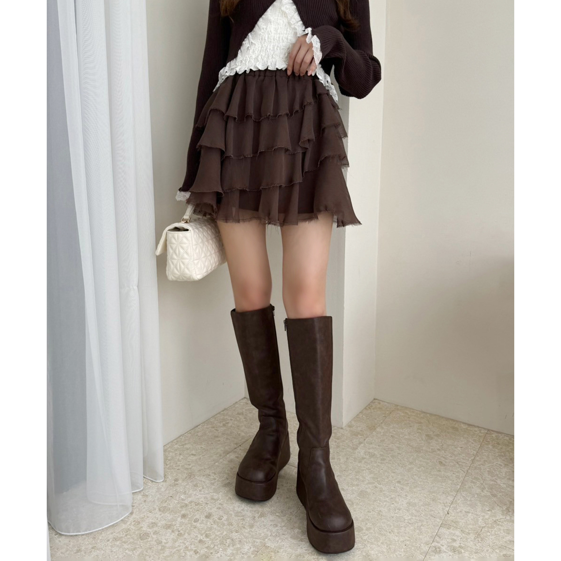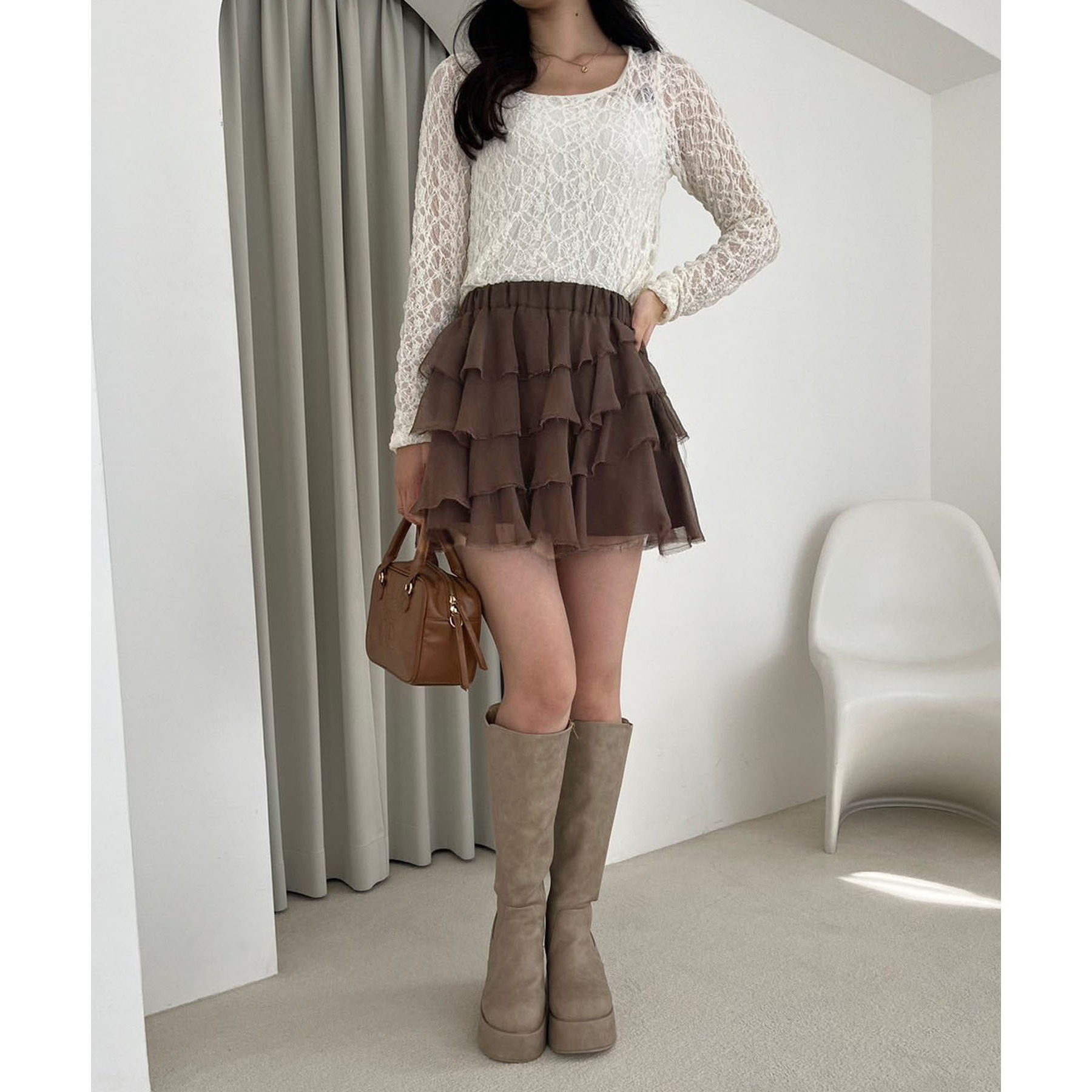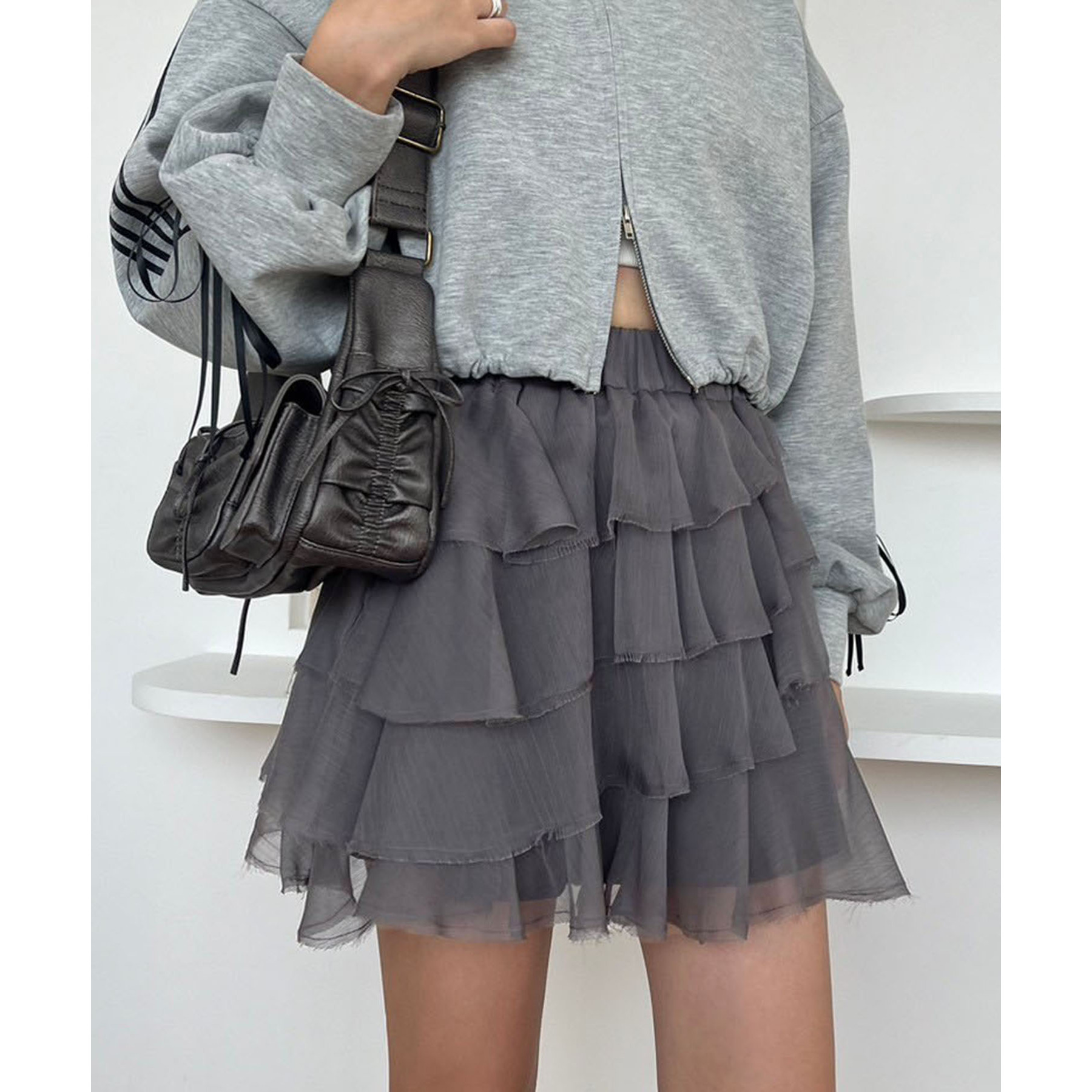 ふわっと広がるフリルティアードがかわいい韓国風スカート