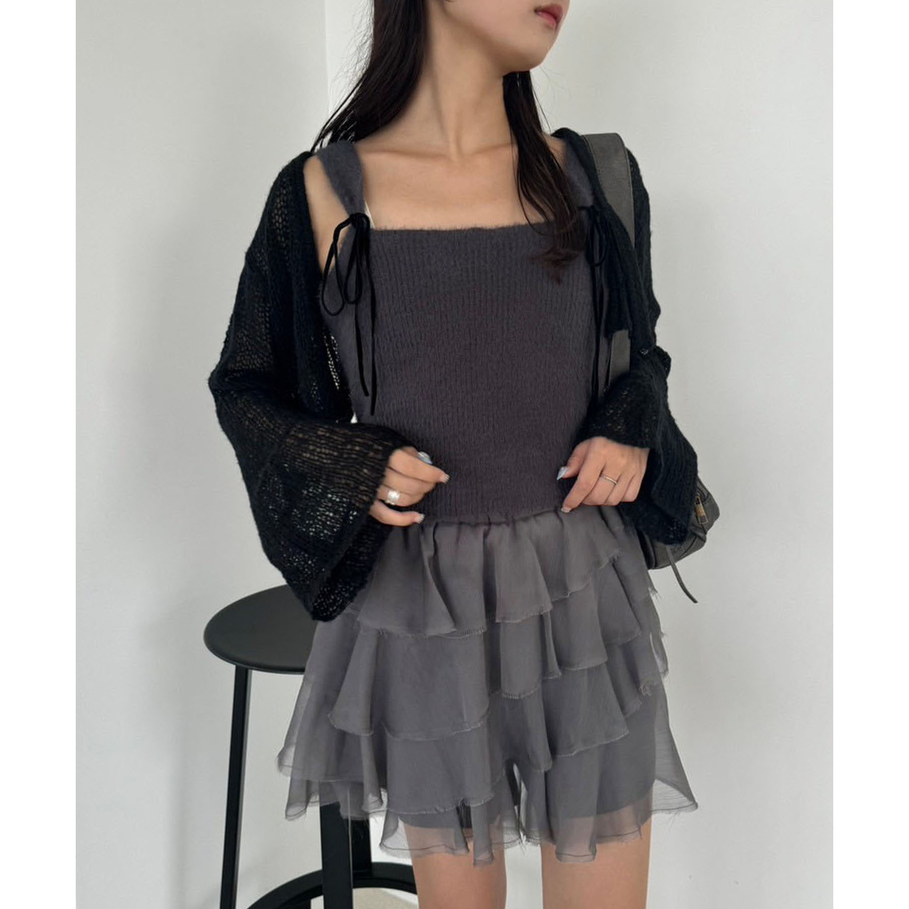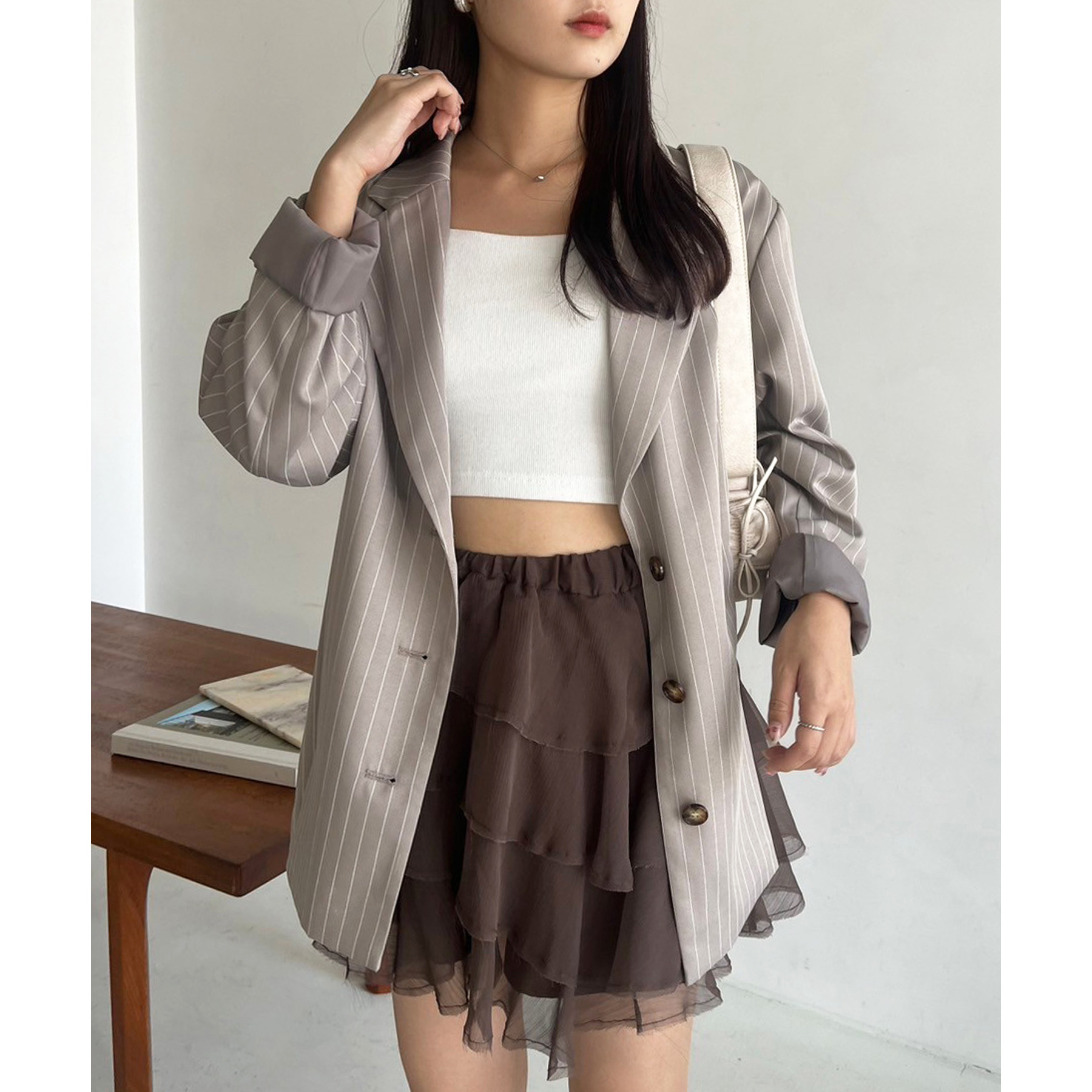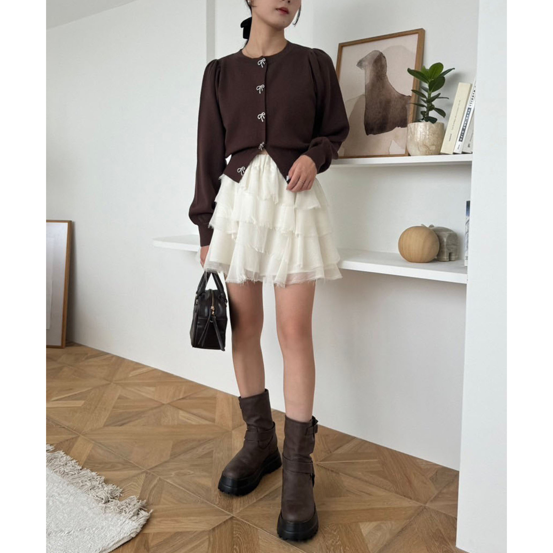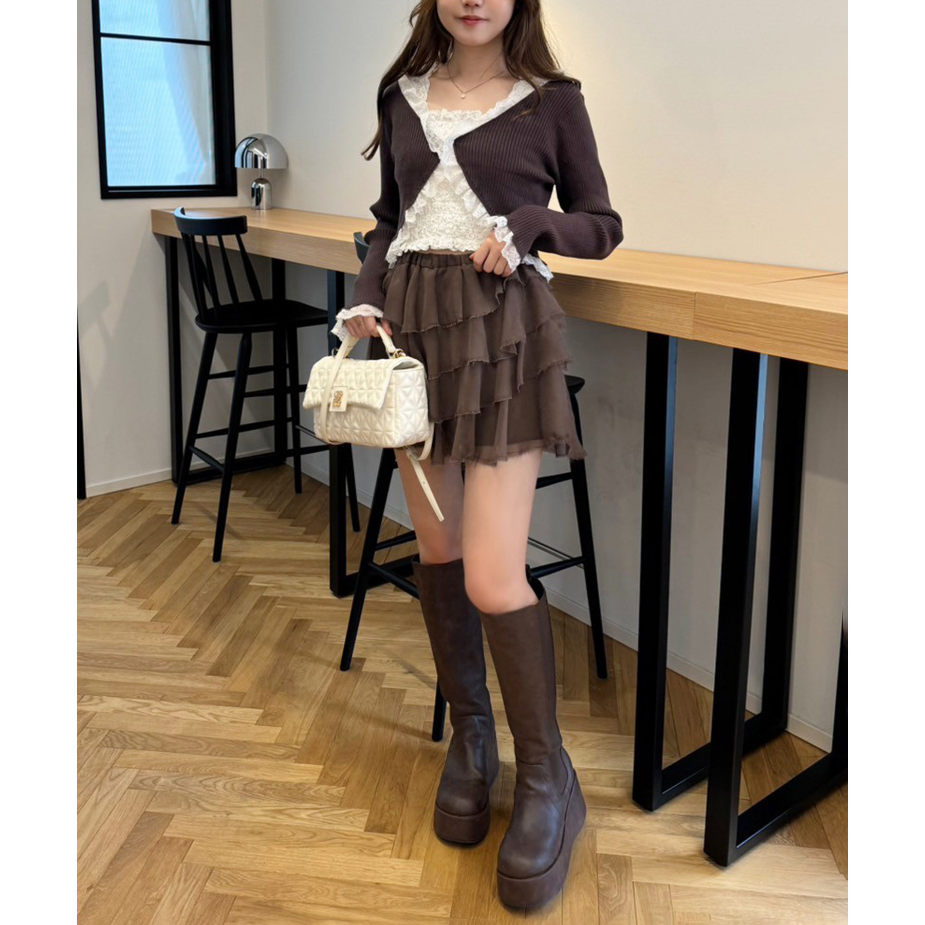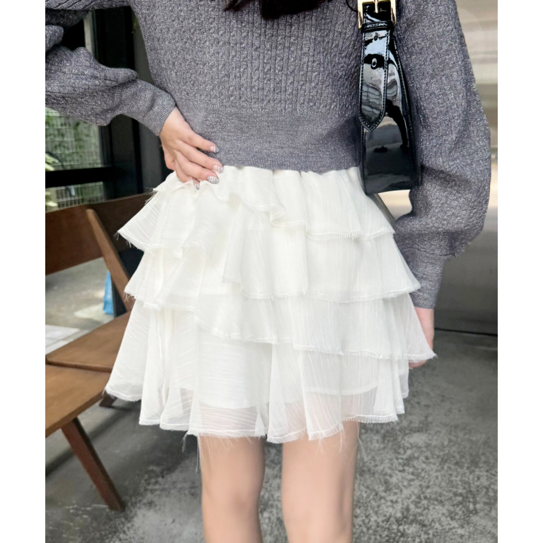 ふわっと広がるフリルティアードがかわいい韓国風スカート