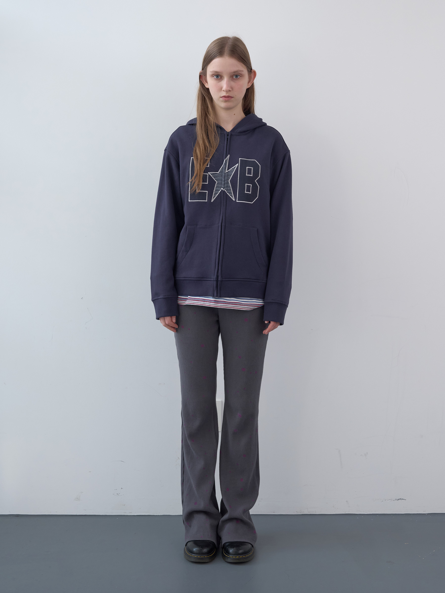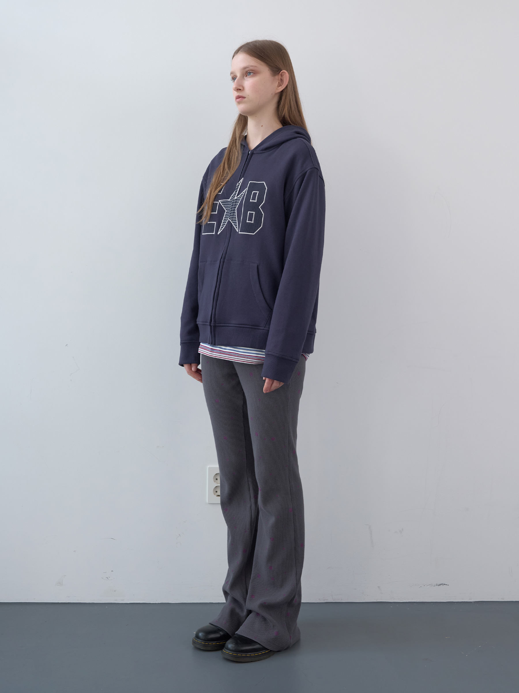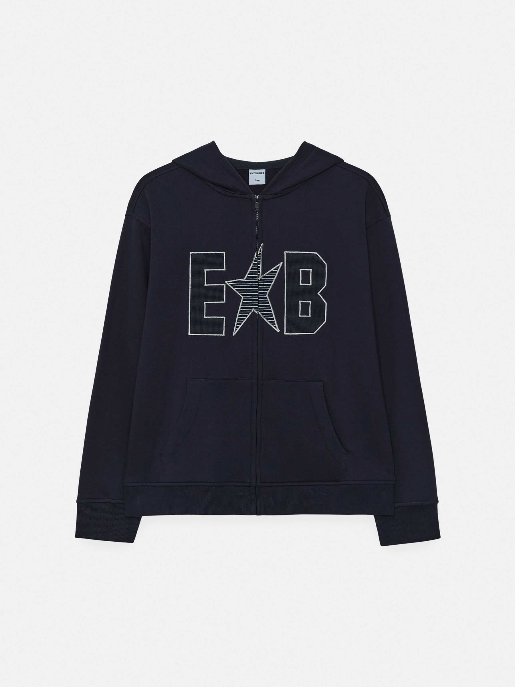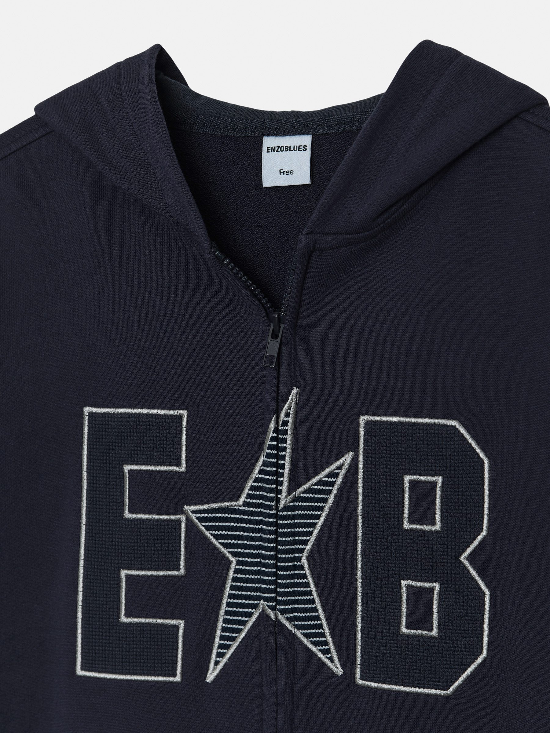 Waffle Patch Zip-Up Hoodie (Navy)