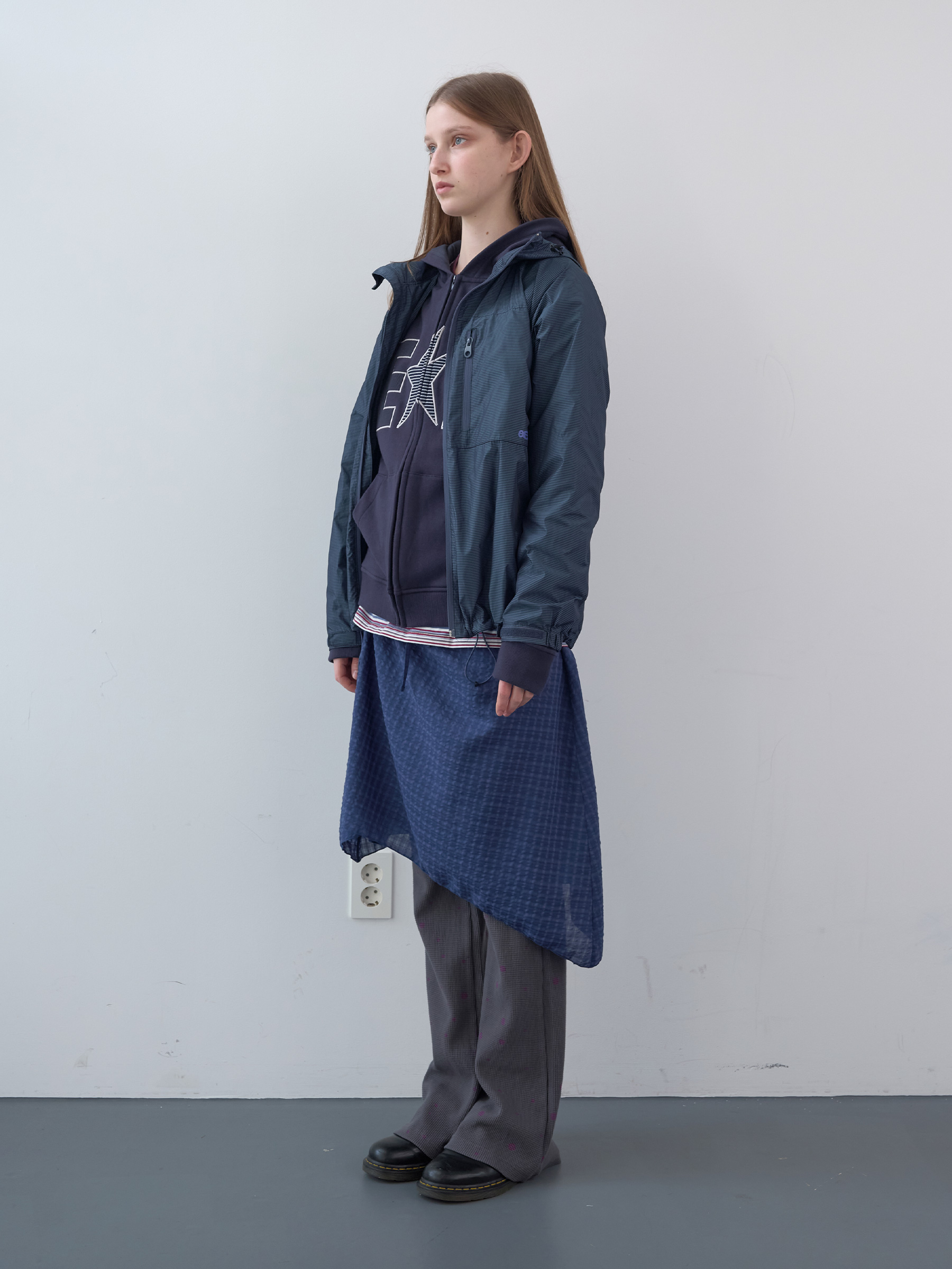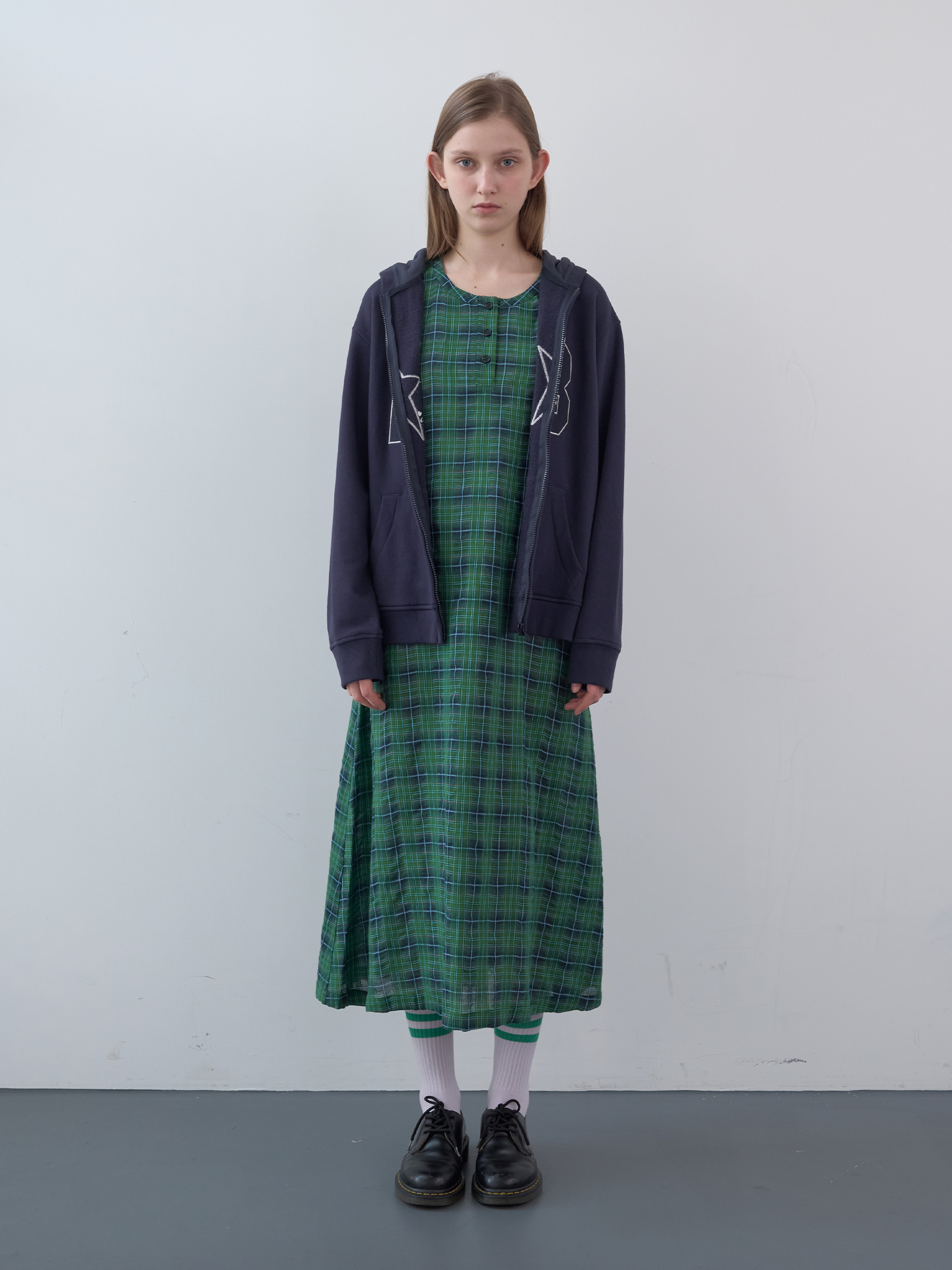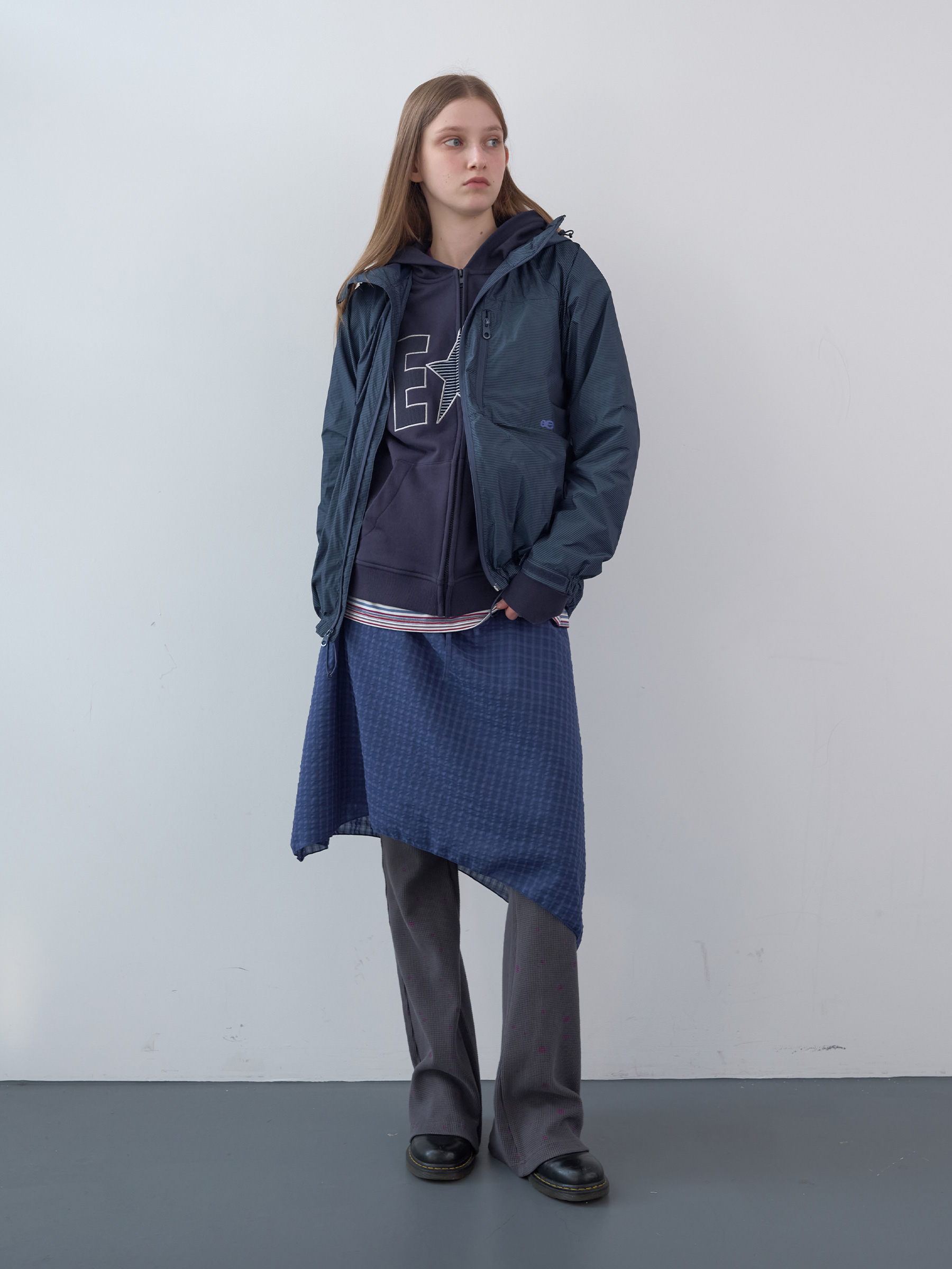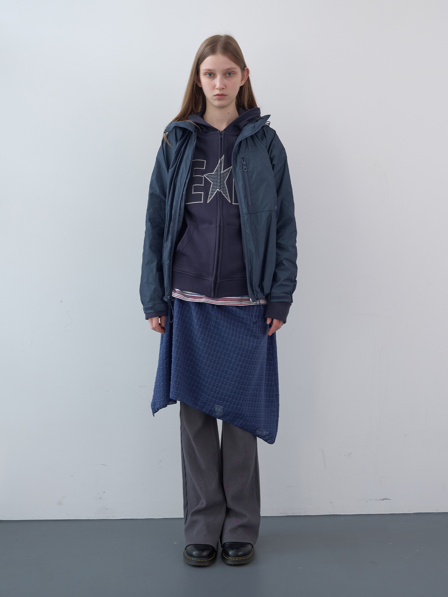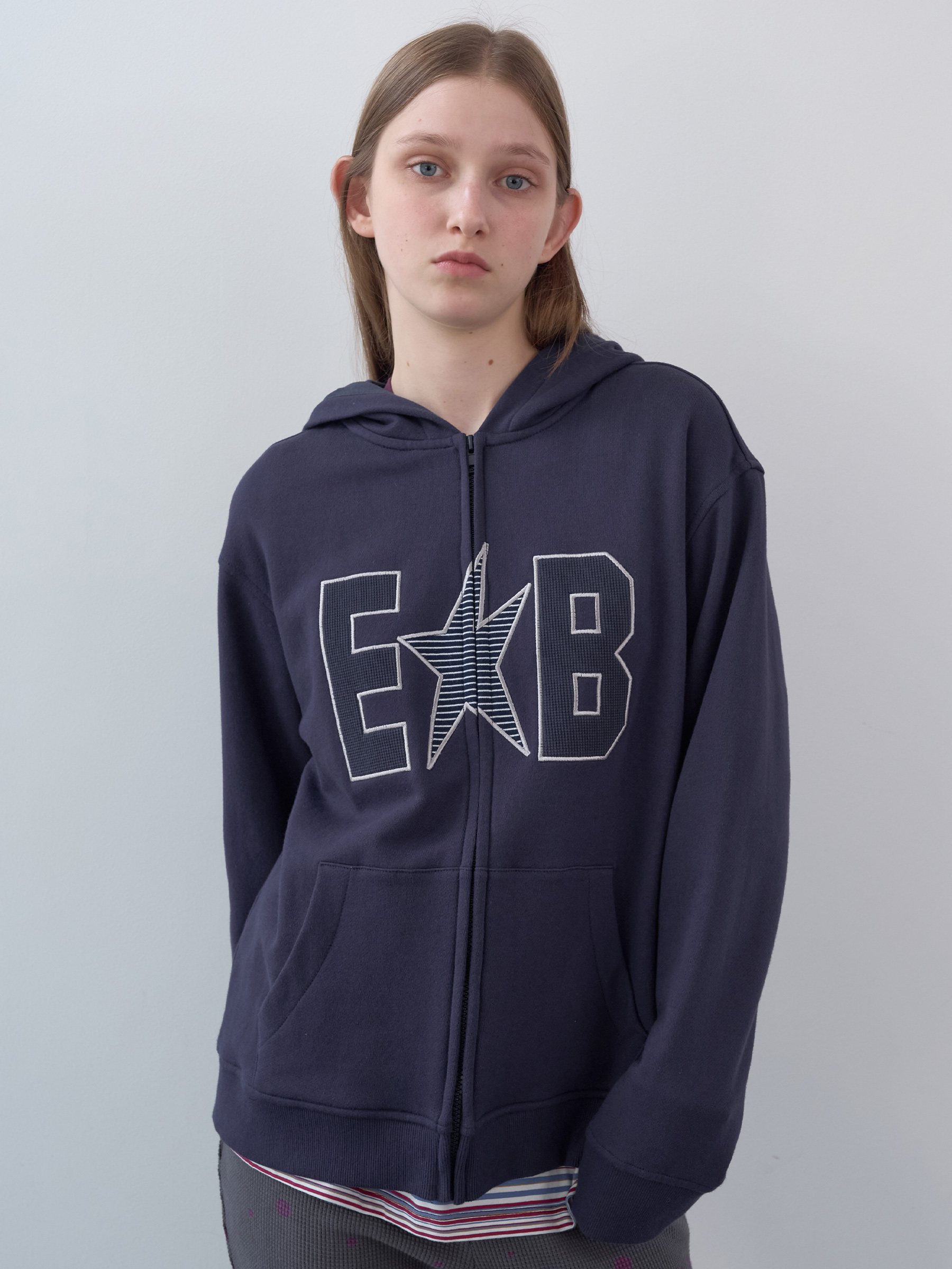 Waffle Patch Zip-Up Hoodie (Navy)