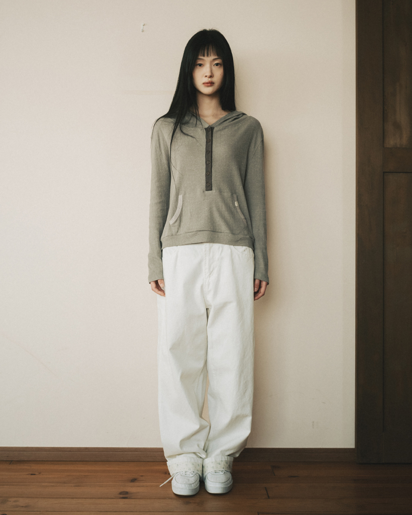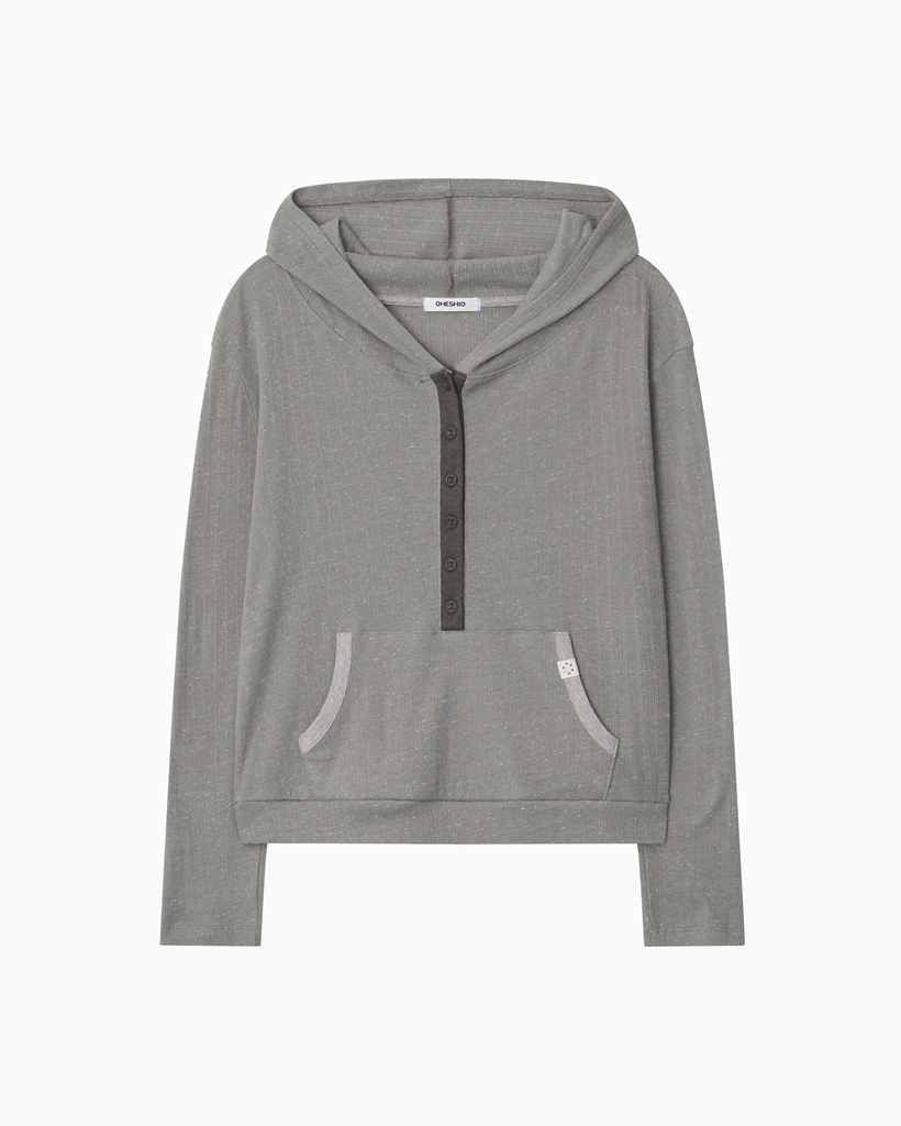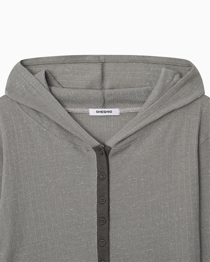 BUTTON HOODED LONG SLEEVE, KHAKI