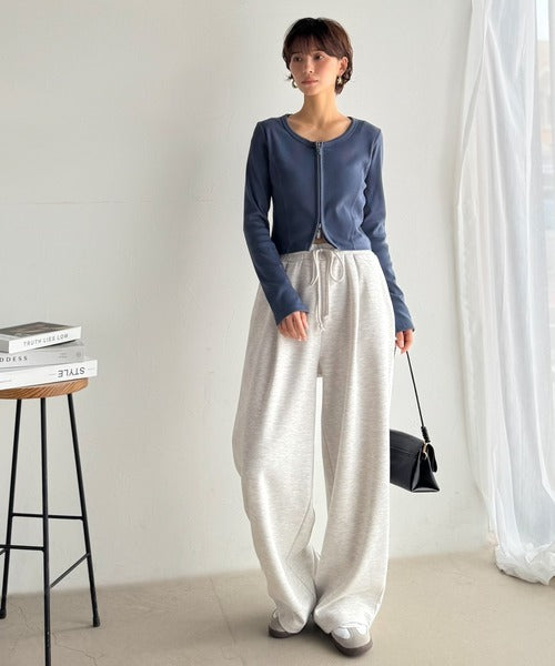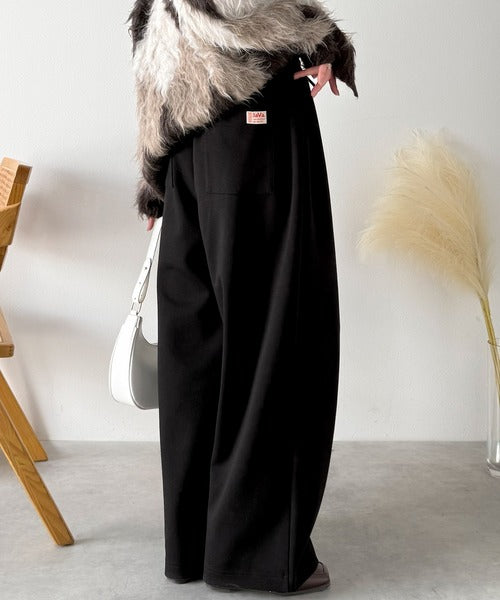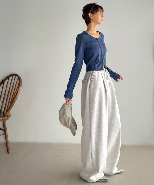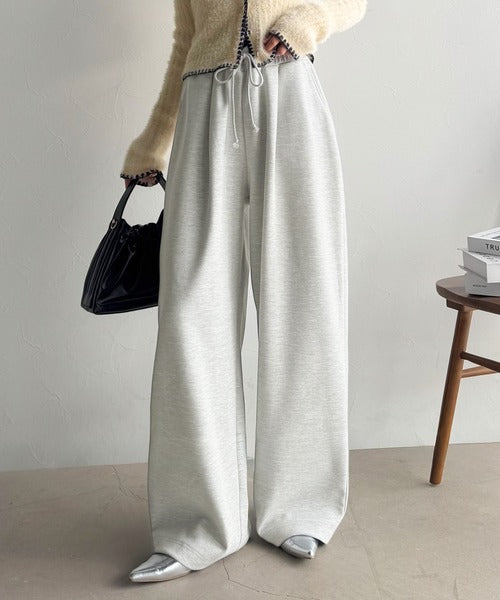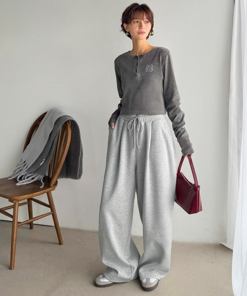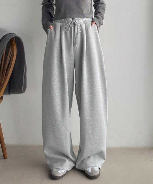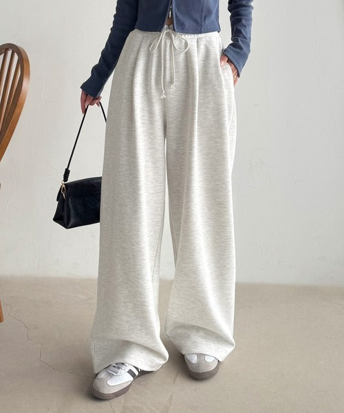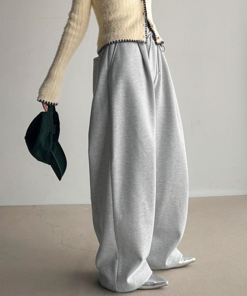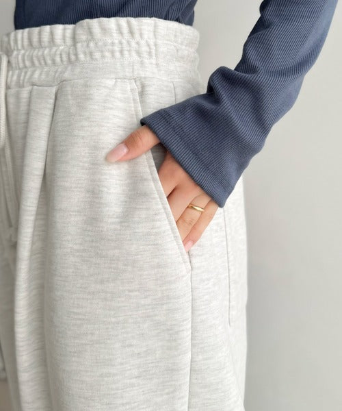 しっかりとした厚みのあるヘビーウェイトスウェット生地を使用したワイドパンツ。