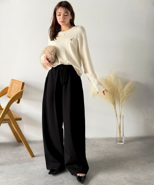 ウエストはゴム仕様+ドローストリング付きで、リラックス感のあるはき心地。