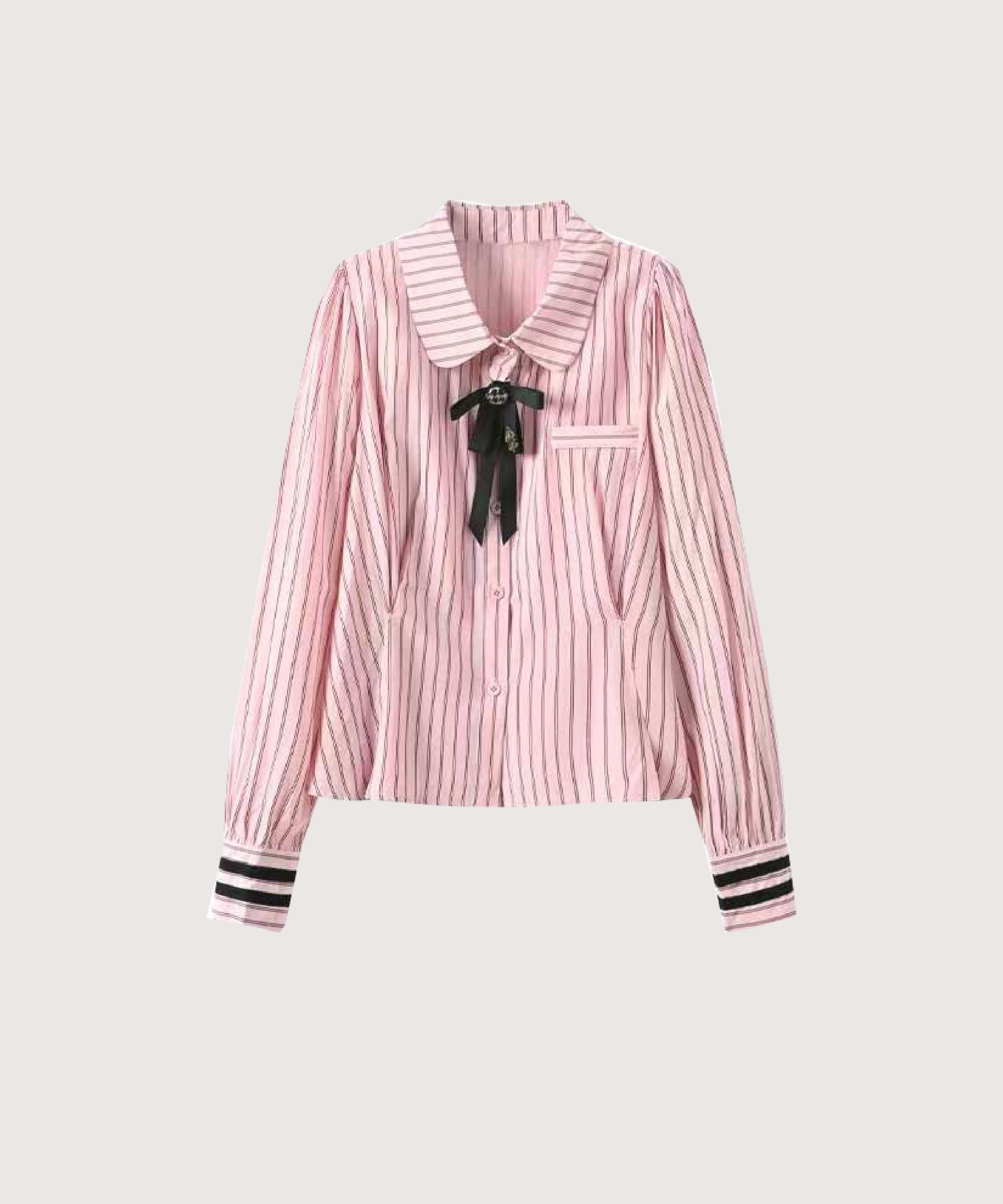 セーラーカラーロングワンピースストライプシャツセットアップ