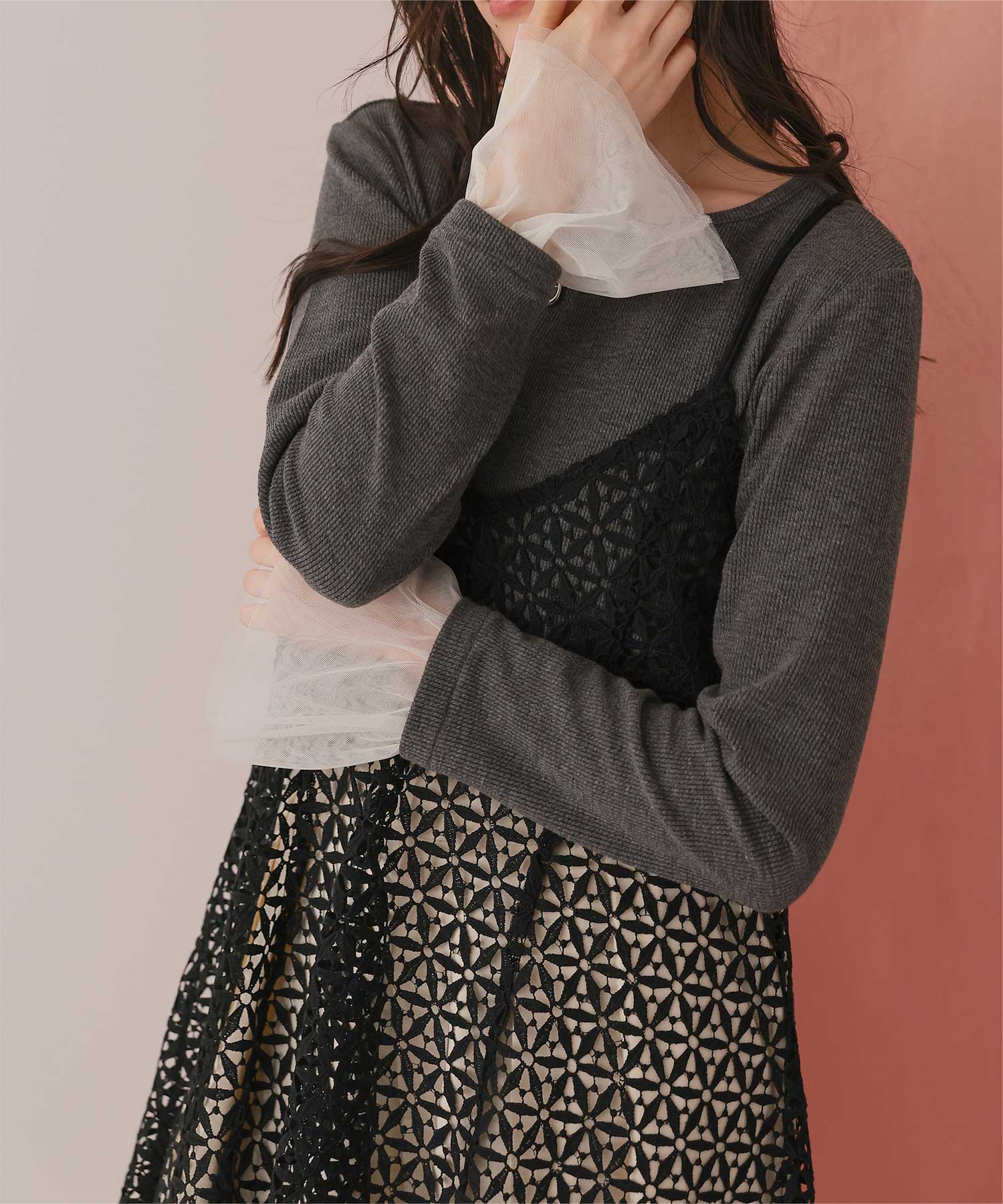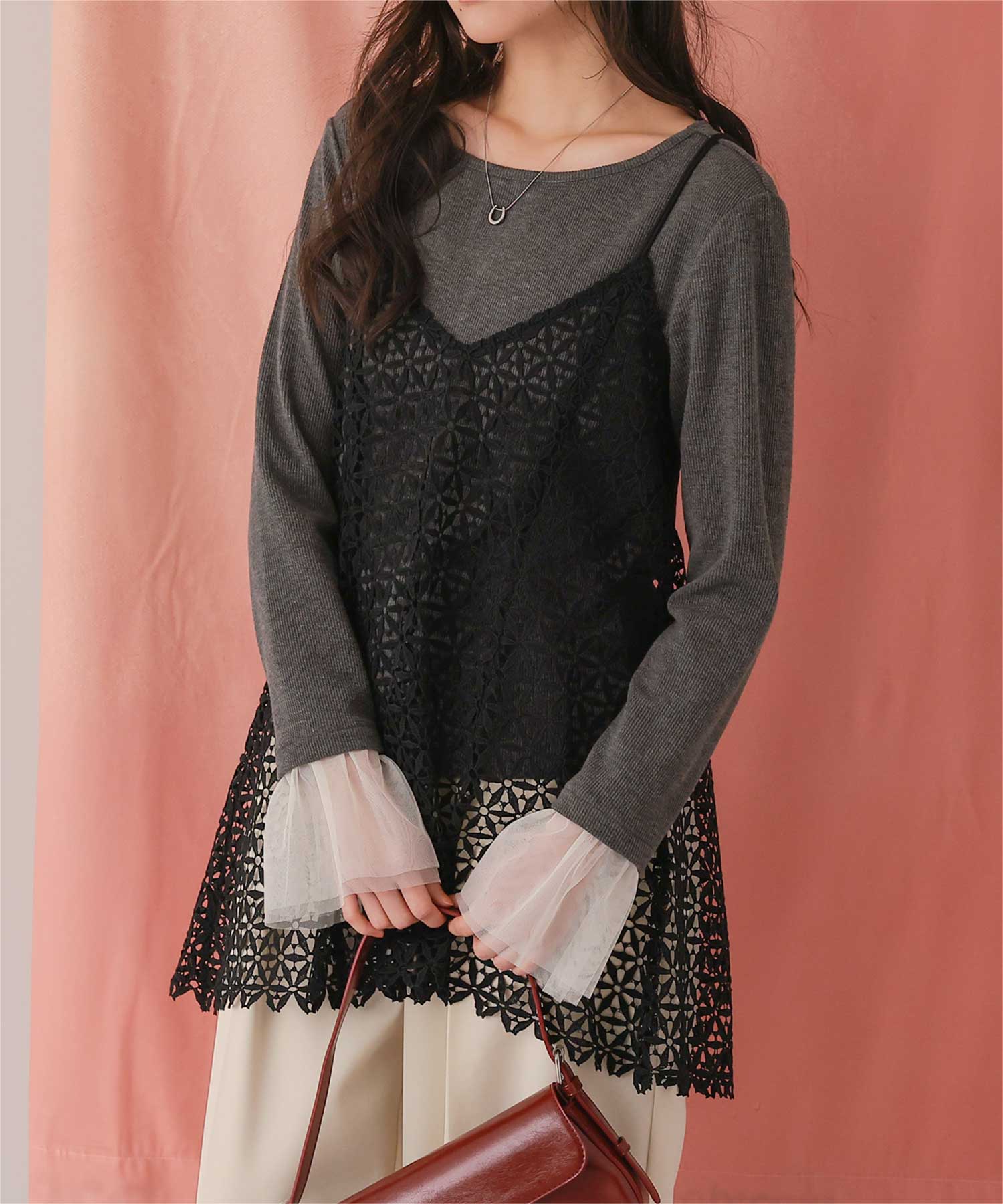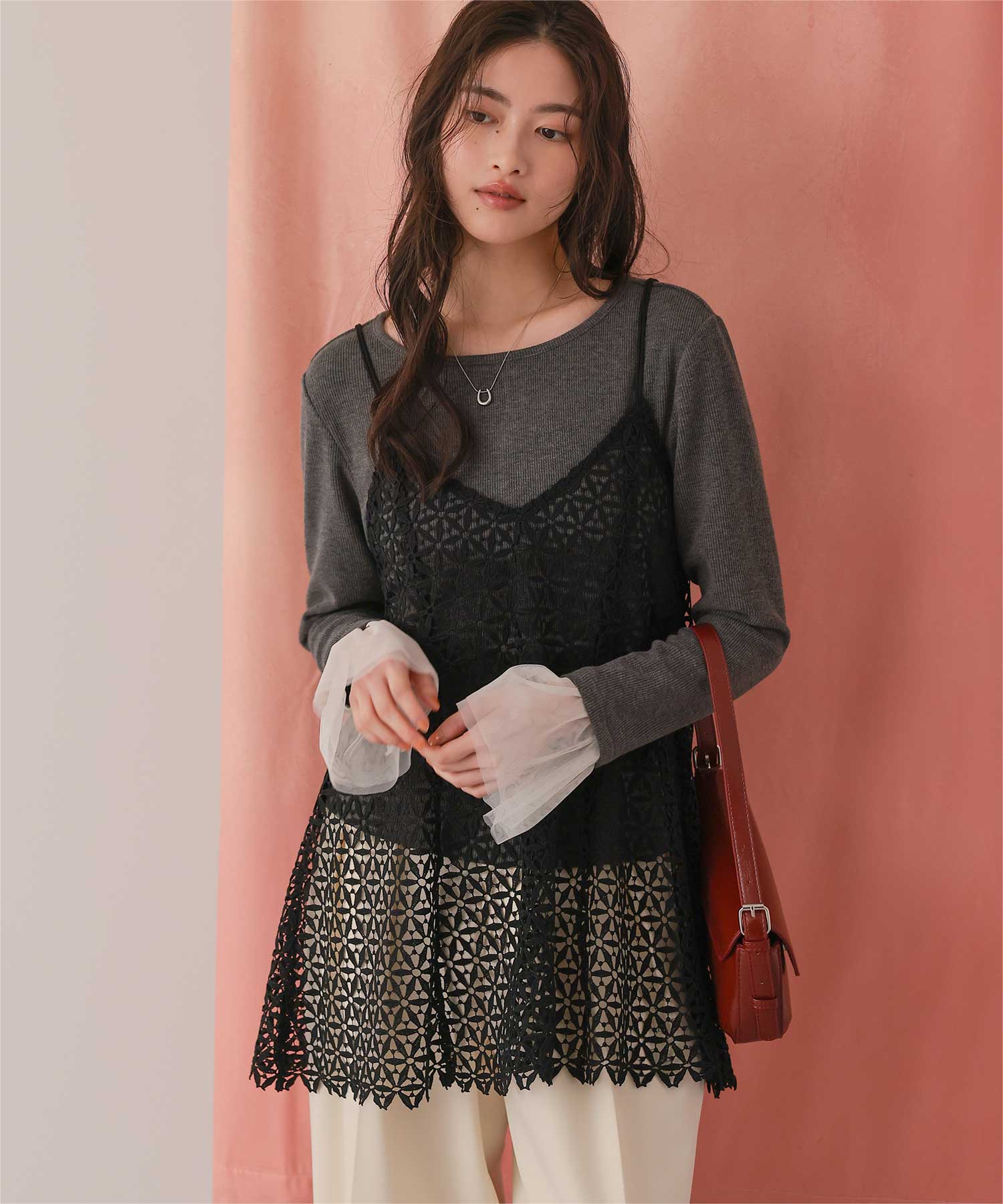 ・花柄レースを贅沢に使った、大人フェミニンなチュニックキャミソール