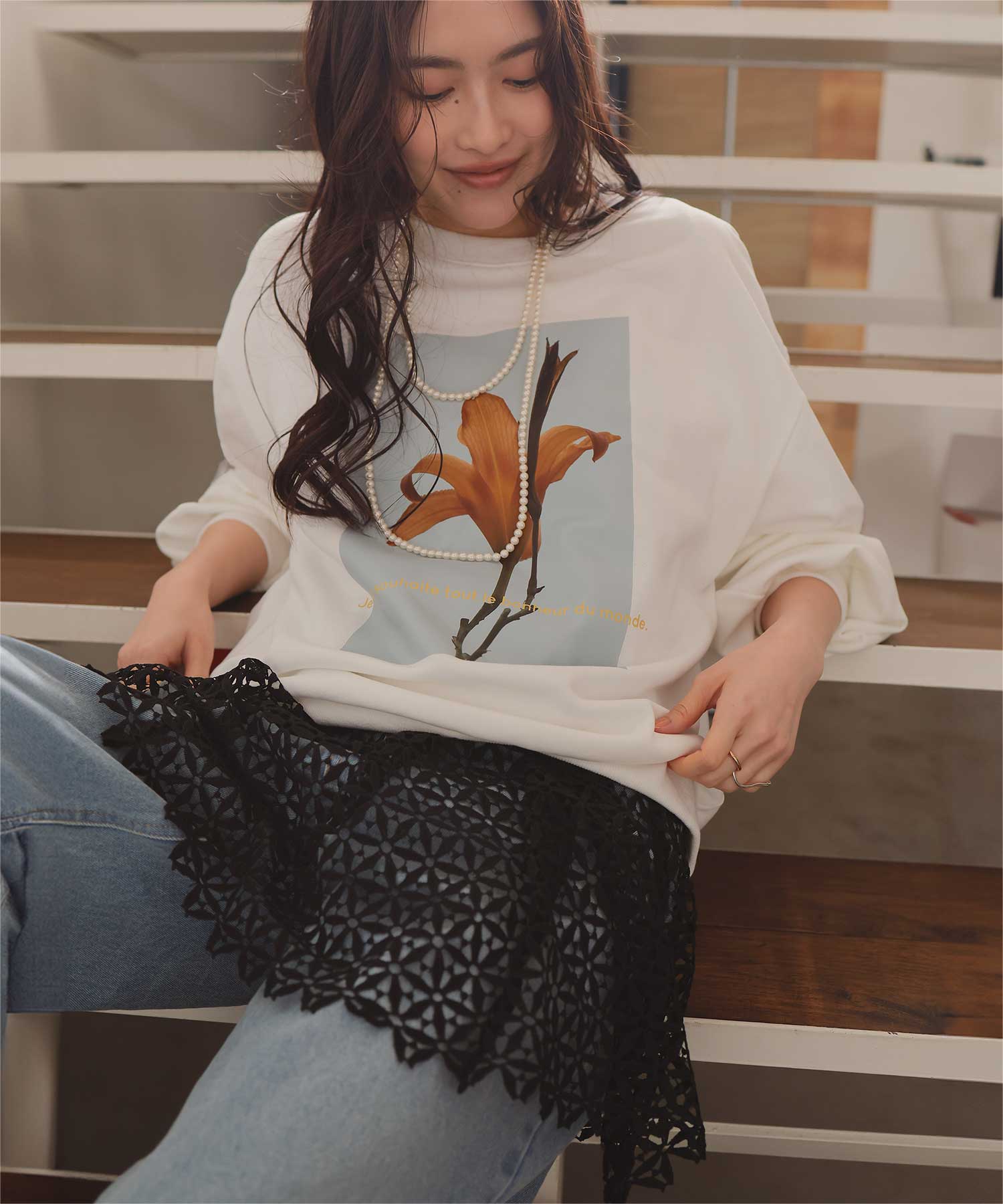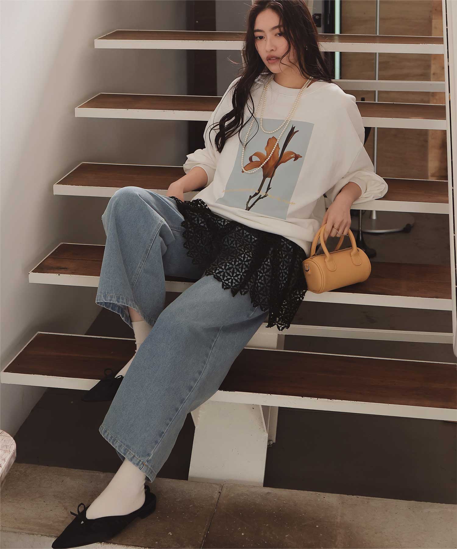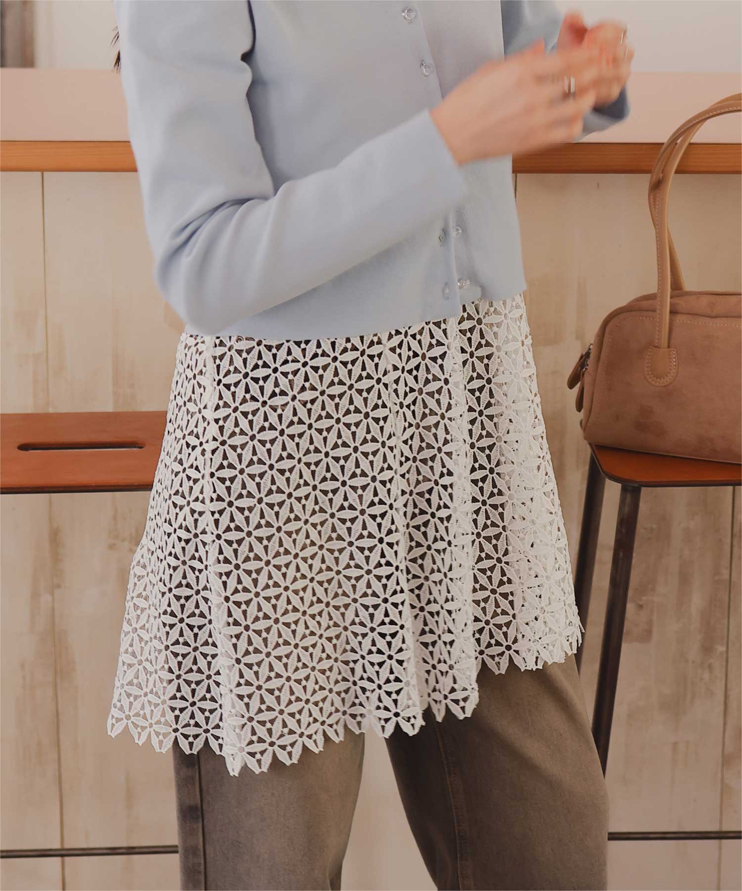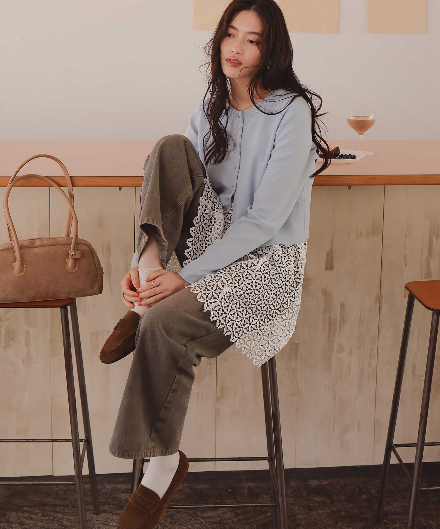 ・軽やかに揺れるレースが、シンプルなコーデに奥行きをプラス