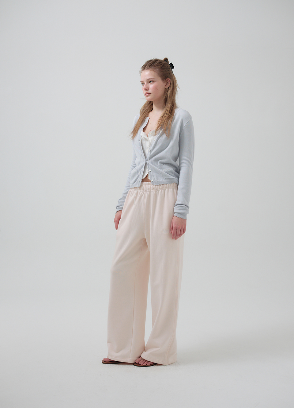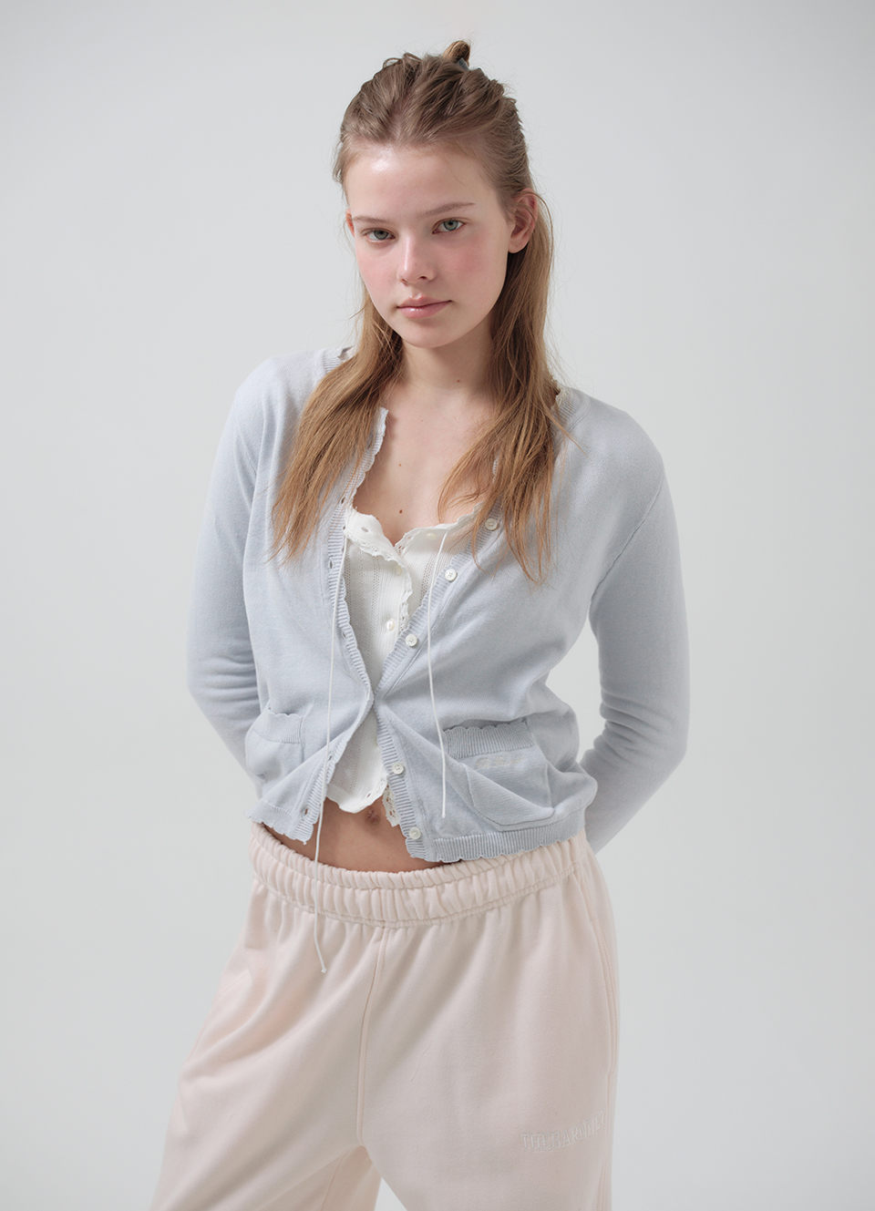 *ネックライン・前立て・裾のスカラップディテールがフェミニンさを引き立てるデザイン