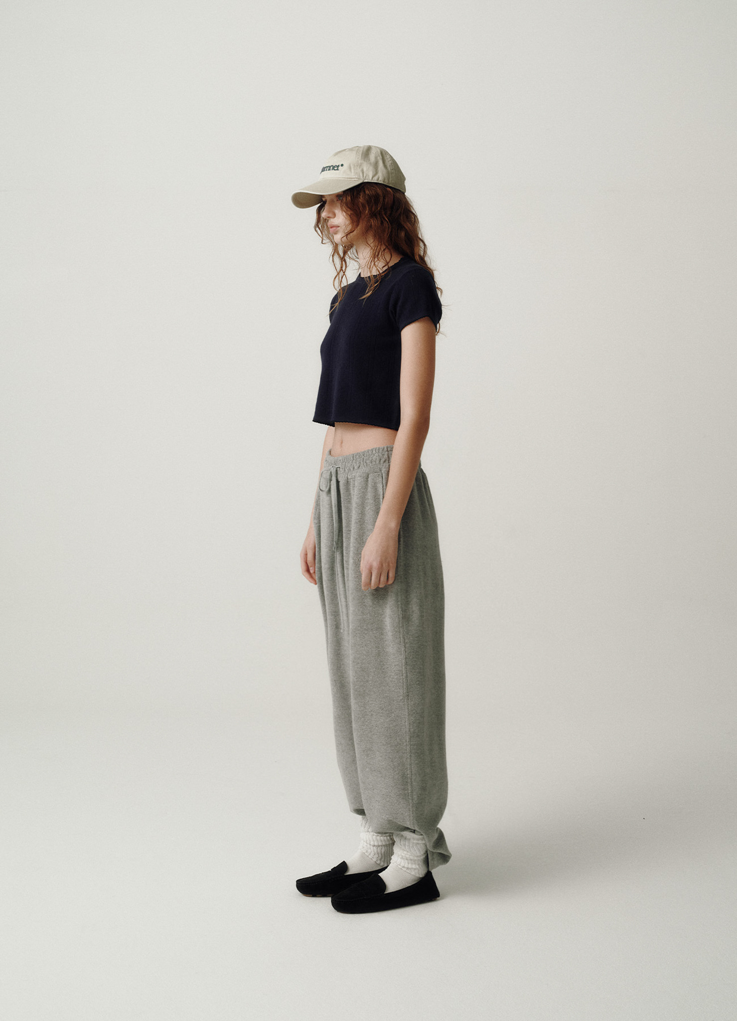 ポワンテル編み、コントラストステッチトリミング、上品な裾のディテールが女性らしさを演出。