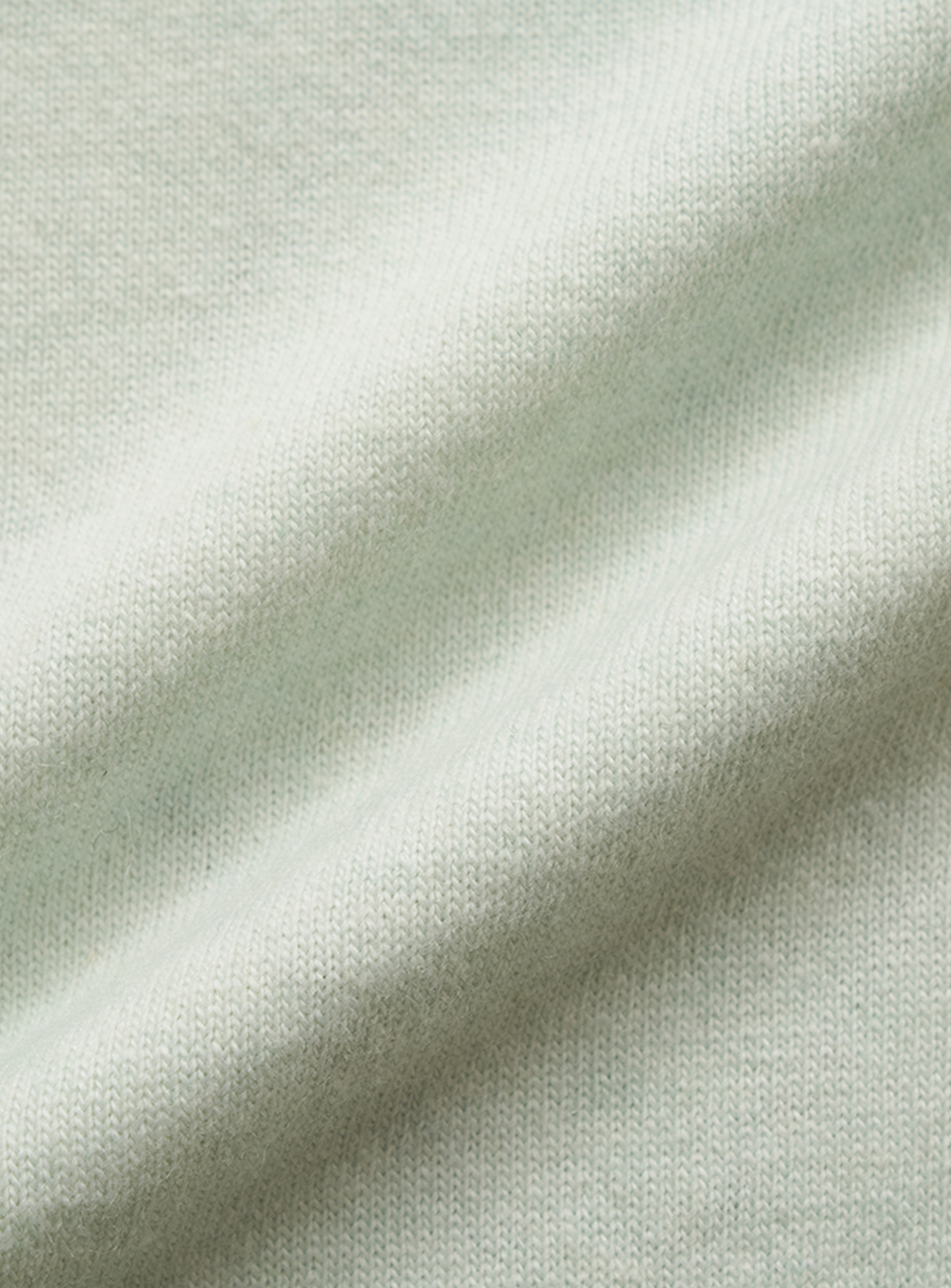 "ミントカラーのアーガイルパターンと柔らかな質感が特徴のカシミヤ混ニットファブリック。