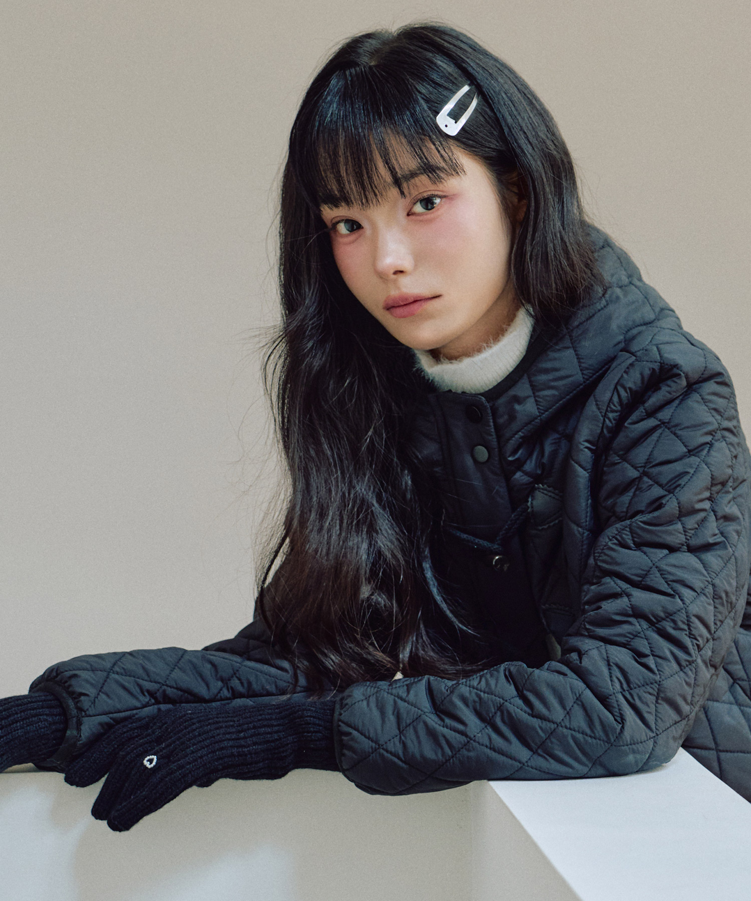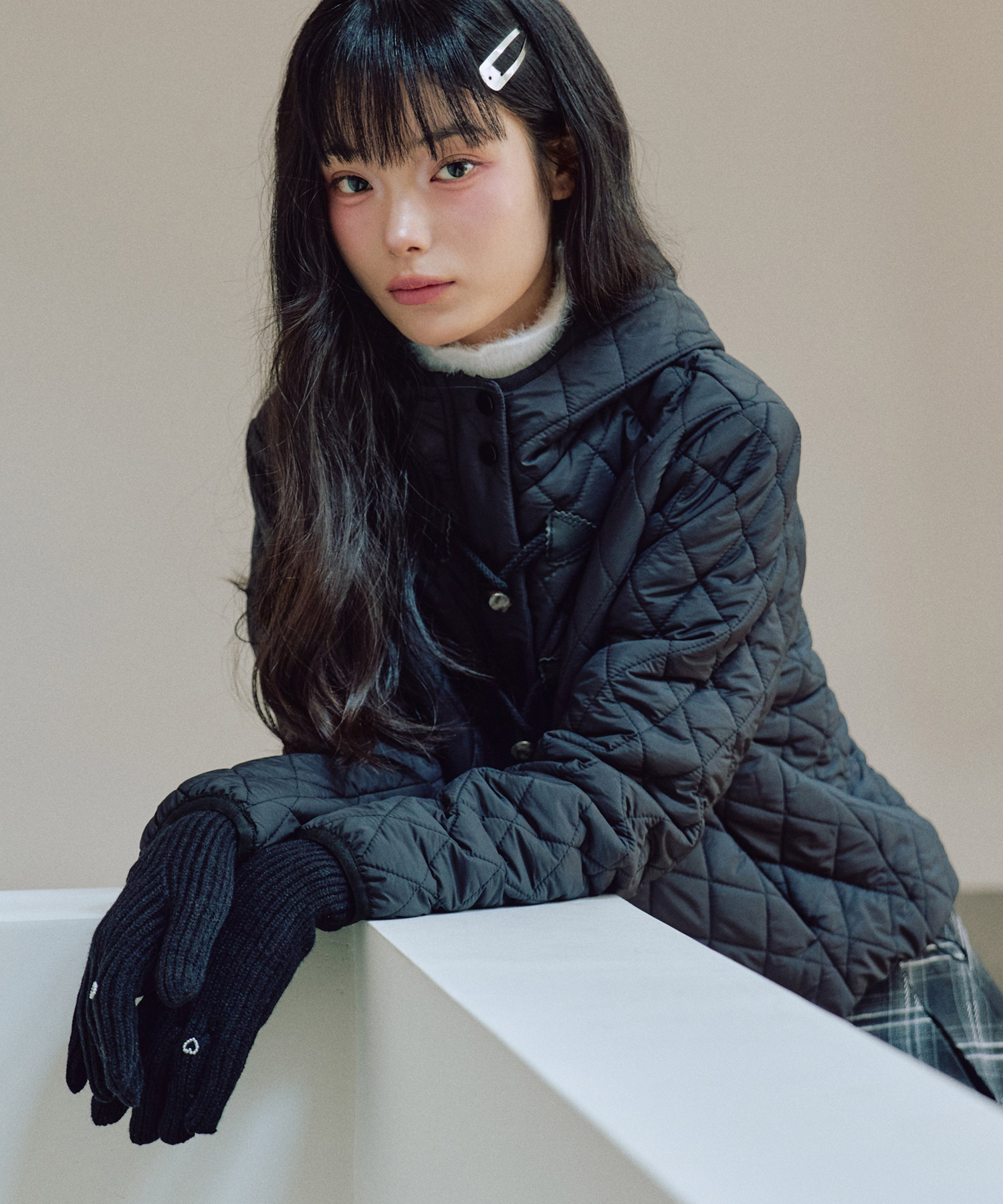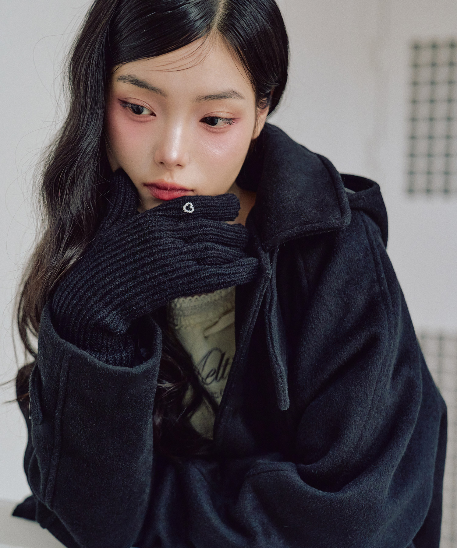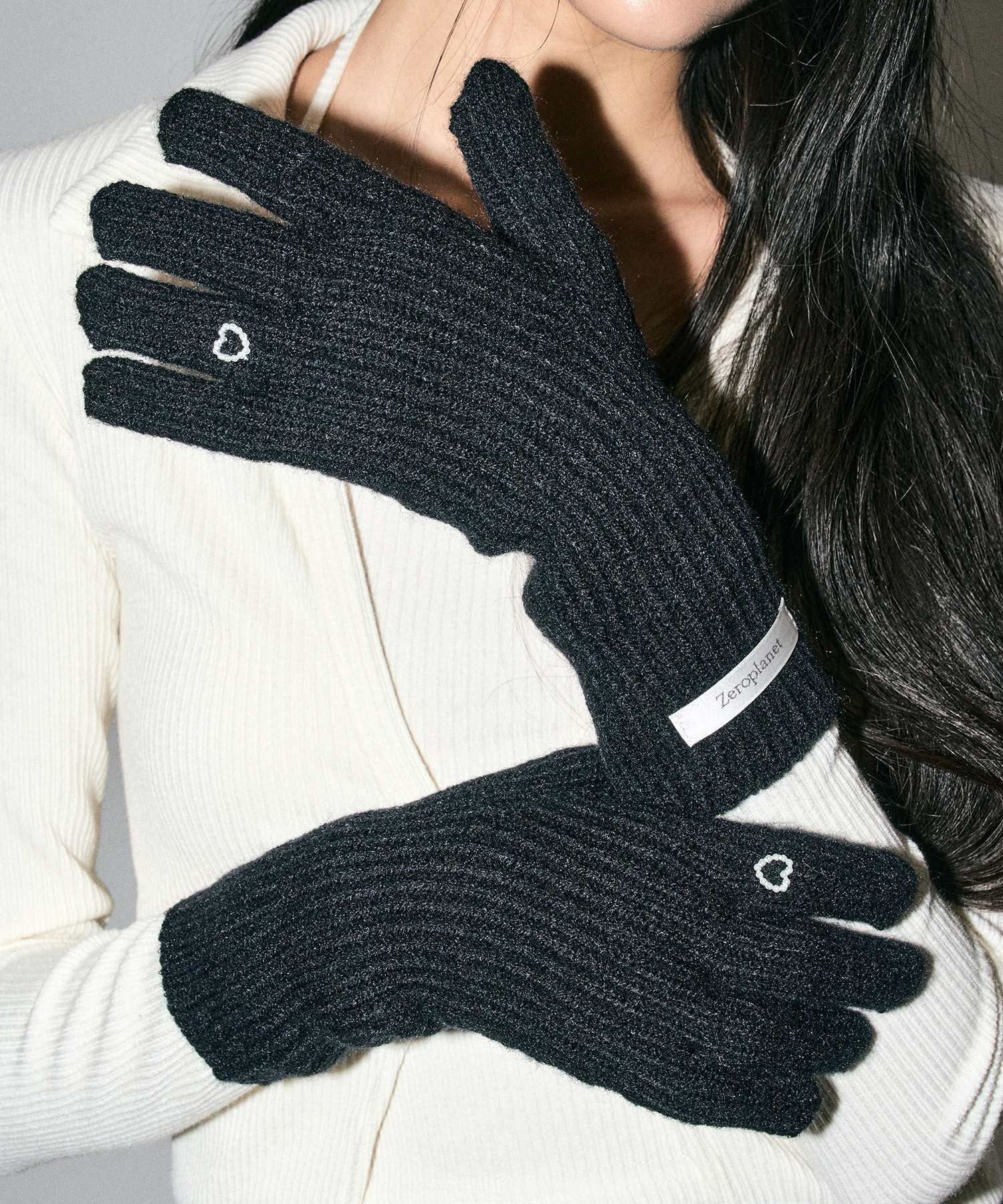 ハートフィンガーホール ニットグローブ [BLACK]