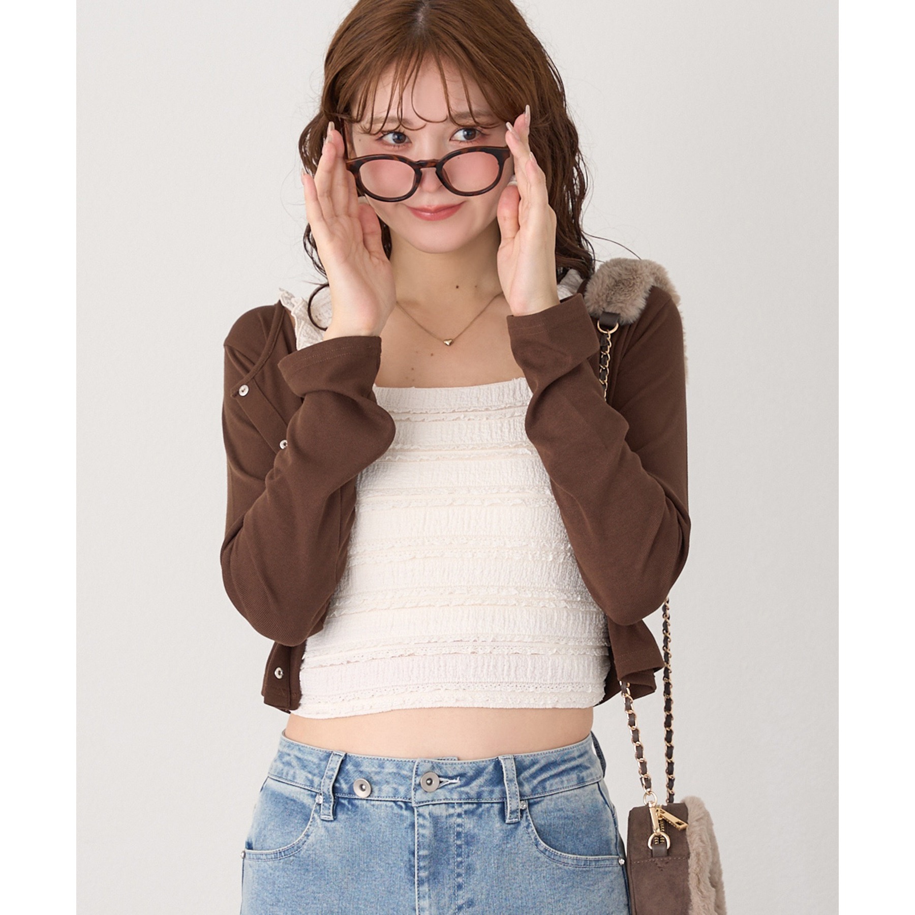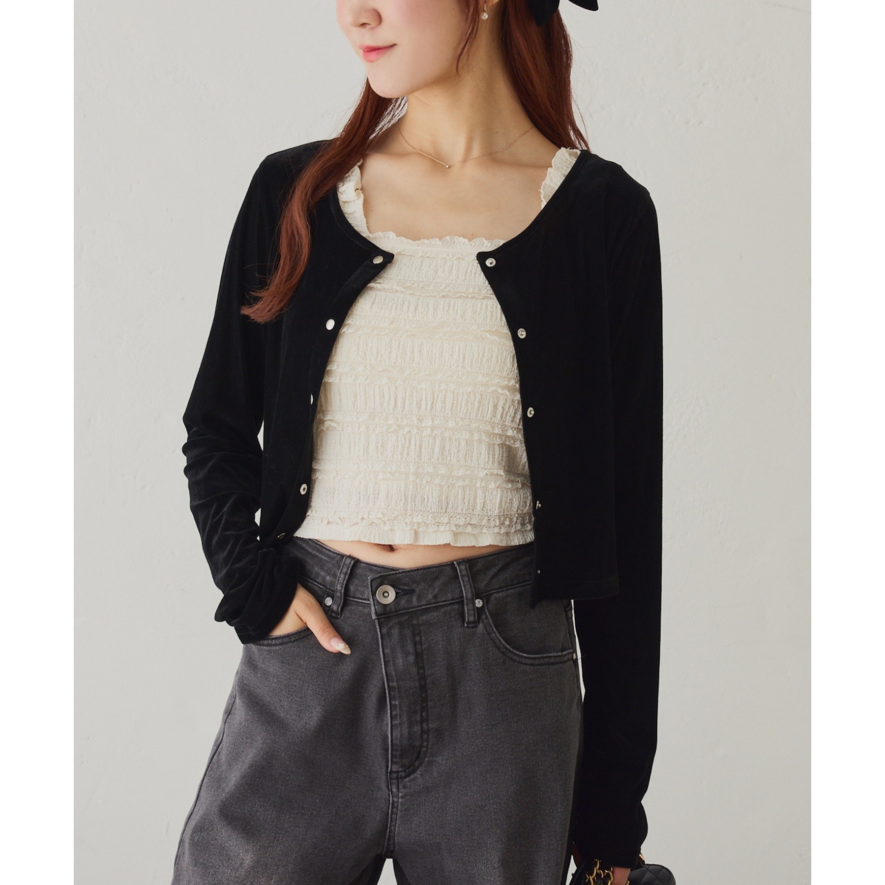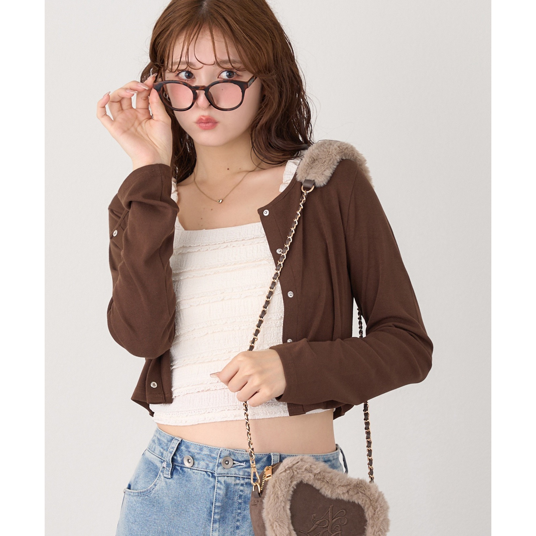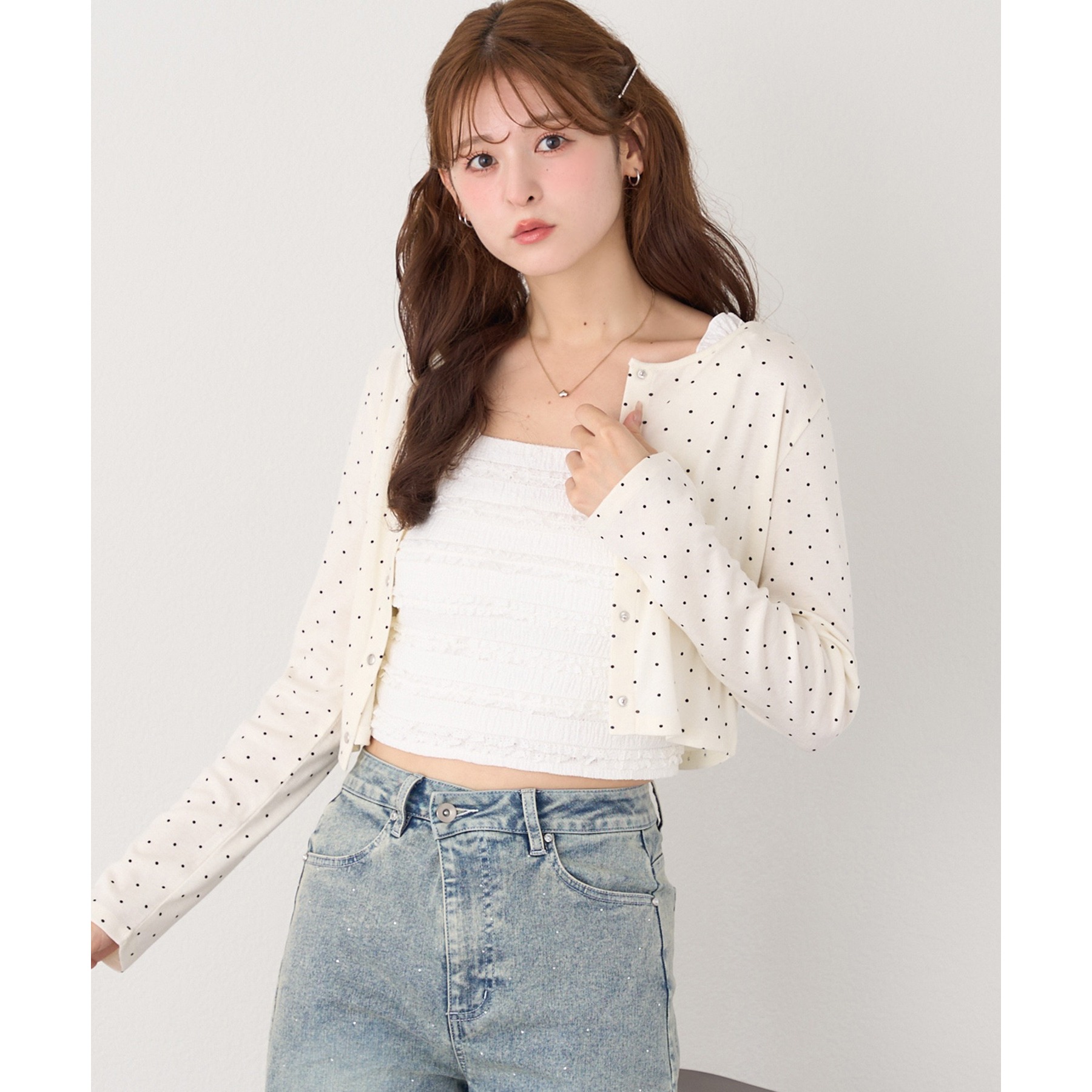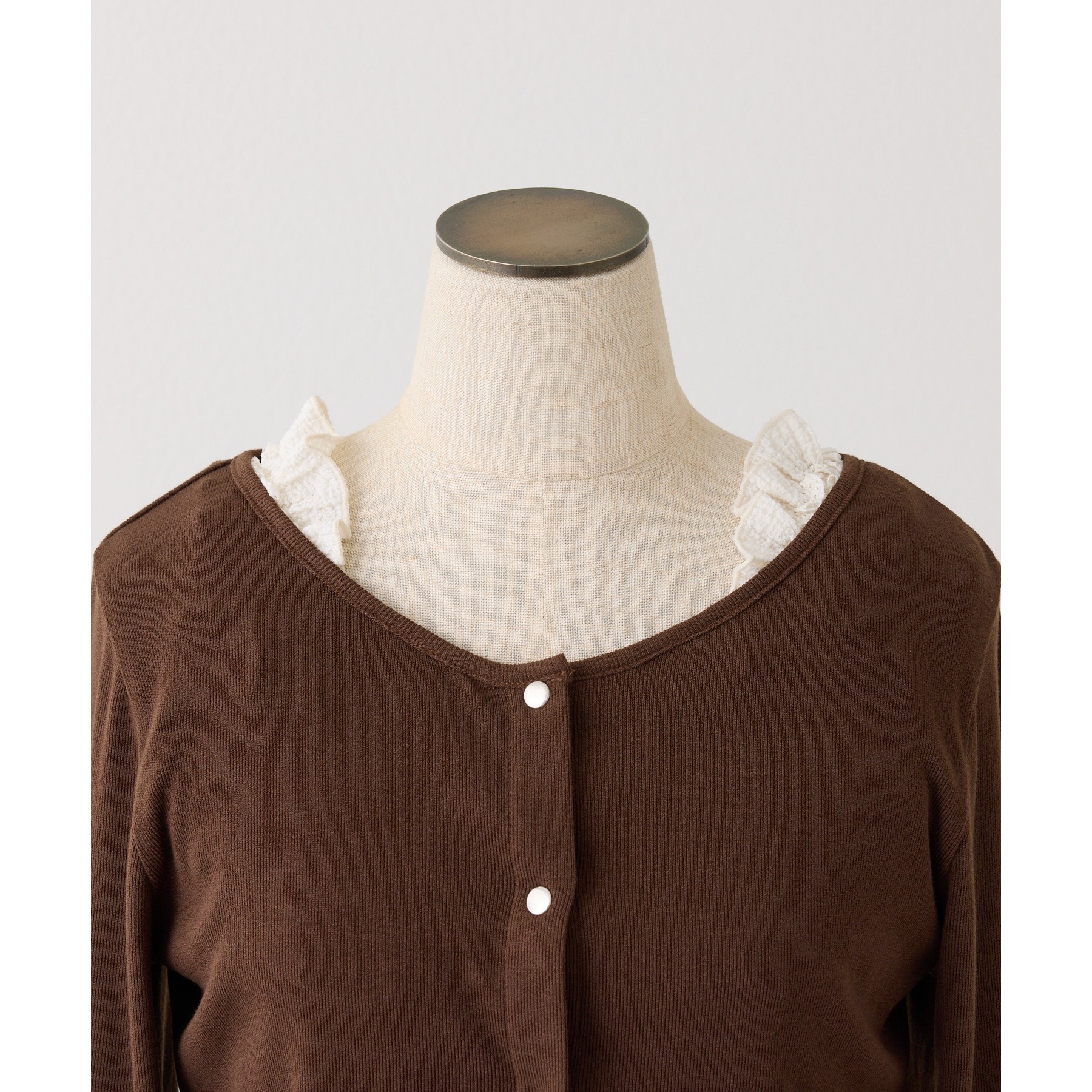 カーディガンはシンプルなデザインなので、ビスチェと合わせるのはもちろん、お手持ちのアイテムとも好相性◎