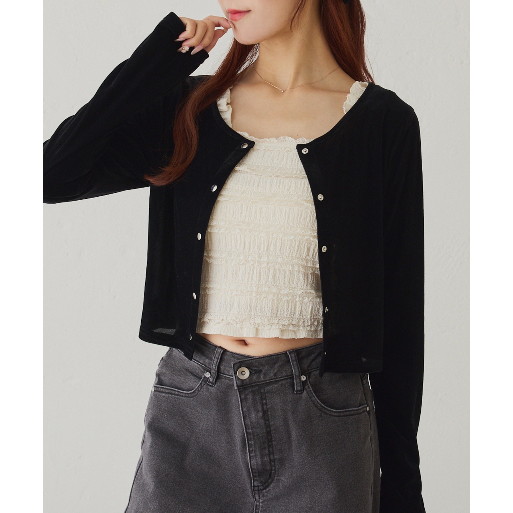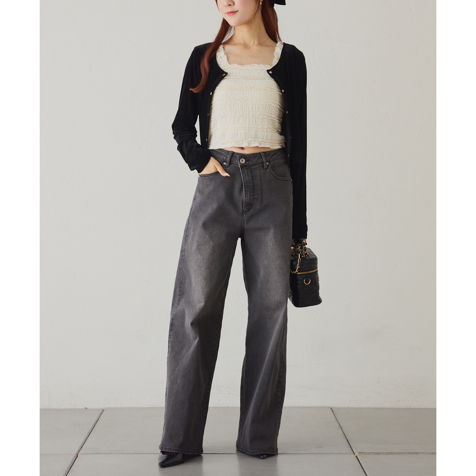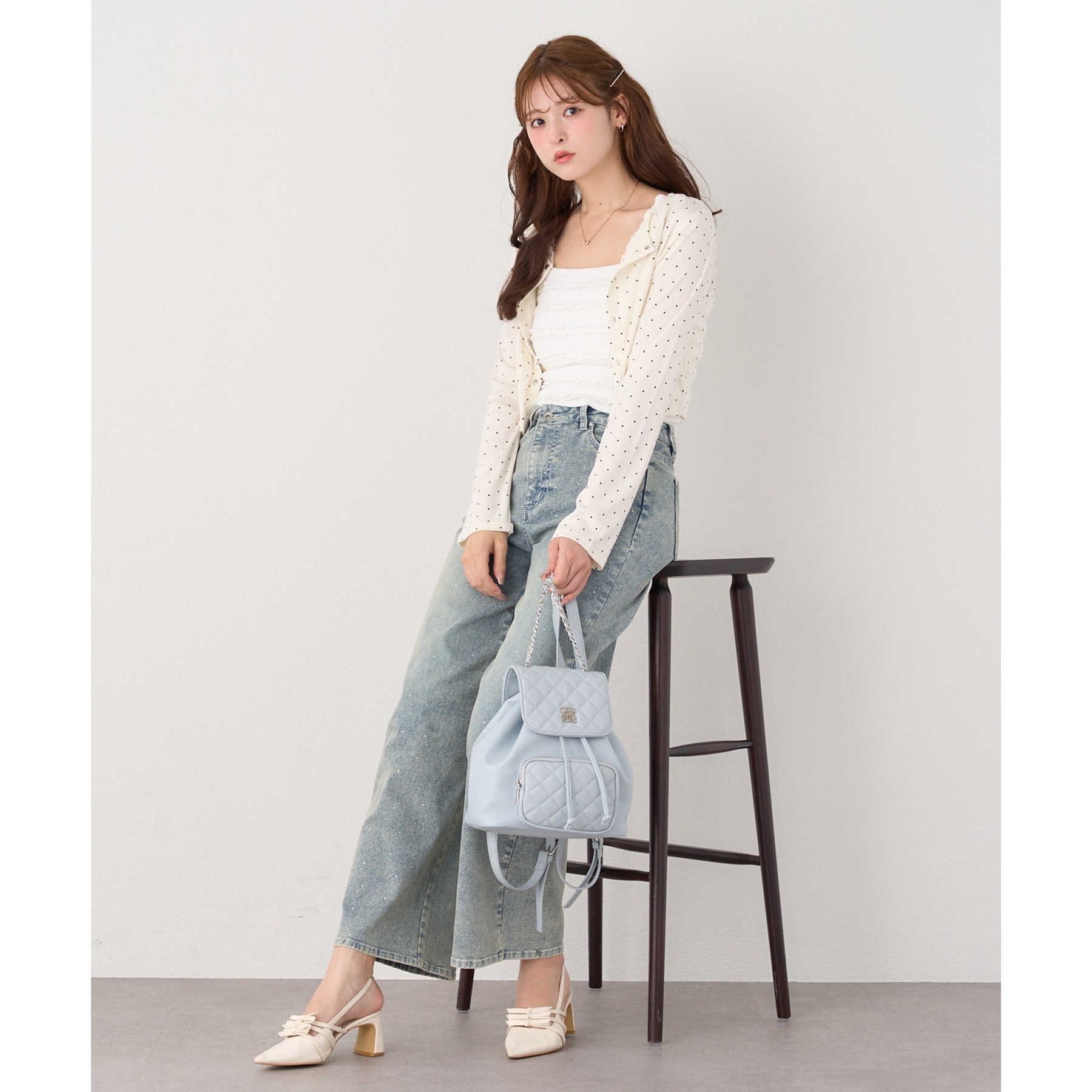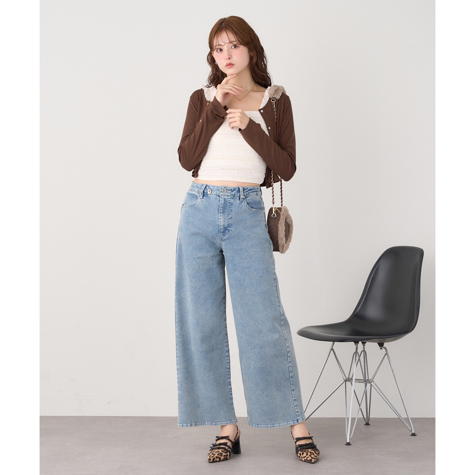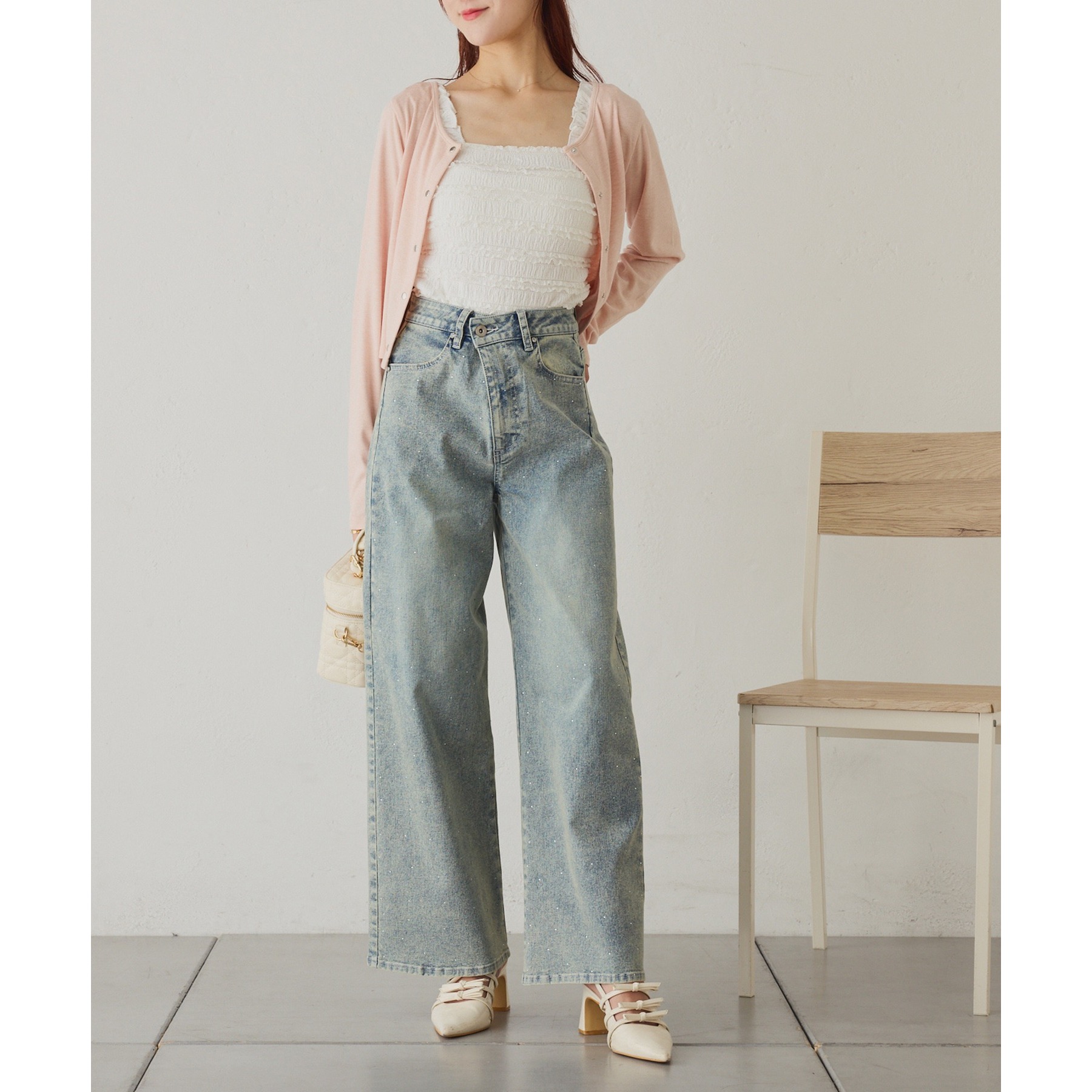カーディガンはシンプルなデザインなので、ビスチェと合わせるのはもちろん、お手持ちのアイテムとも好相性◎