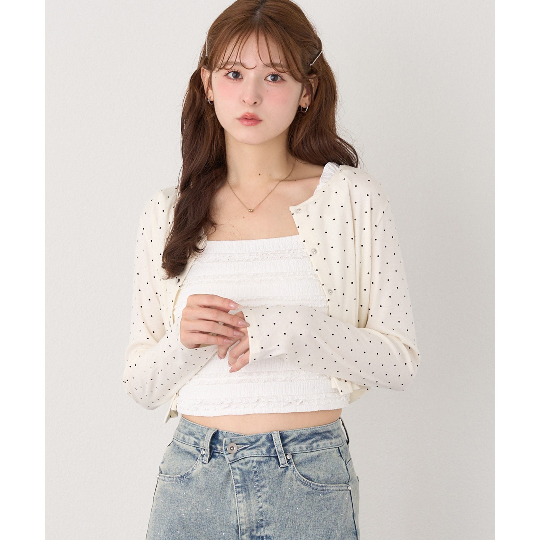 カーディガンは閉めてトップスとして使うのもおおすすめ!