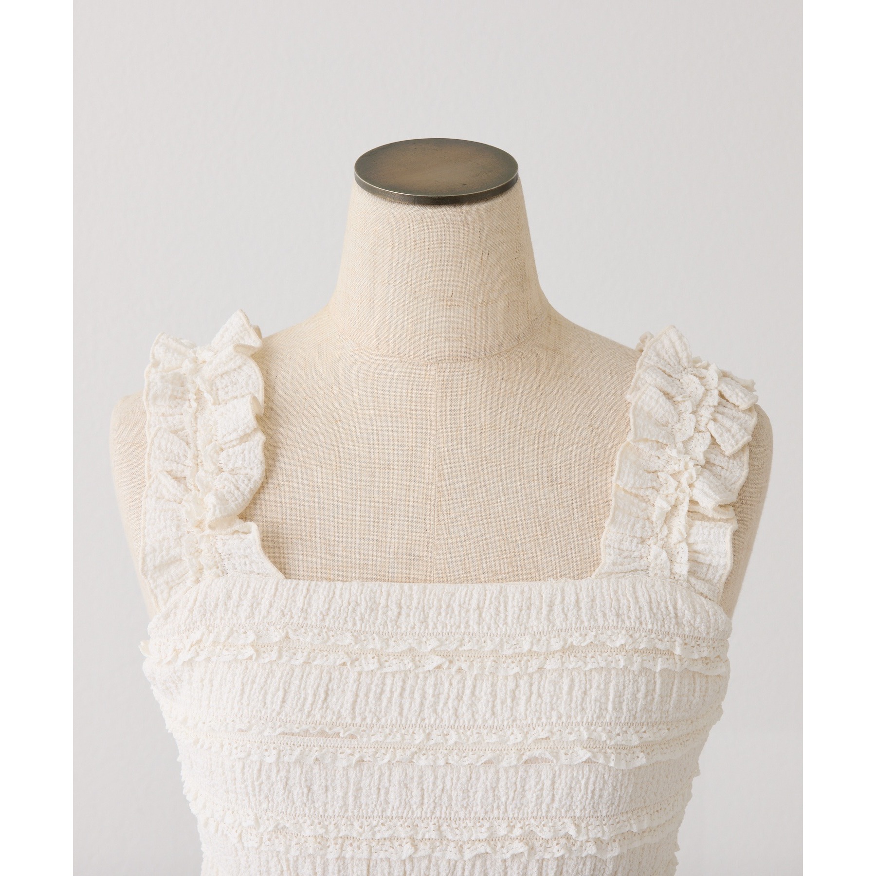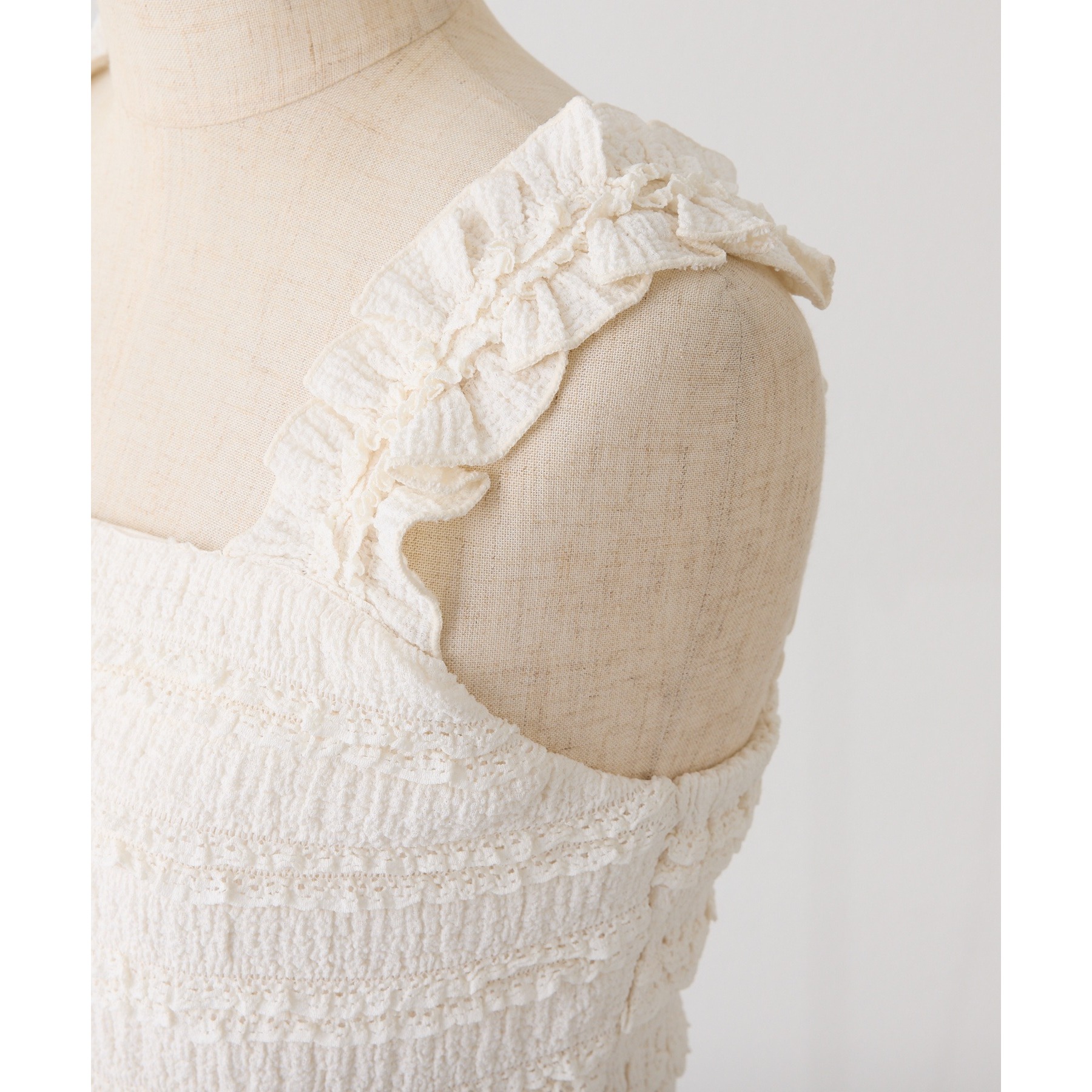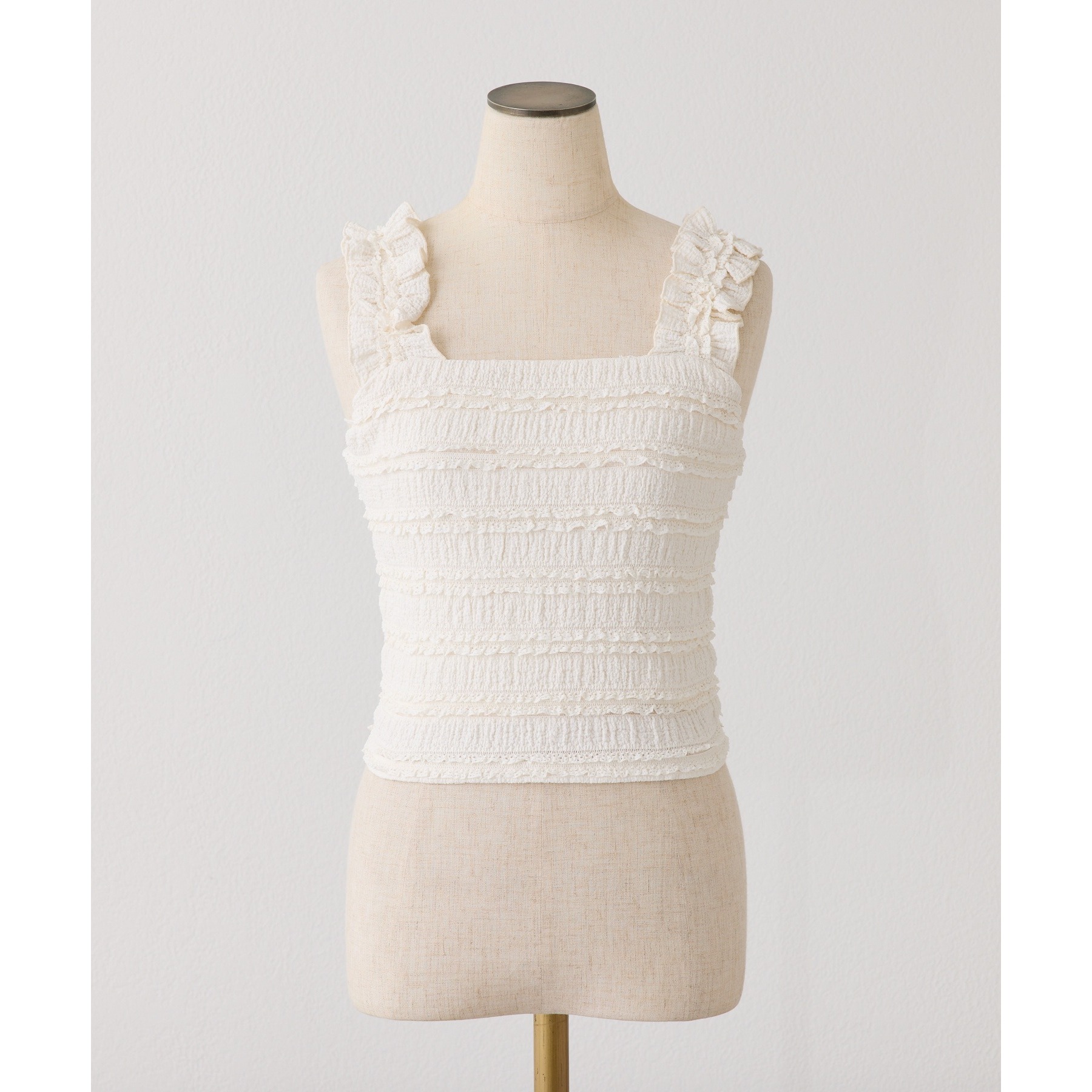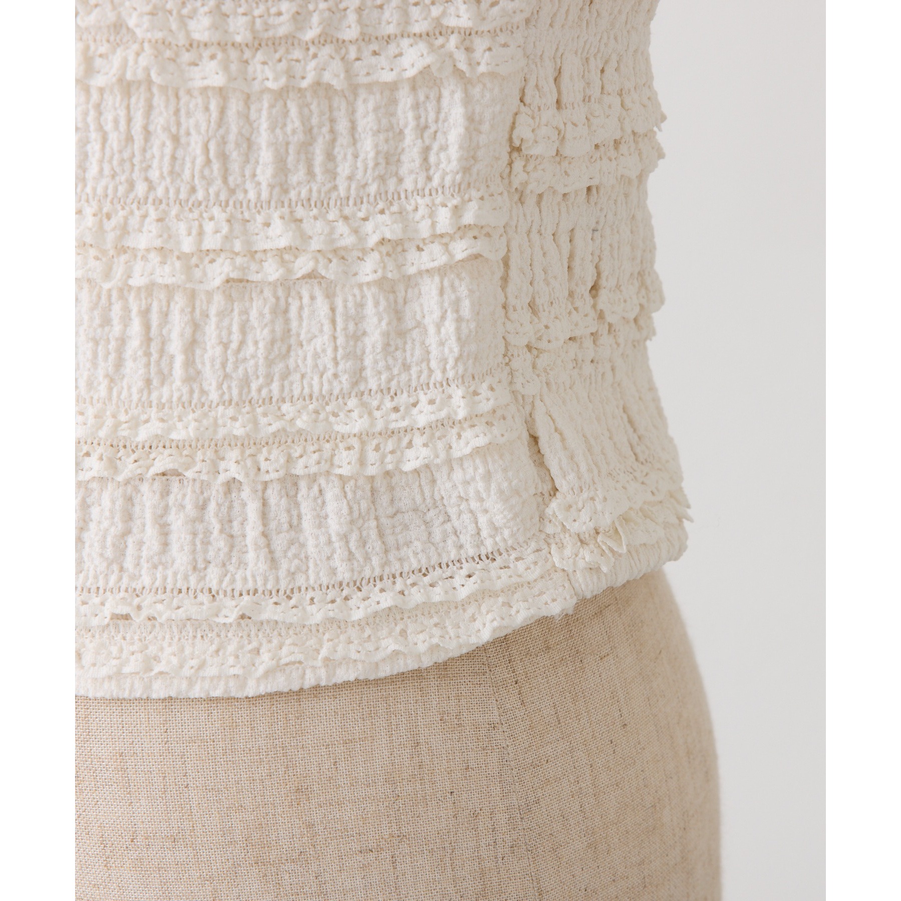 程よくフィット感のあるビスチェは、レイヤードするだけで一気にトレンド感のあるスタイリングに。