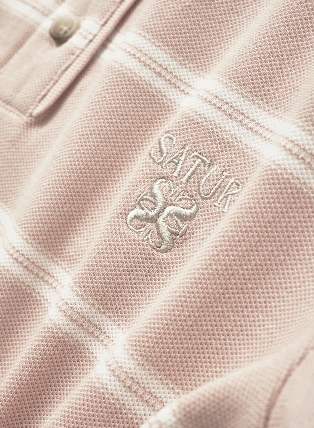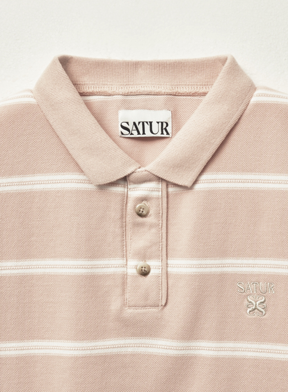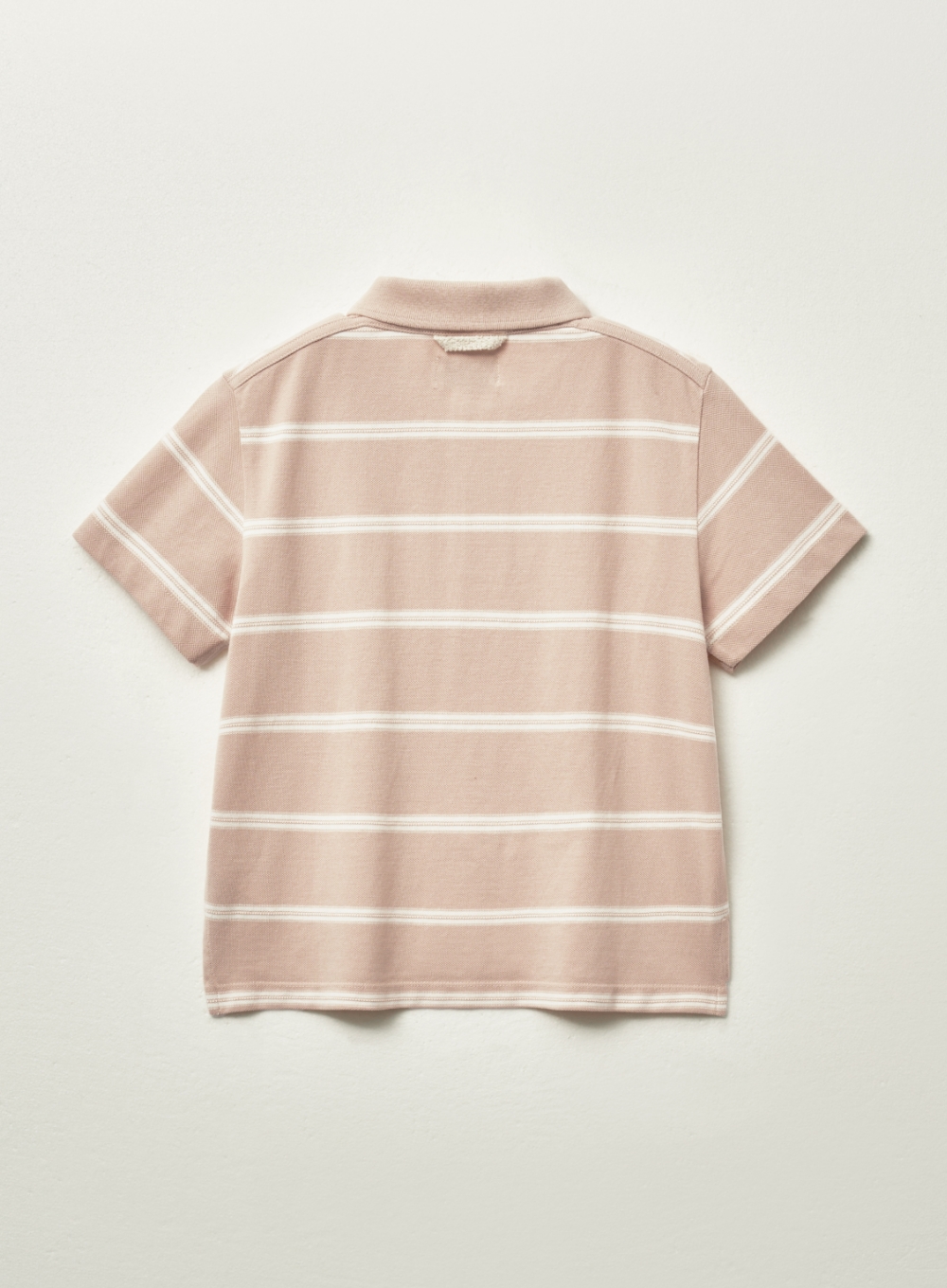 (W) Stripe Pique Polo T-Shirt - Light Pink
