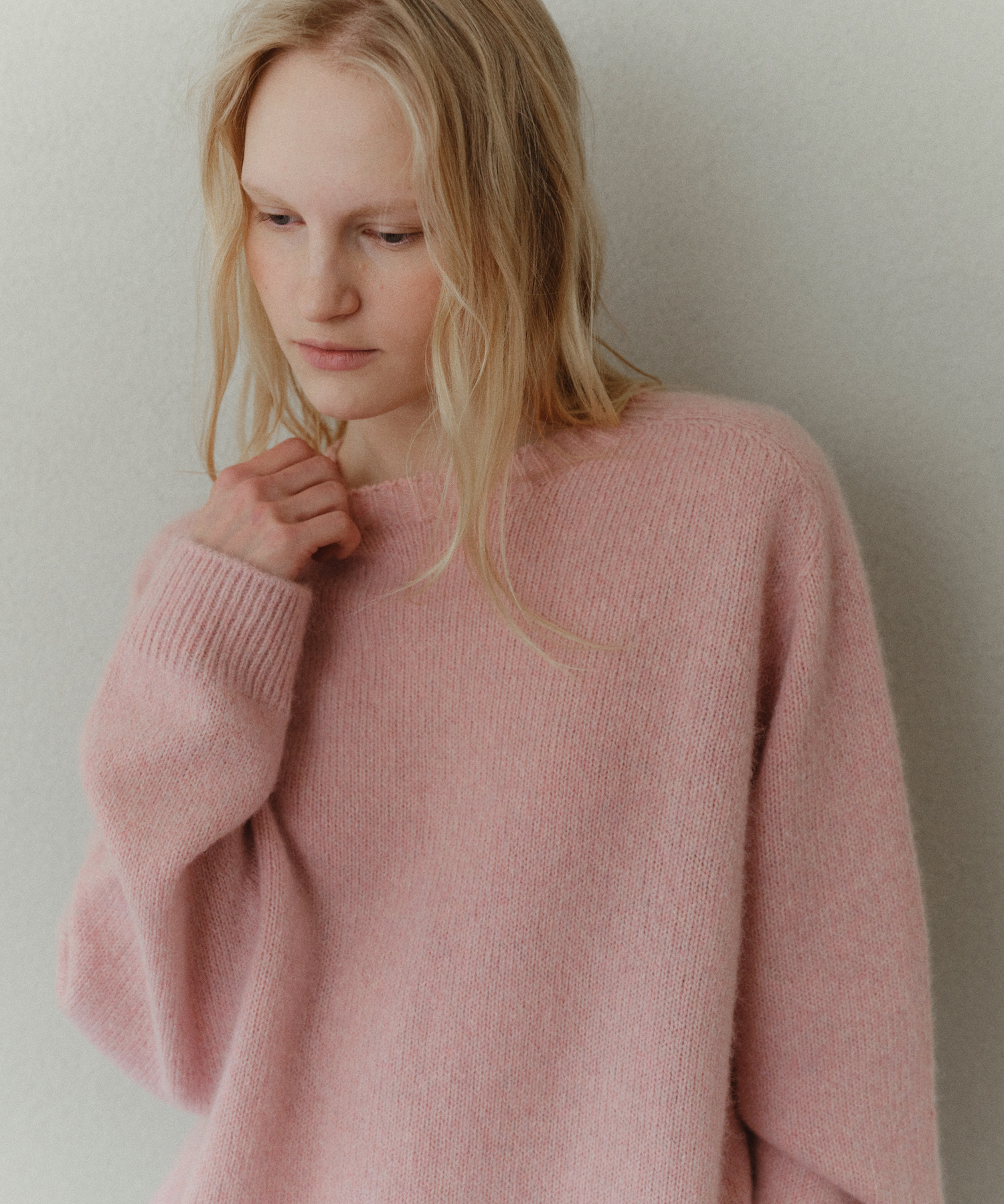- ふんわりとした素材感とゆとりのあるラインが合わさり、冬は1枚でもアウターのインナーとしてもバランスよく着用できる感度の高いアイテムです。