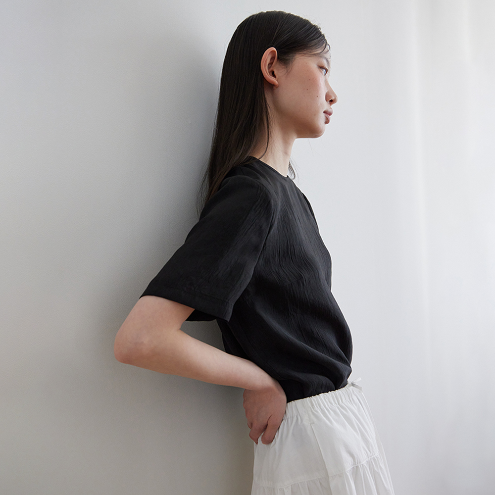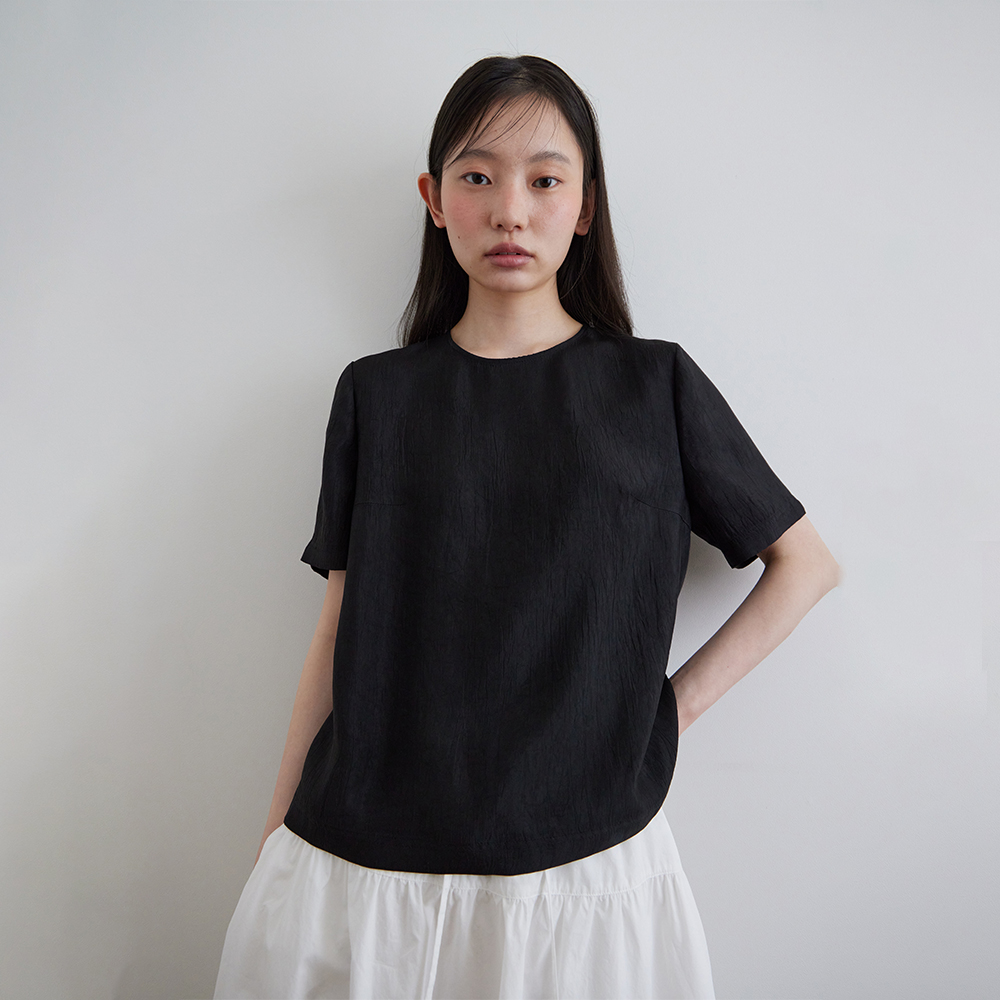 CRACK HALF SLEEVES BLOUSE_BLACK