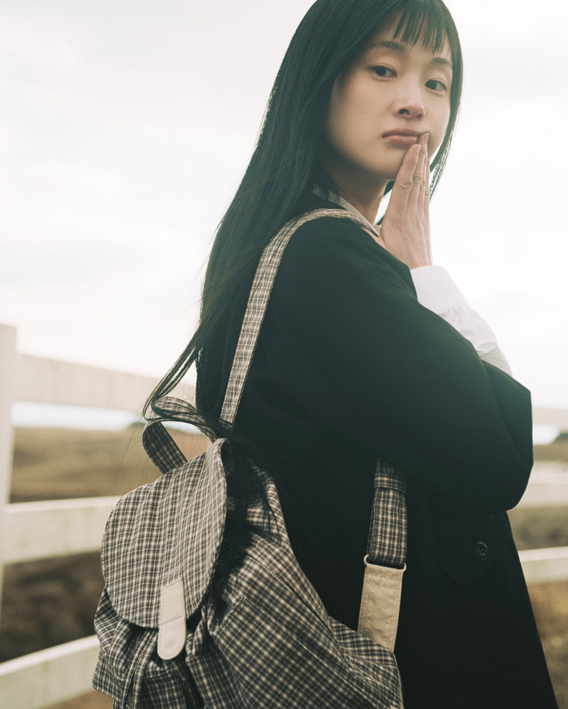 DUAL POCKET BACKPACK, BEIGE CHECK