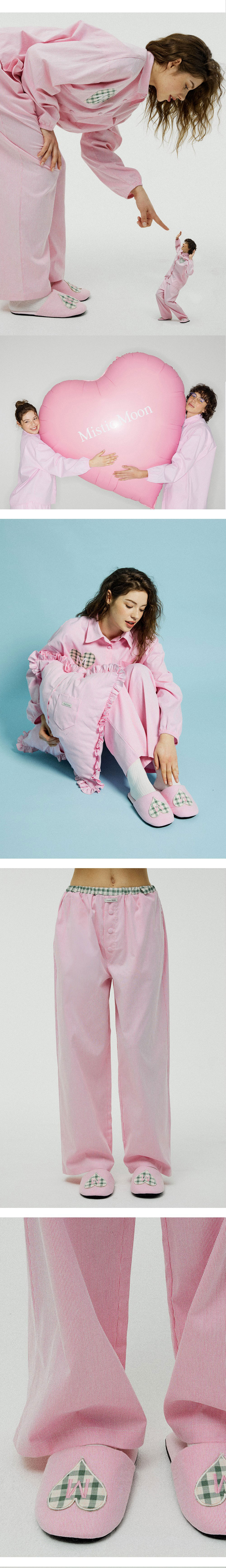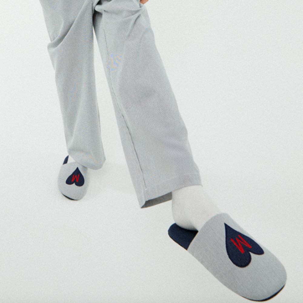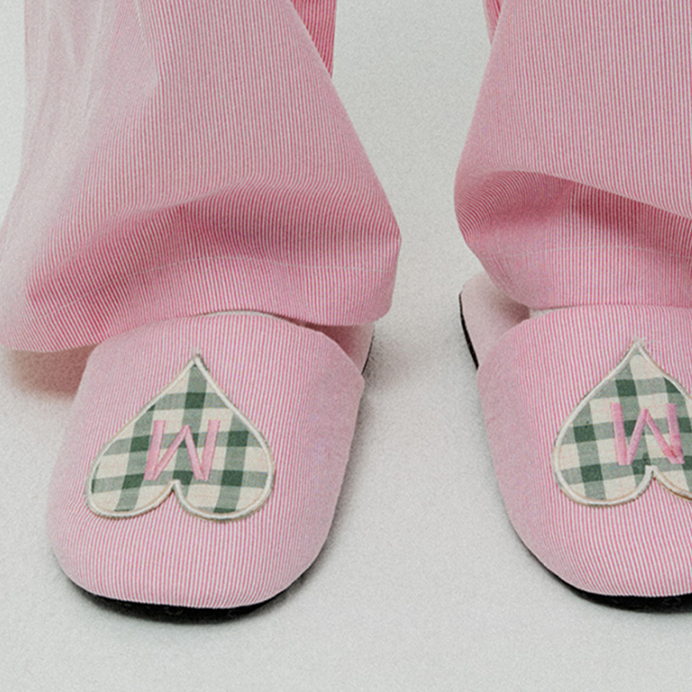 -上質なストライプ素材と、ラブリーなハートパッチが映えるルームシューズです。