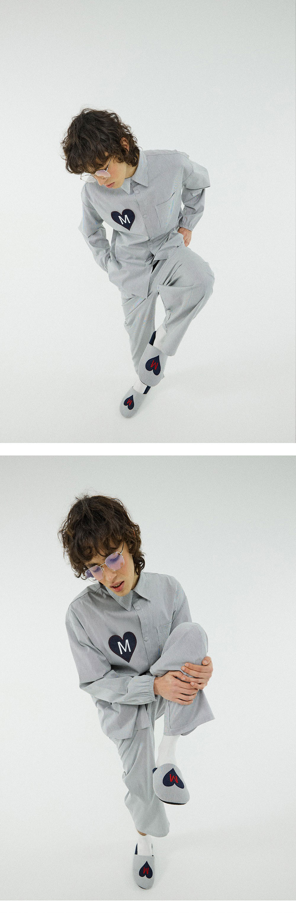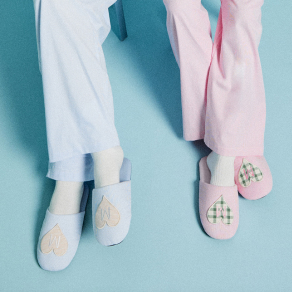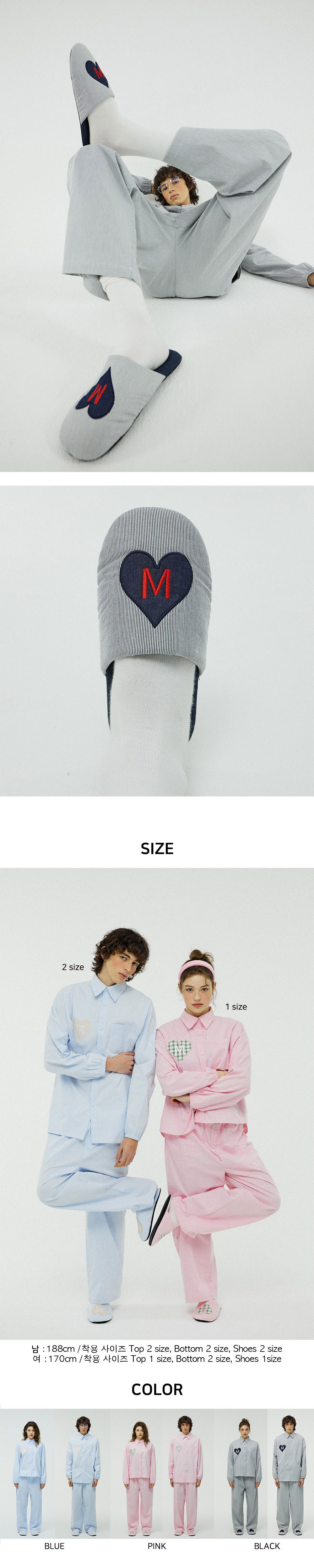 -上質なストライプ素材と、ラブリーなハートパッチが映えるルームシューズです。
