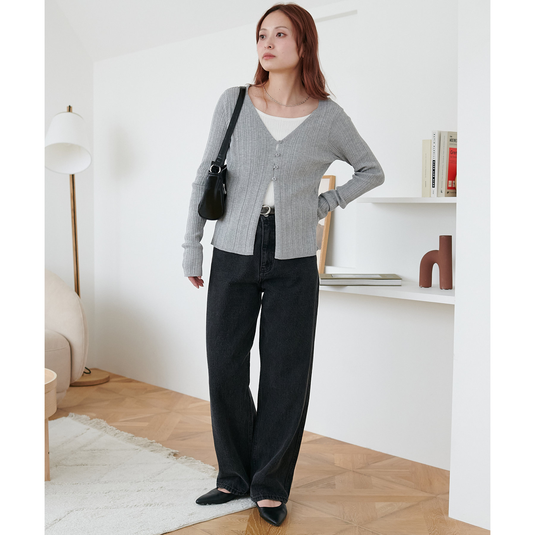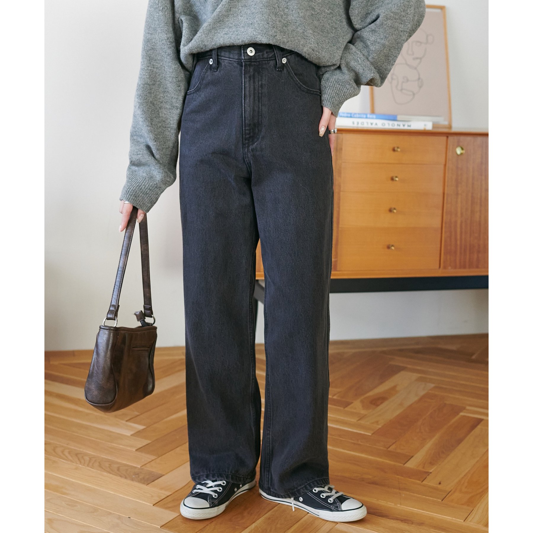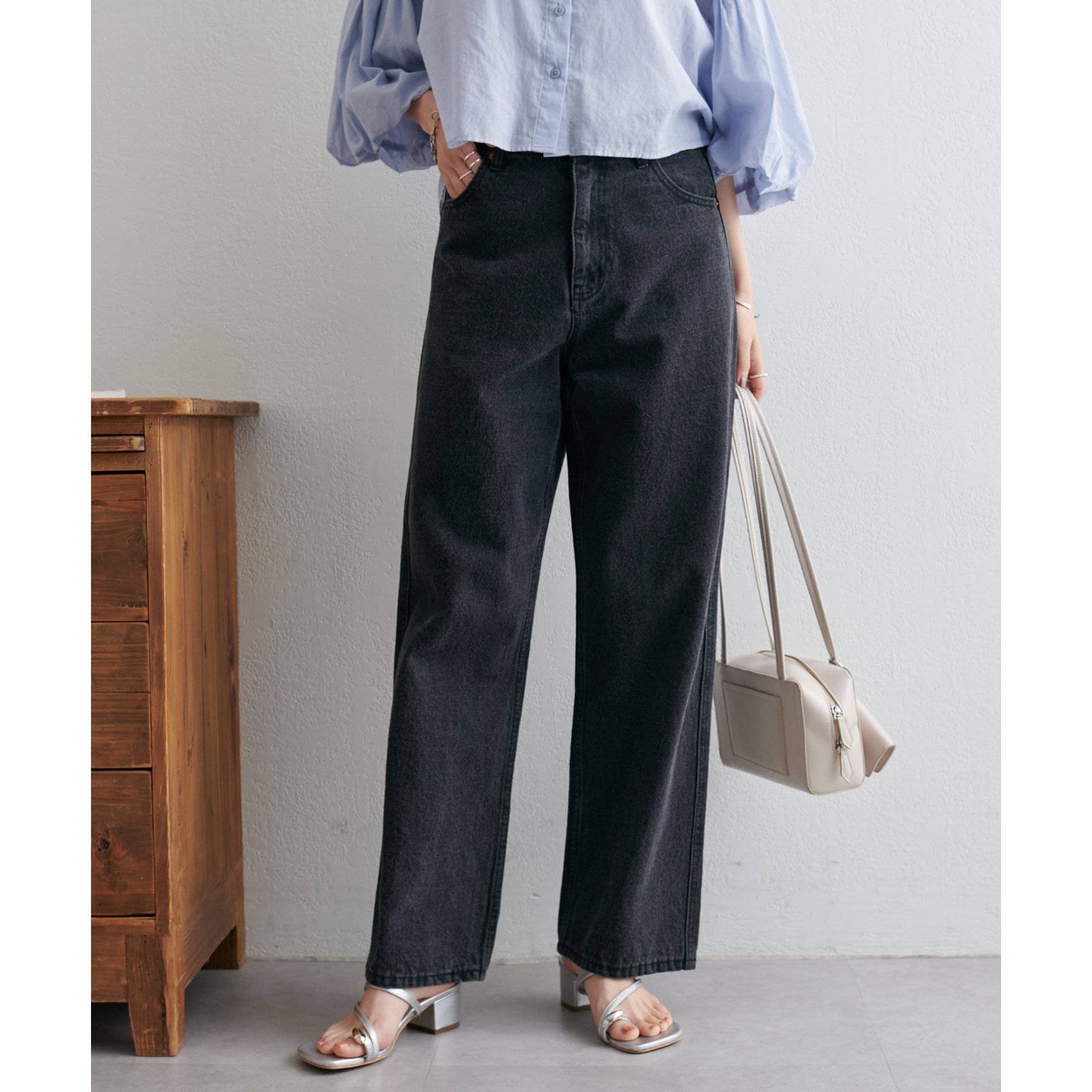 ・ややハイウエストで足長効果のある、ストレートデニム。